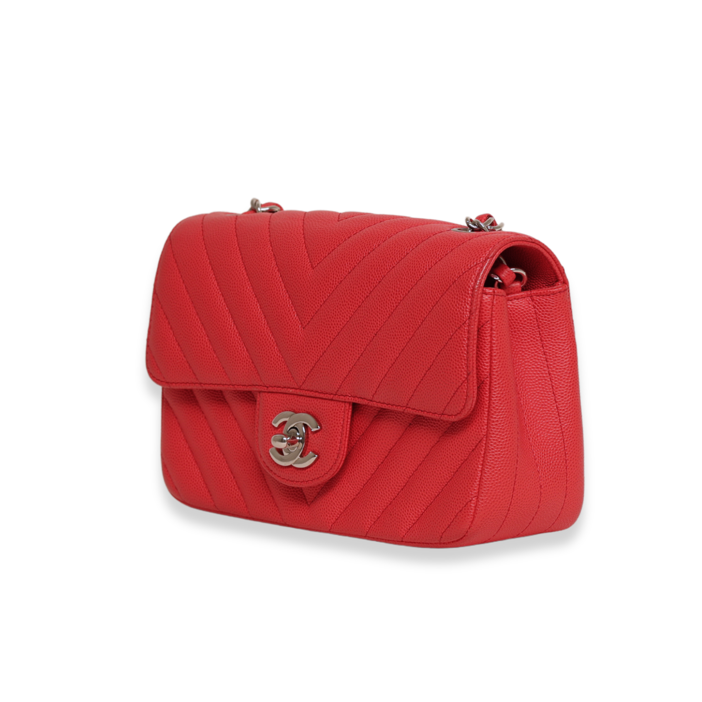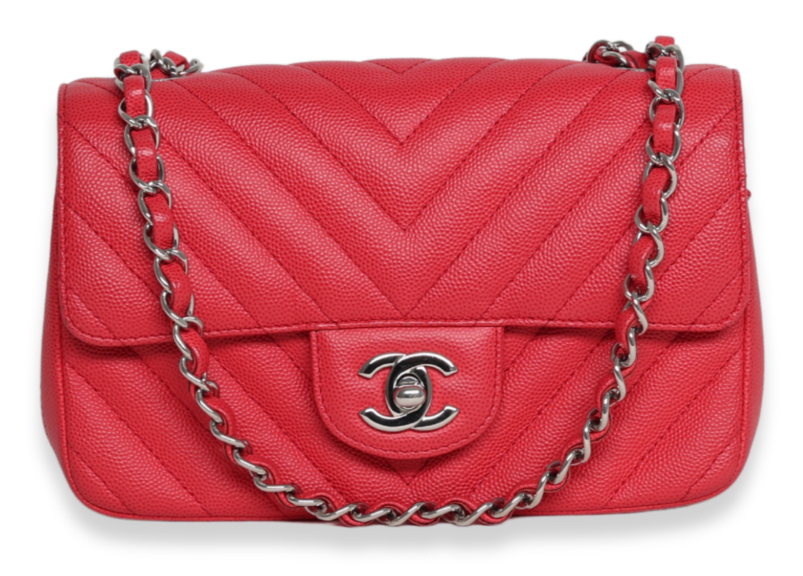 Chanel - Caviar Chevron Quilted Mini Rectangular Flap Red (Pre-Owned)