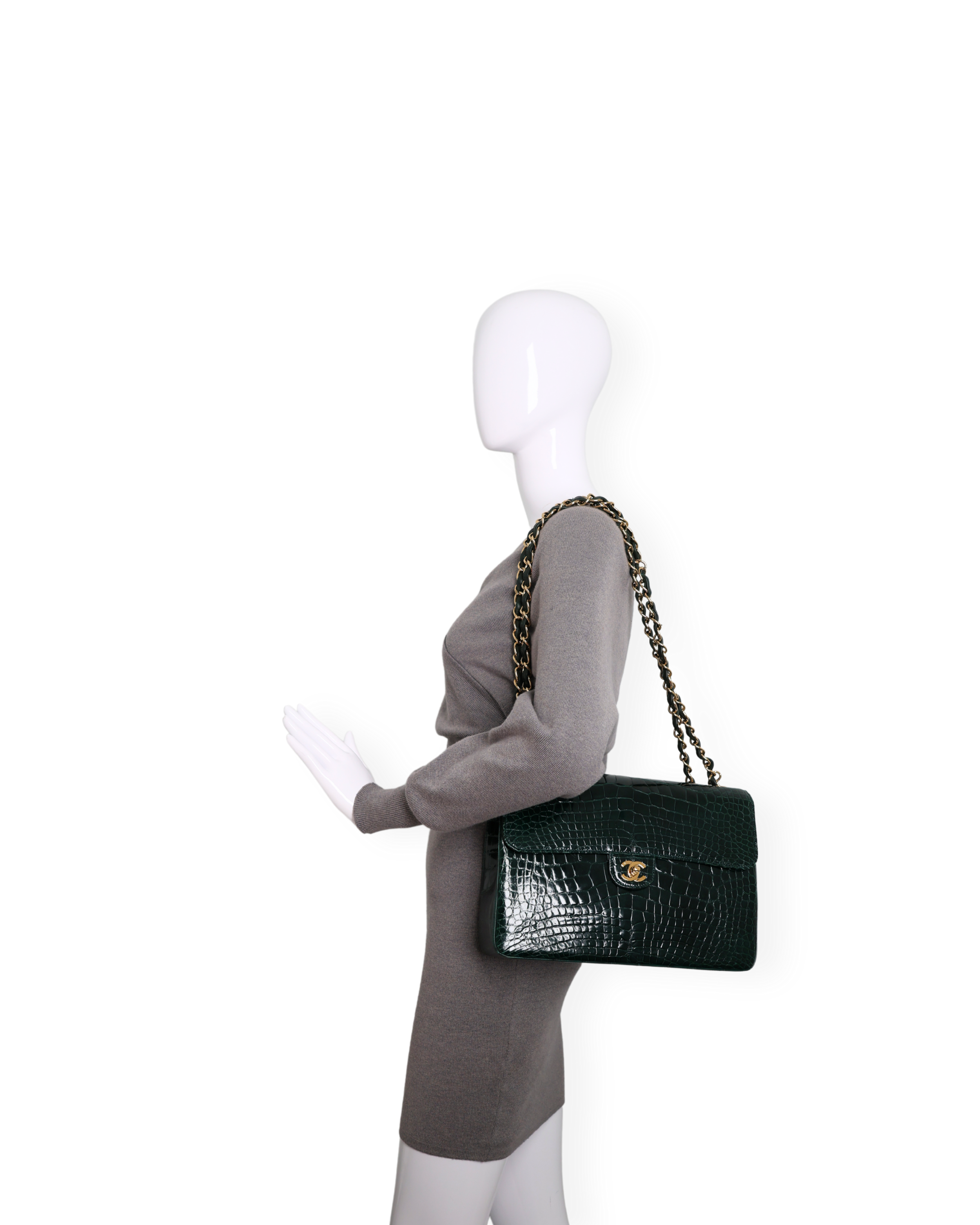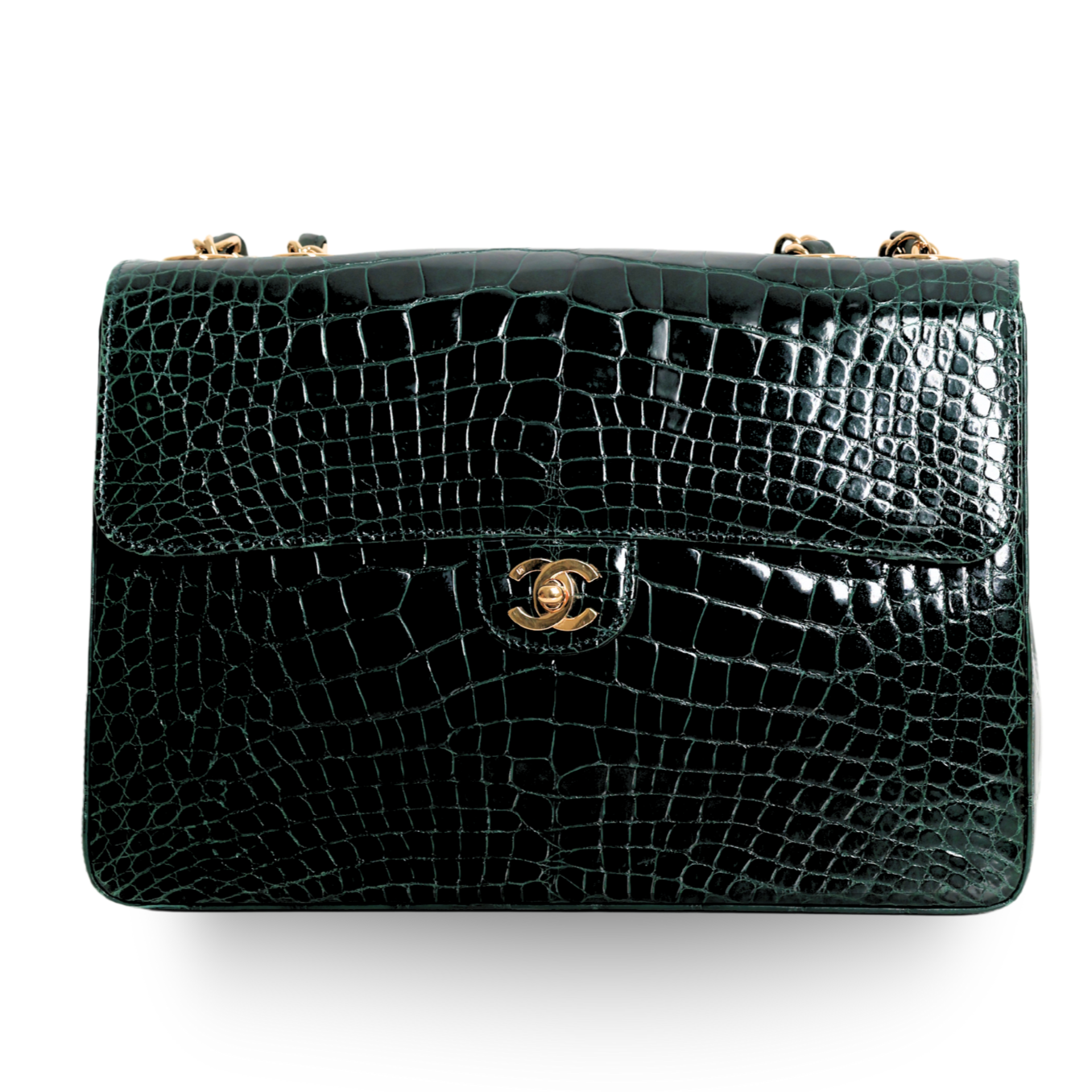 Chanel - Green Crocodile Large Classic Handbag Gold c. '05-'06 (Pre-Owned)