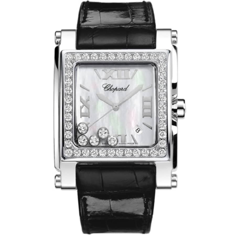 Chopard Happy Sport 288448/2001 Stainless Steel with Black Leather Watch MOP Roman Dial 2024