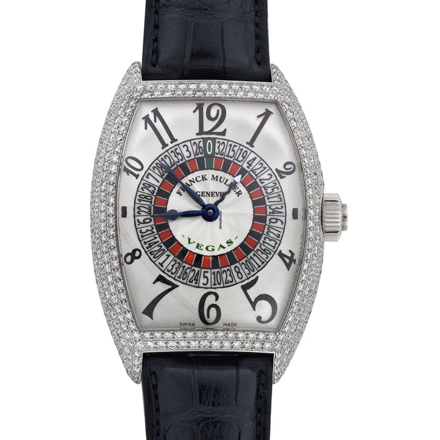 Franck Muller Casablanca Silver Dial 9880 Vegas D 7 White Gold with Black Leather Watch 2024