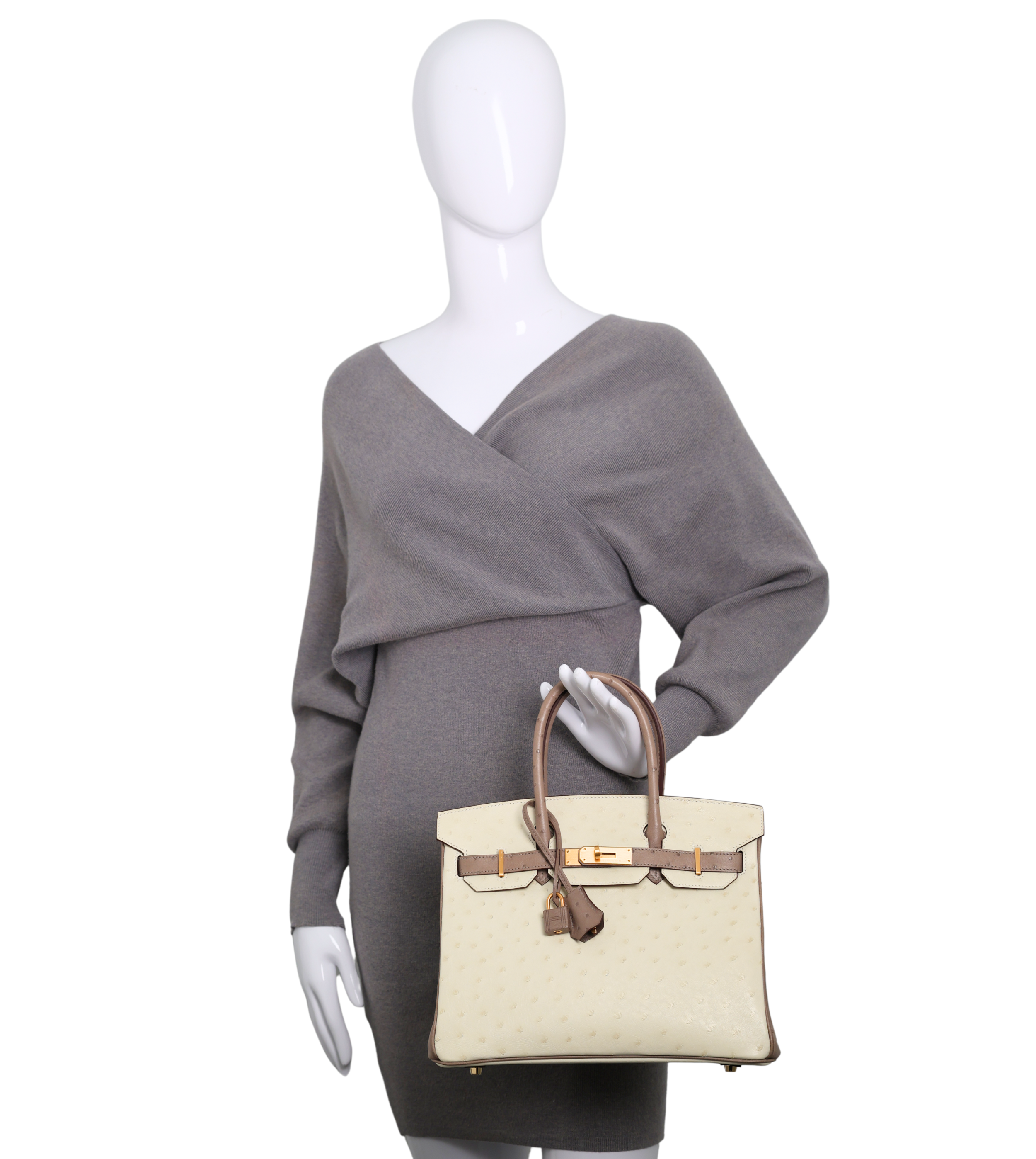 Hermes -Birkin 30 Two Tone Beige/Brown Ostrich Gold Hardware (Brand New)