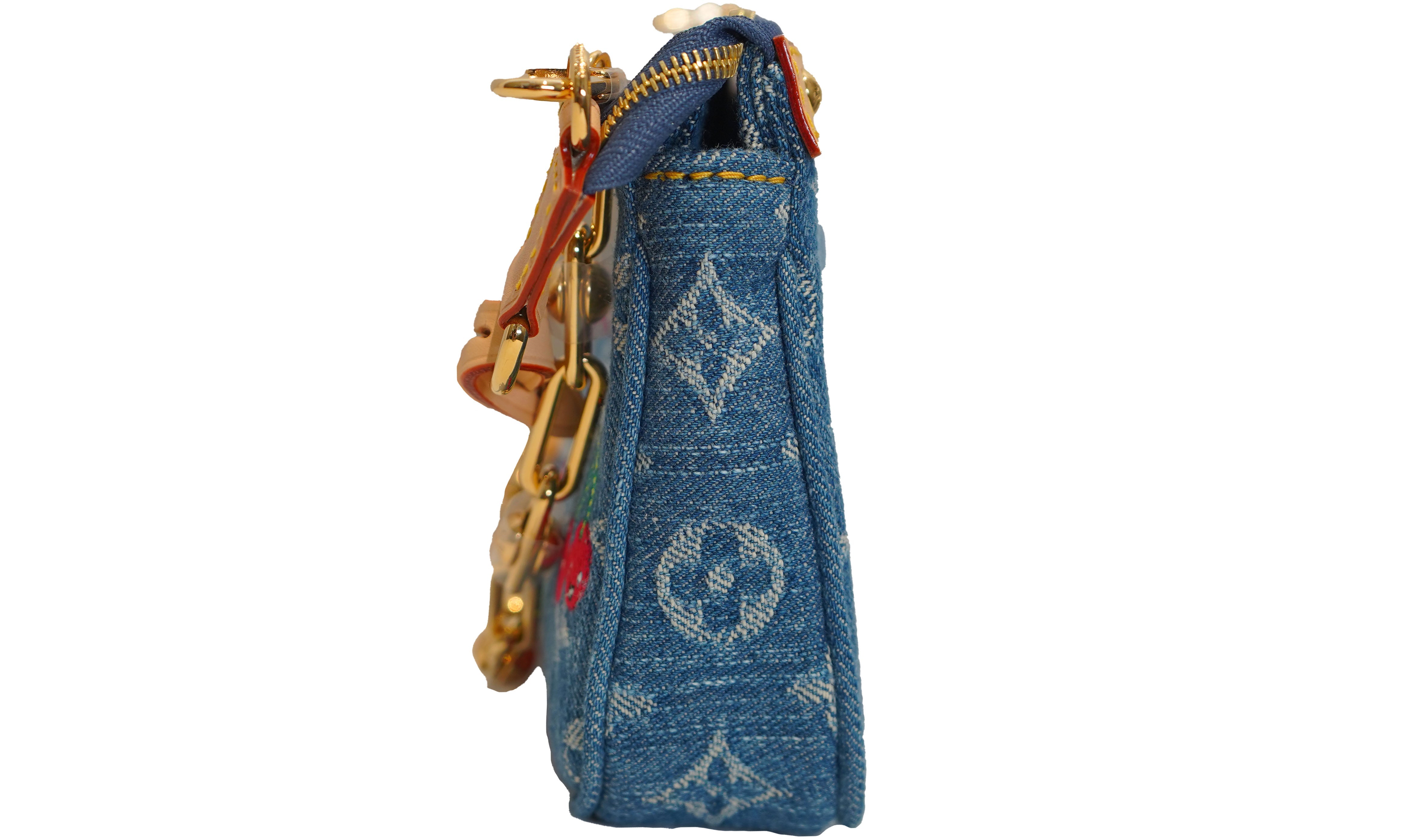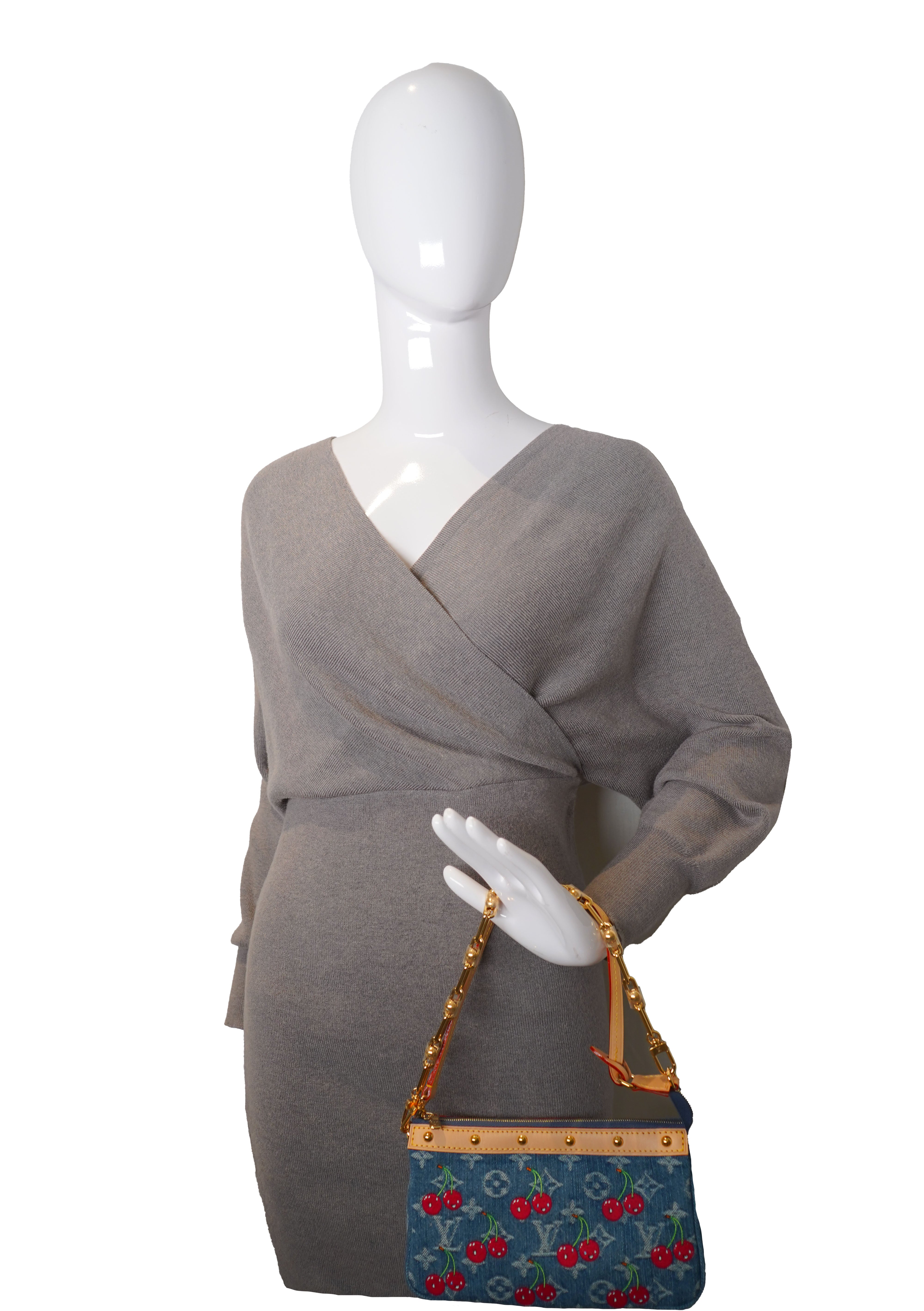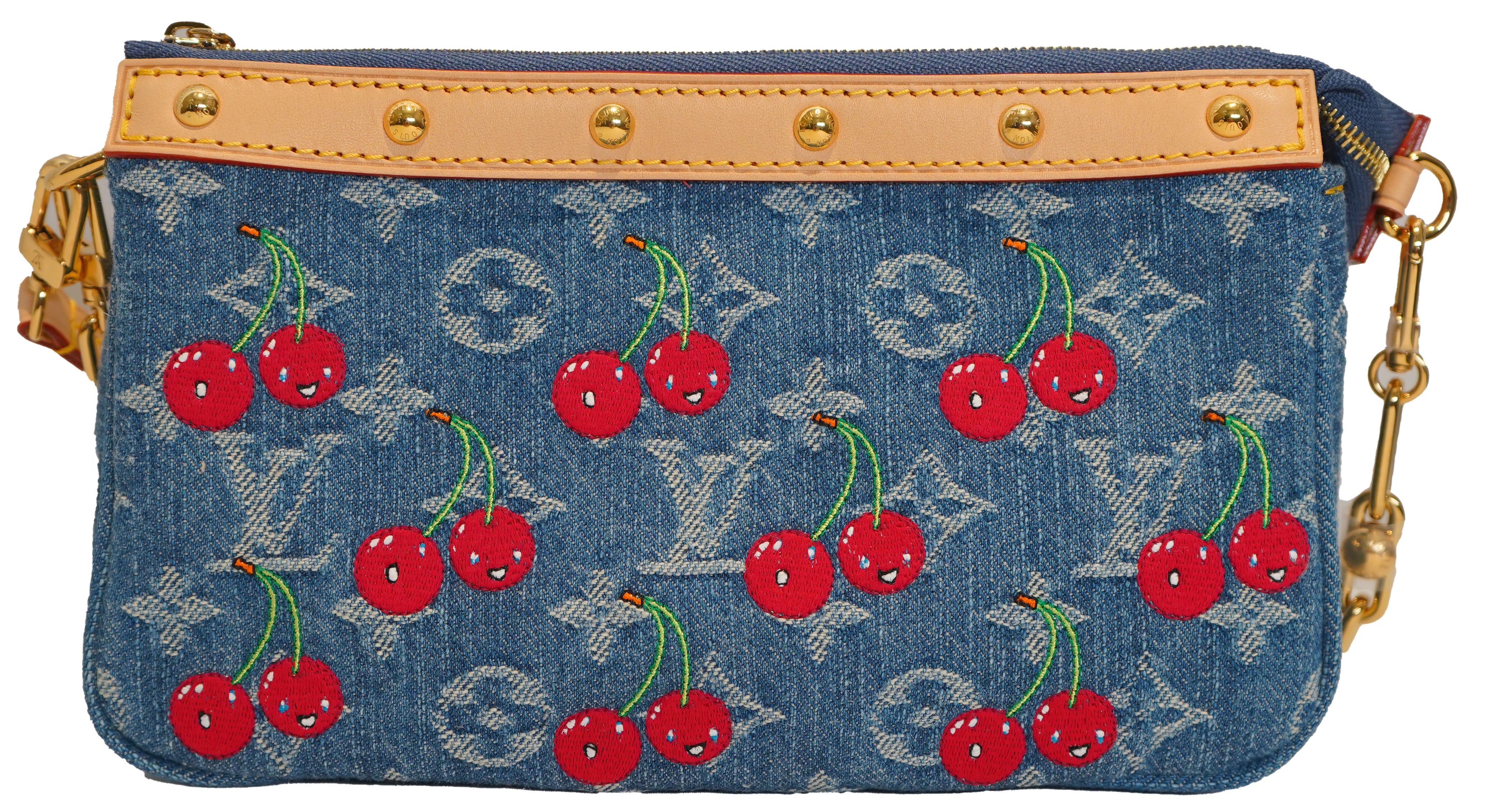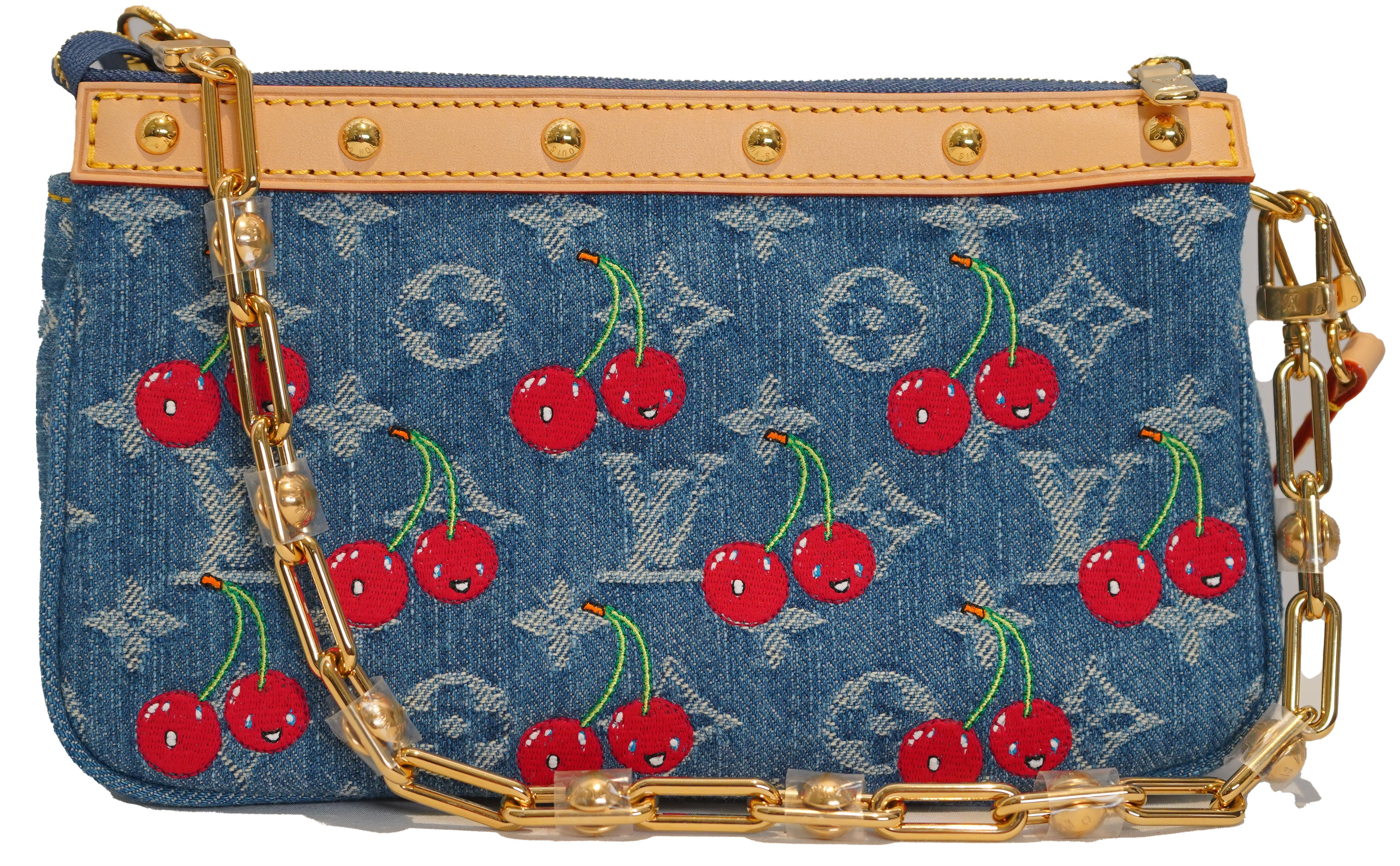 The Louis Vuitton Cherry Pochette Accessoires is a rare and highly collectible piece from the house’s collaboration with Japanese artist Takashi Murakami. Featuring the playful cherry print on monogram denim canvas, this limited-edition accessory blends whimsical artistry with Louis Vuitton’s timeless craftsmanship. Perfect as a statement clutch or worn with the detachable chain strap, it adds a fun yet luxurious touch to any collection.