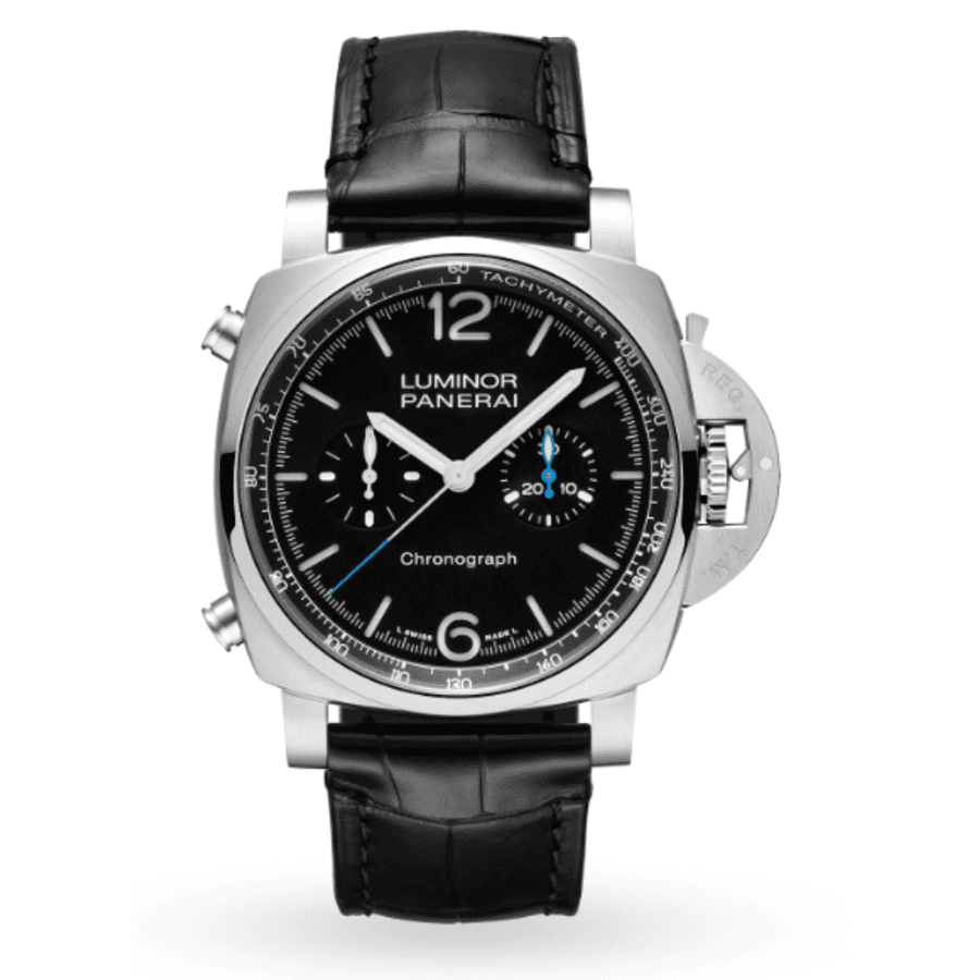 Panerai Luminor Chrono PAM01109 Brushed Steel with Black Leather Watch Black Dial 2024