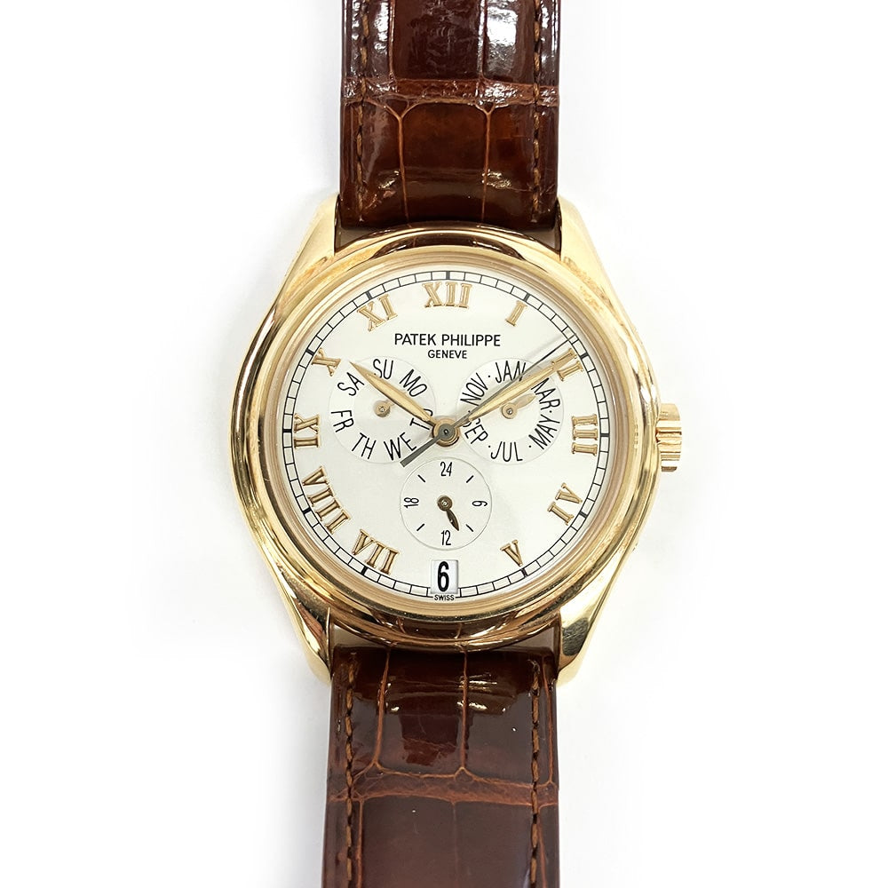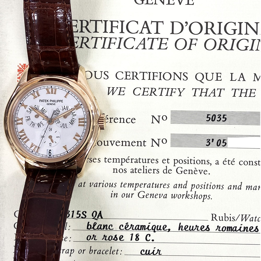 Patek Philippe Annual Calendar 5035R-001 Rose Gold With Brown Leather Watch Silver Dial 1997