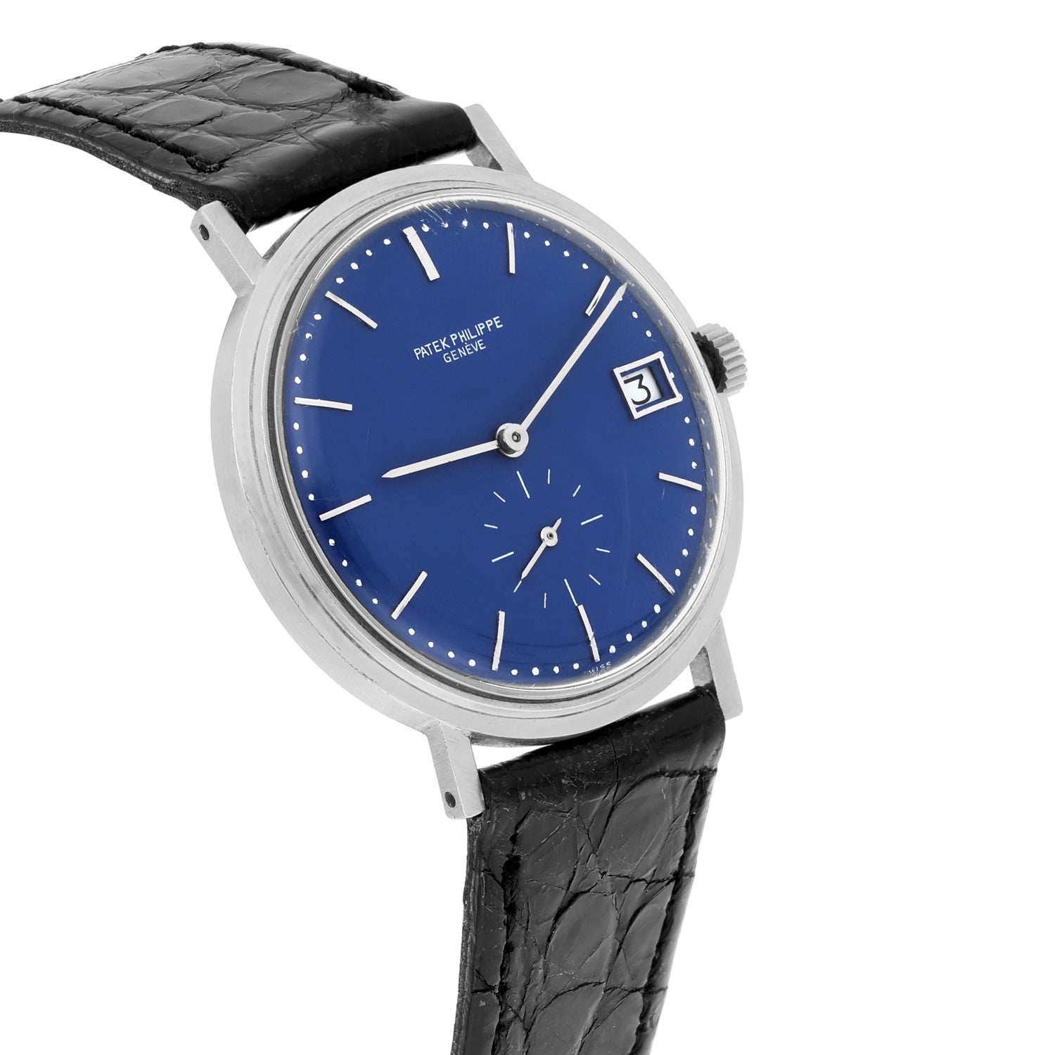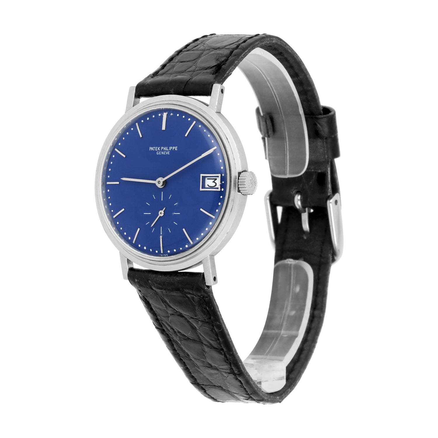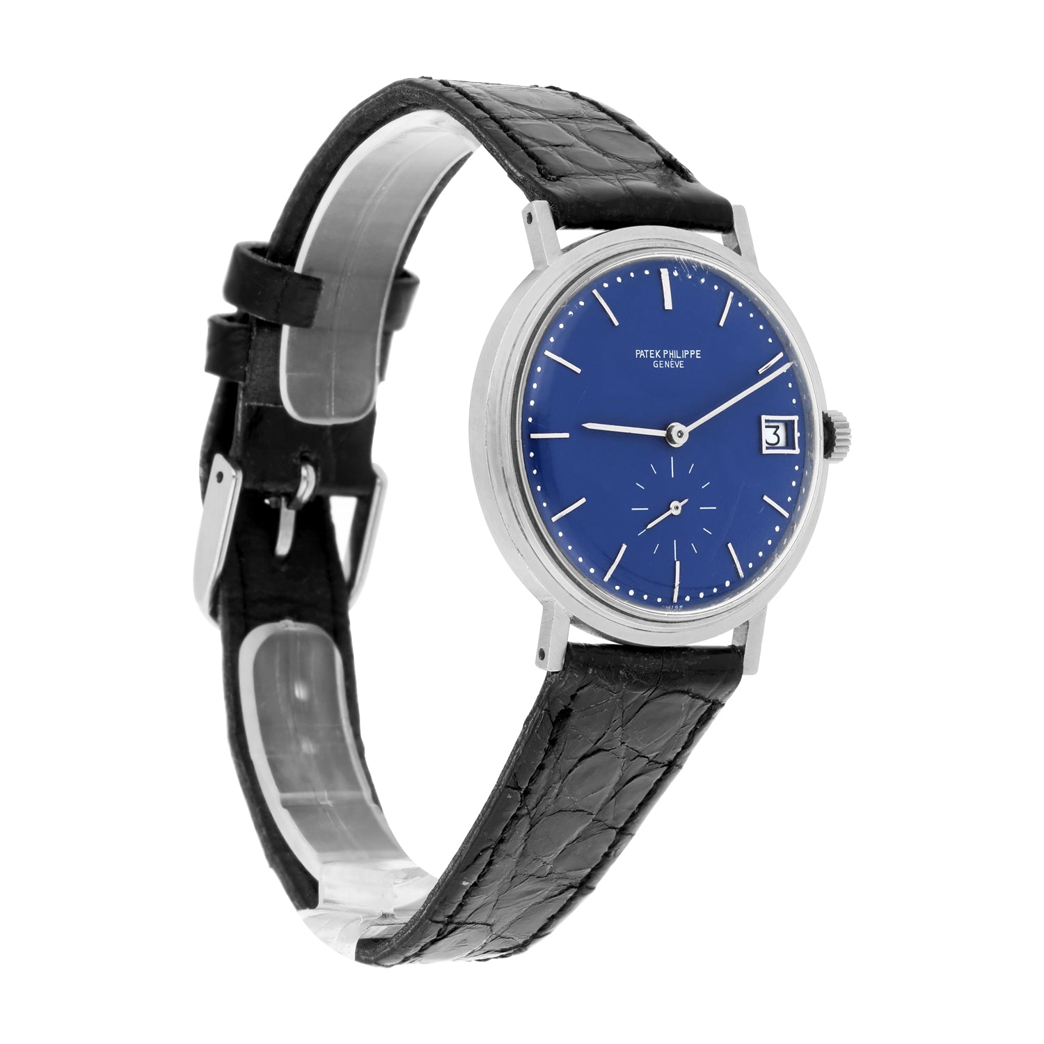 Patek Philippe Calatrava 3445G 18K White Gold Blue Dial Mens Watch