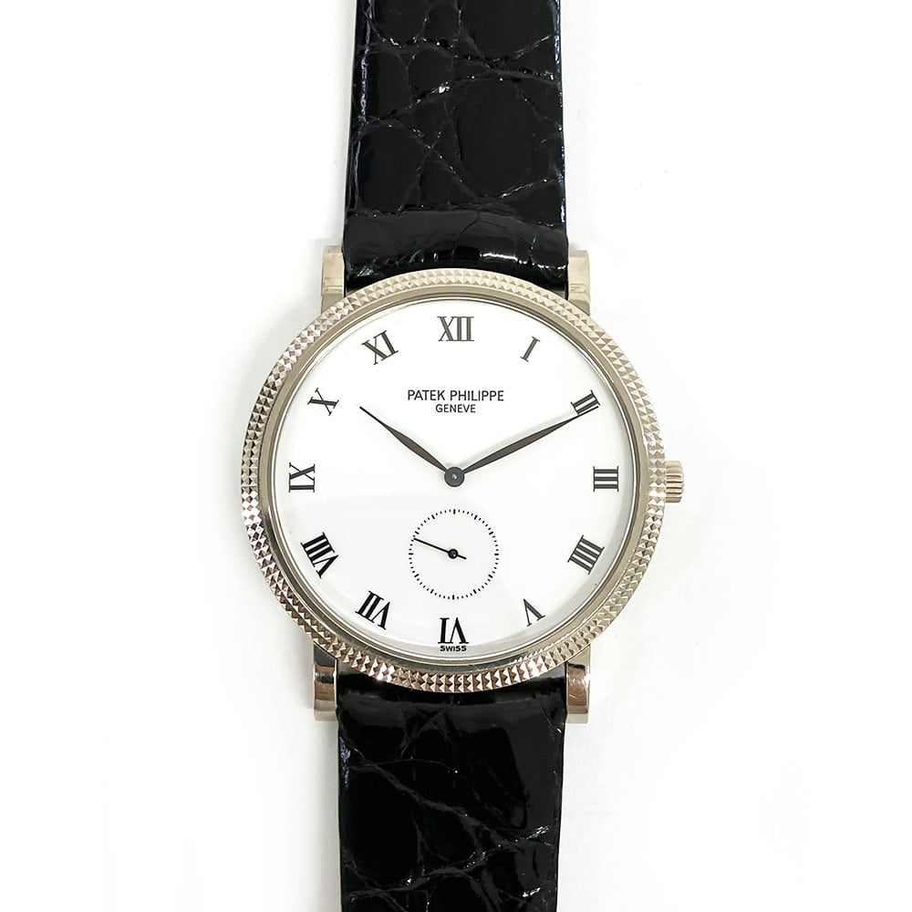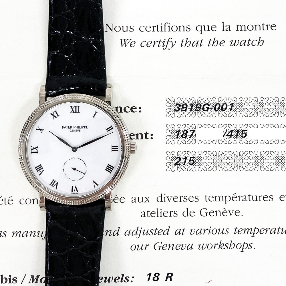 Patek Philippe Calatrava 3919G-001 White Gold With Black Leather Watch Black Roman Dial 2001