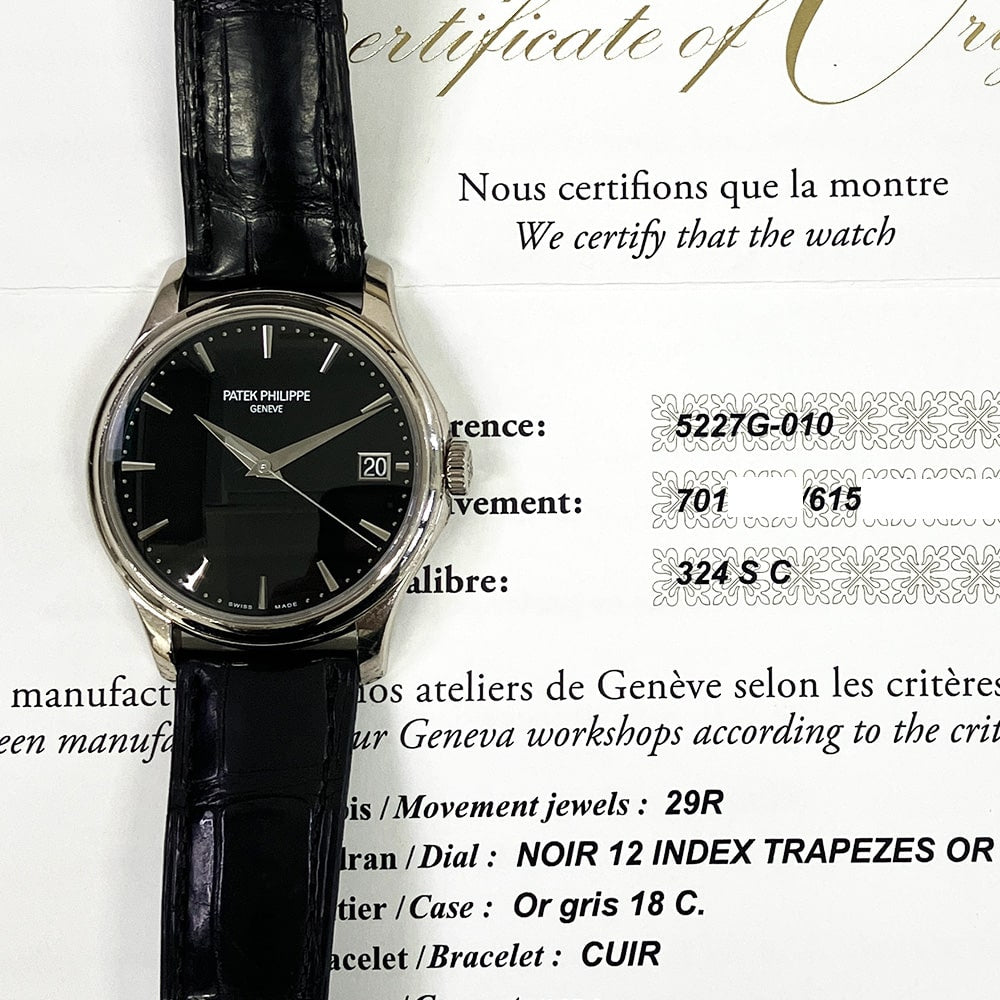 Patek Philippe Calatrava 39mm 5227G-010 White Gold With Black Leather Watch Black Dial 2017