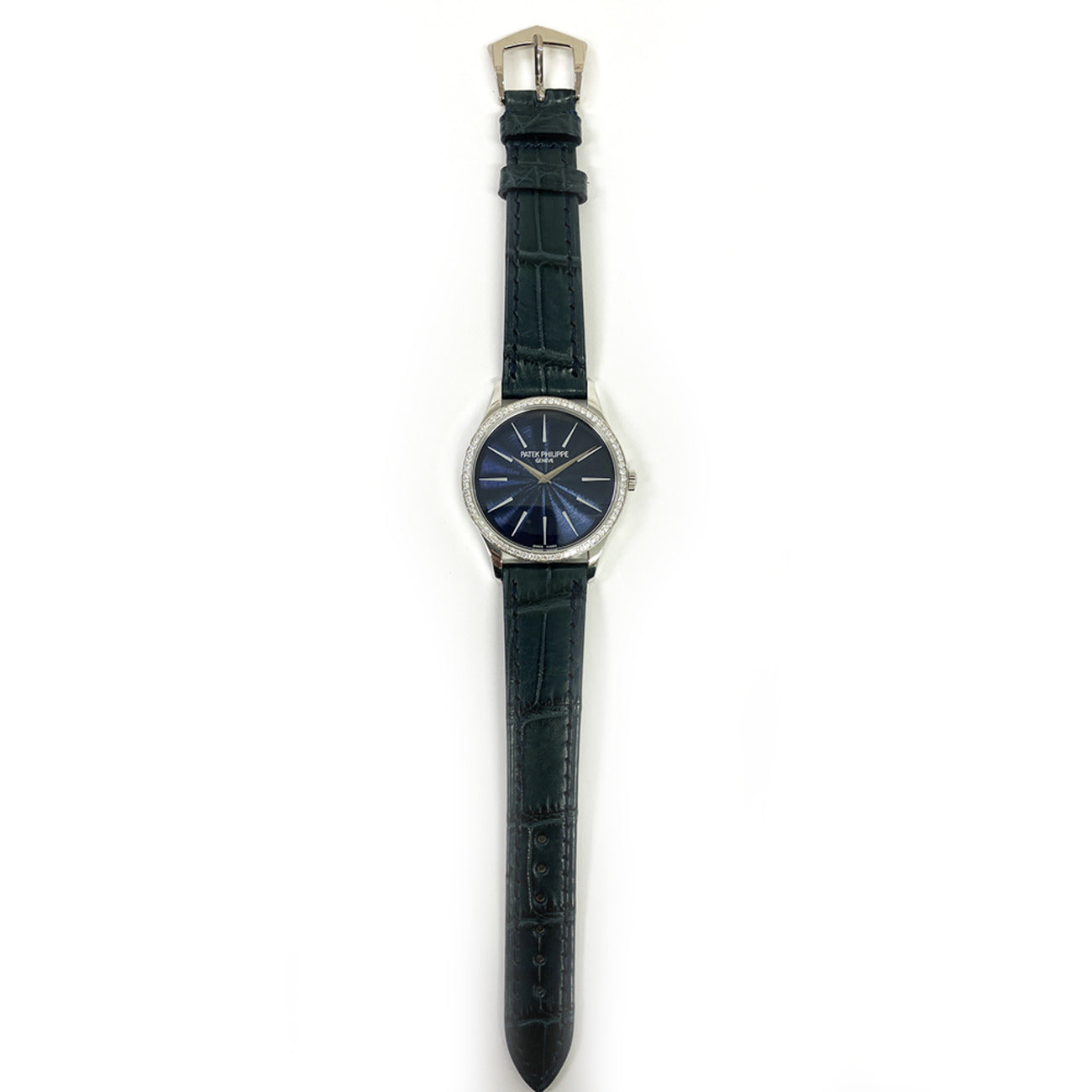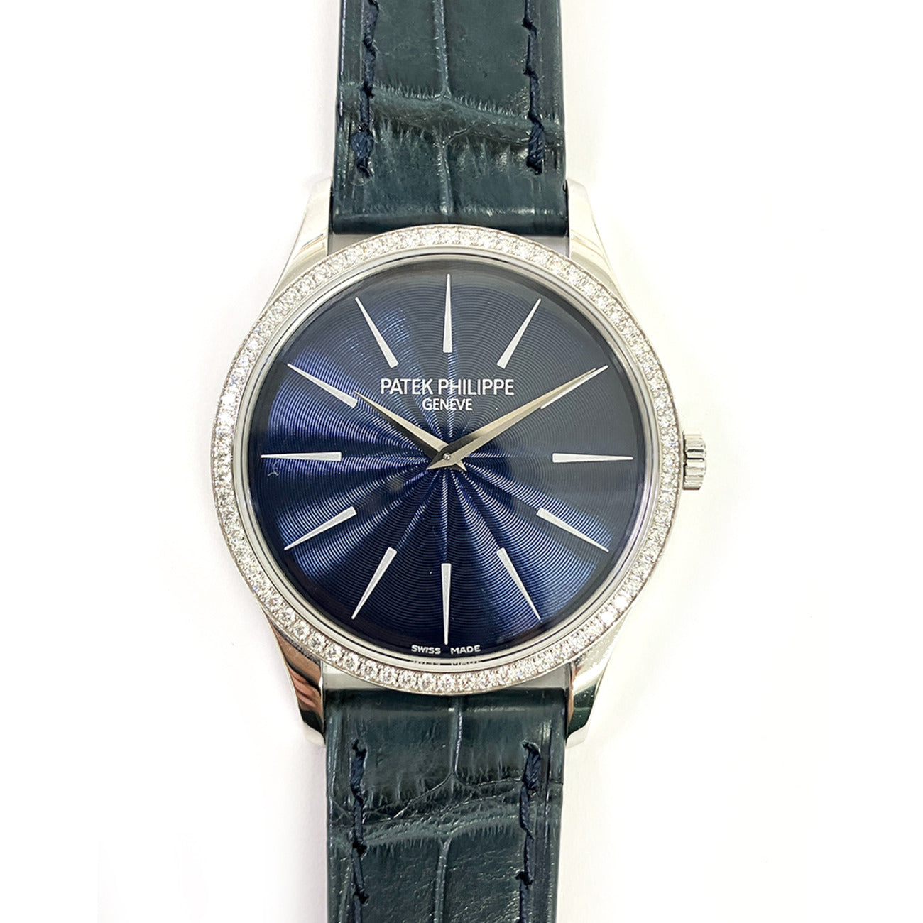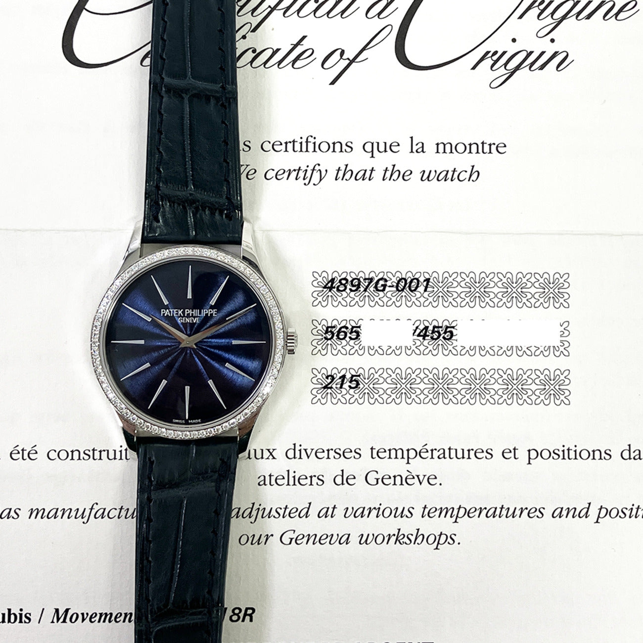 Patek Philippe Calatrava 4897G-001 Diamond Blue Dial Ladies White Gold Watch