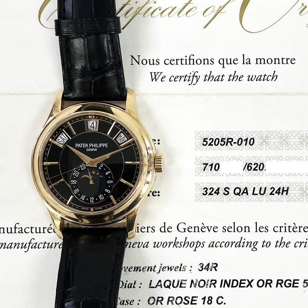 Patek Philippe Complications Annual Calendar 40mm 5205R-010 Rose Gold With Black Leather Watch Black Dial 2017