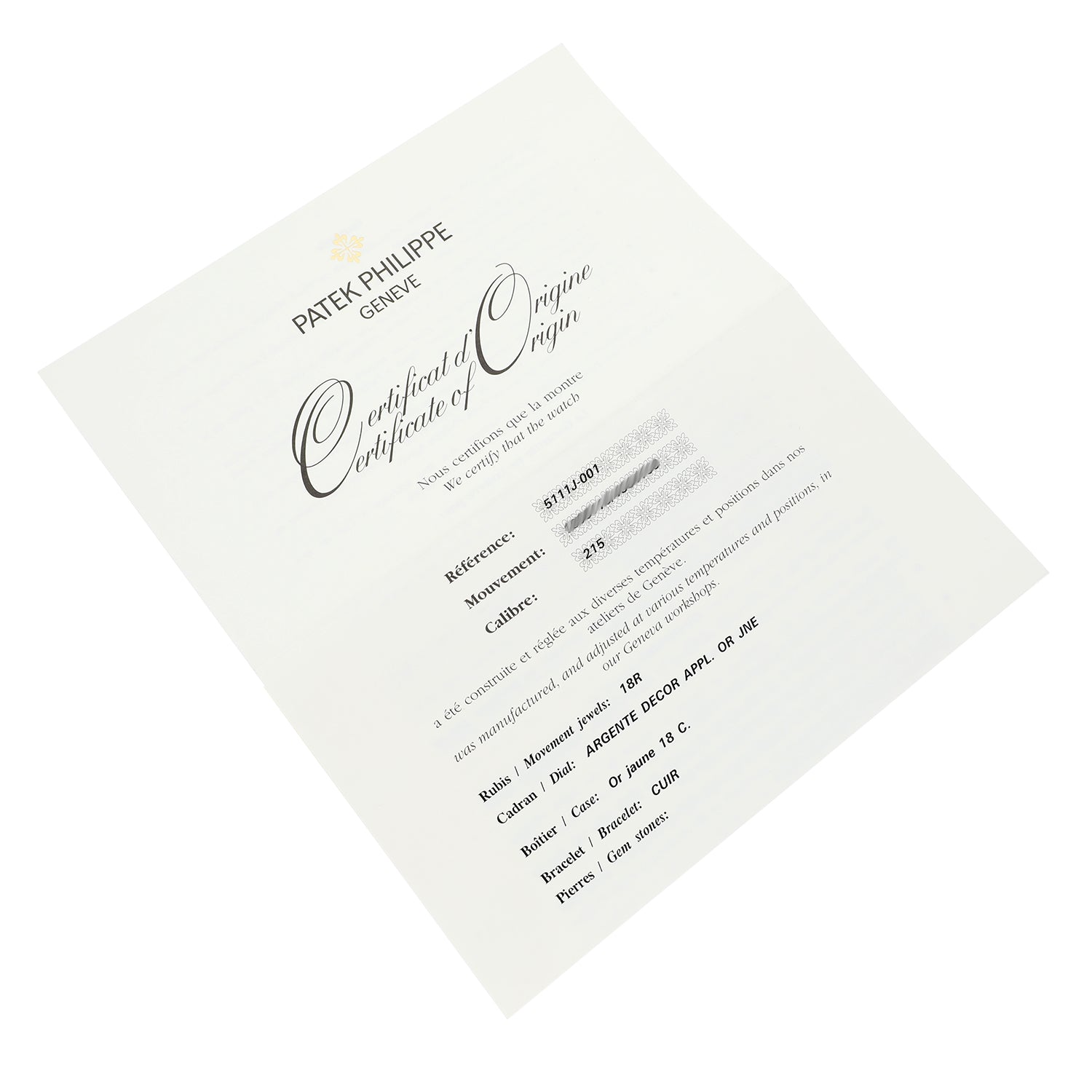 Patek Philippe Gondolo 5111J-001 Yellow Gold with Brown Alligator Leather Watch Grey Dial 2019 - Sealed
