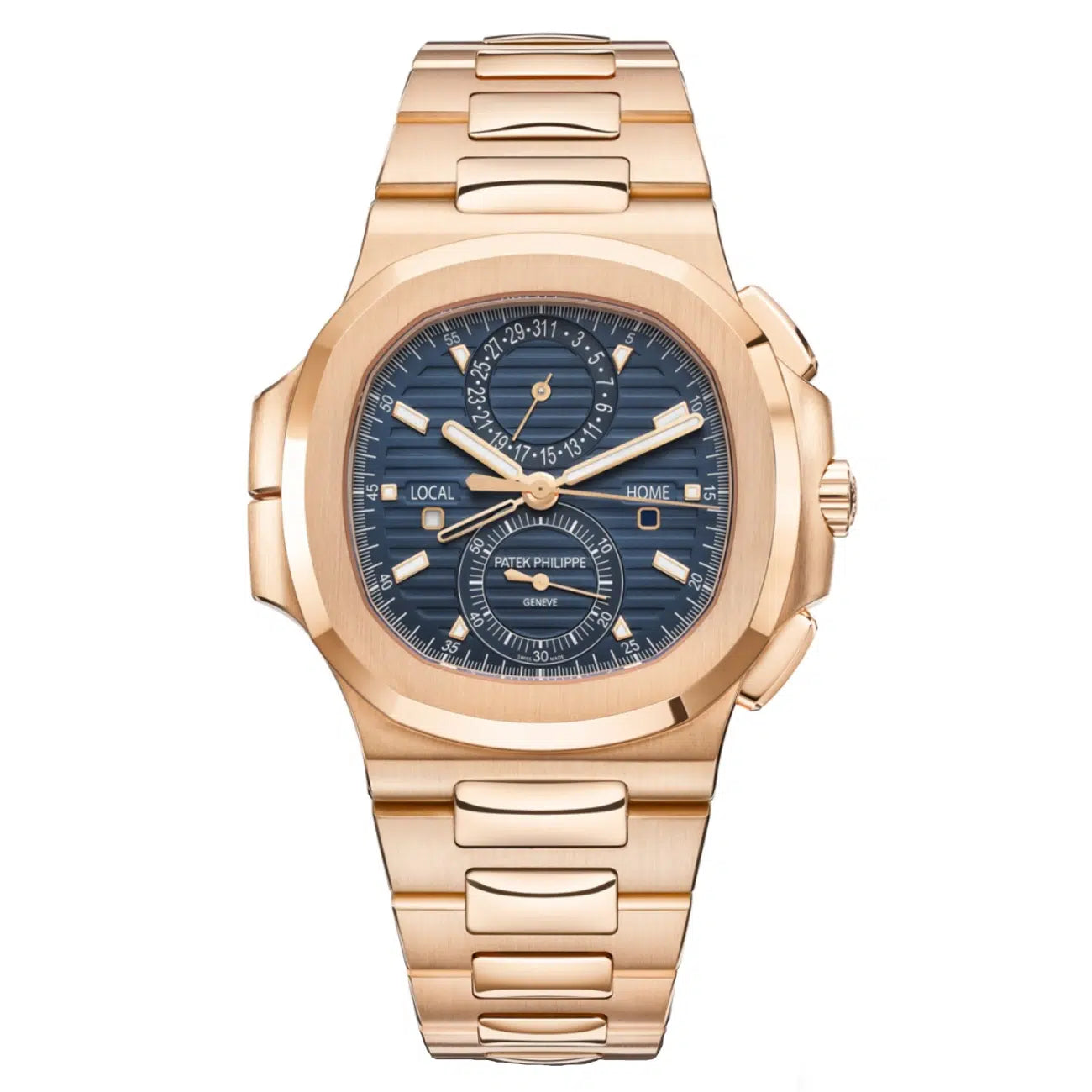 Patek Philippe Nautilus Self-Winding Travel Time Chronograph 5990/1R-001 Rose Gold Case Blue Dial Rose Gold Bracelet Watch 2024