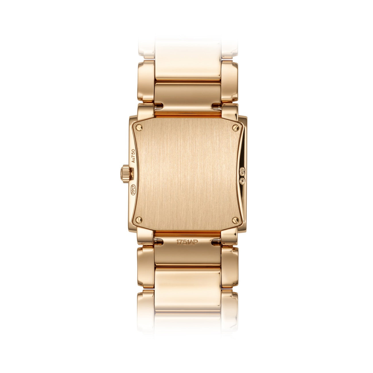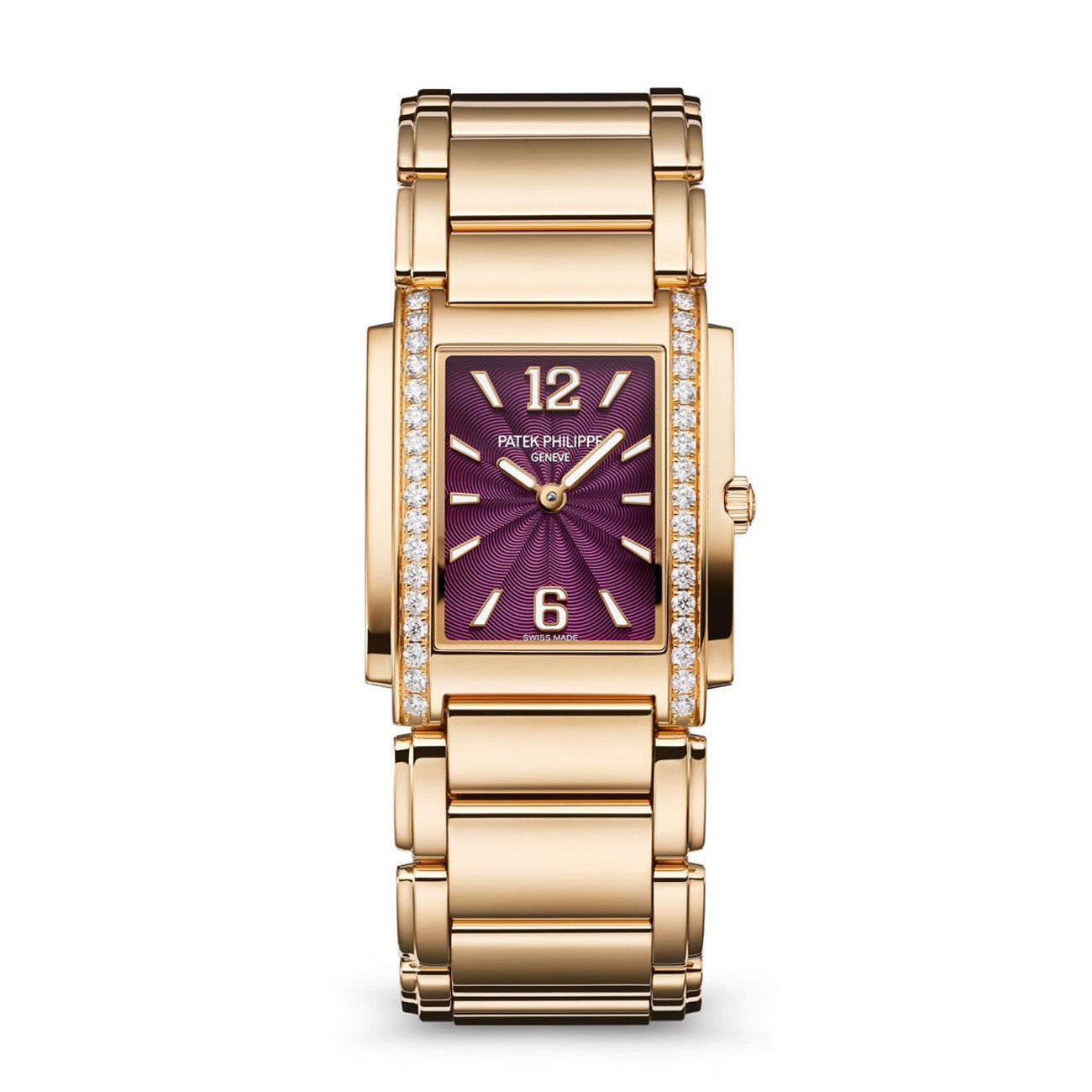 The standout feature is its exquisite purple lacquered dial, created through a meticulous process: a concentric wave pattern is first embossed, then layered with multiple coats of translucent and clear lacquer, resulting in a deep, luminous finish. Powered by the reliable Caliber E 15 quartz movement, the dial is further enhanced with rose gold applied numerals and hour markers featuring white luminescent coating. Paired with a curved rose gold bracelet and a secure fold-over clasp, this Twenty~4 model is a radiant celebration of femininity, craftsmanship, and sophistication.