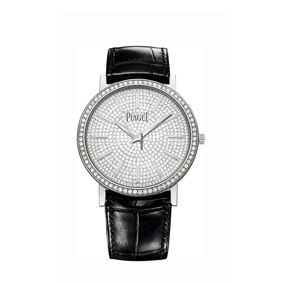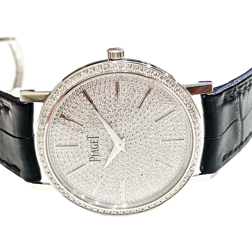 Piaget Altiplano 34mm G0A36128 White Gold with Black Crocodile Leather Watch Pave Diamond Dial 2018