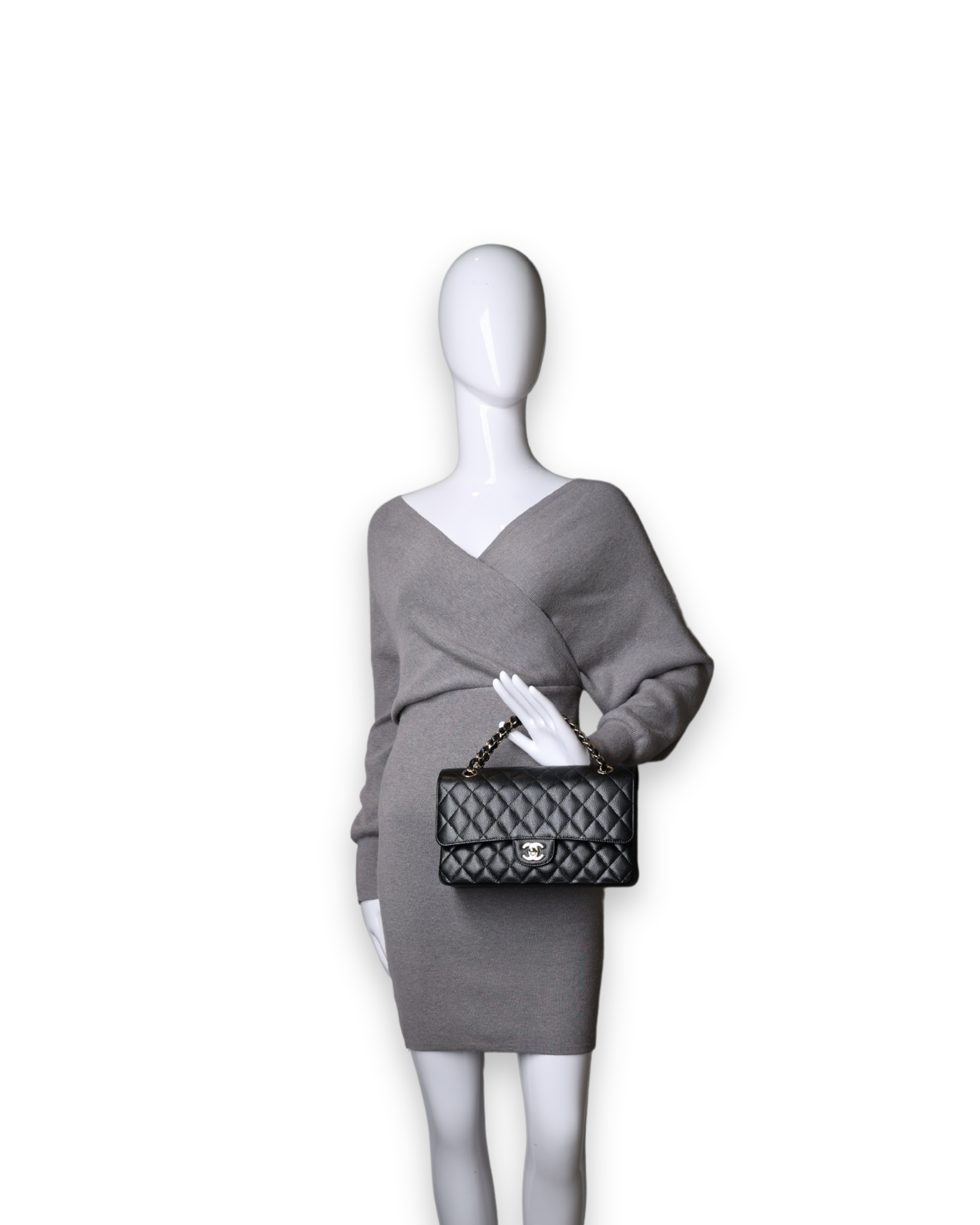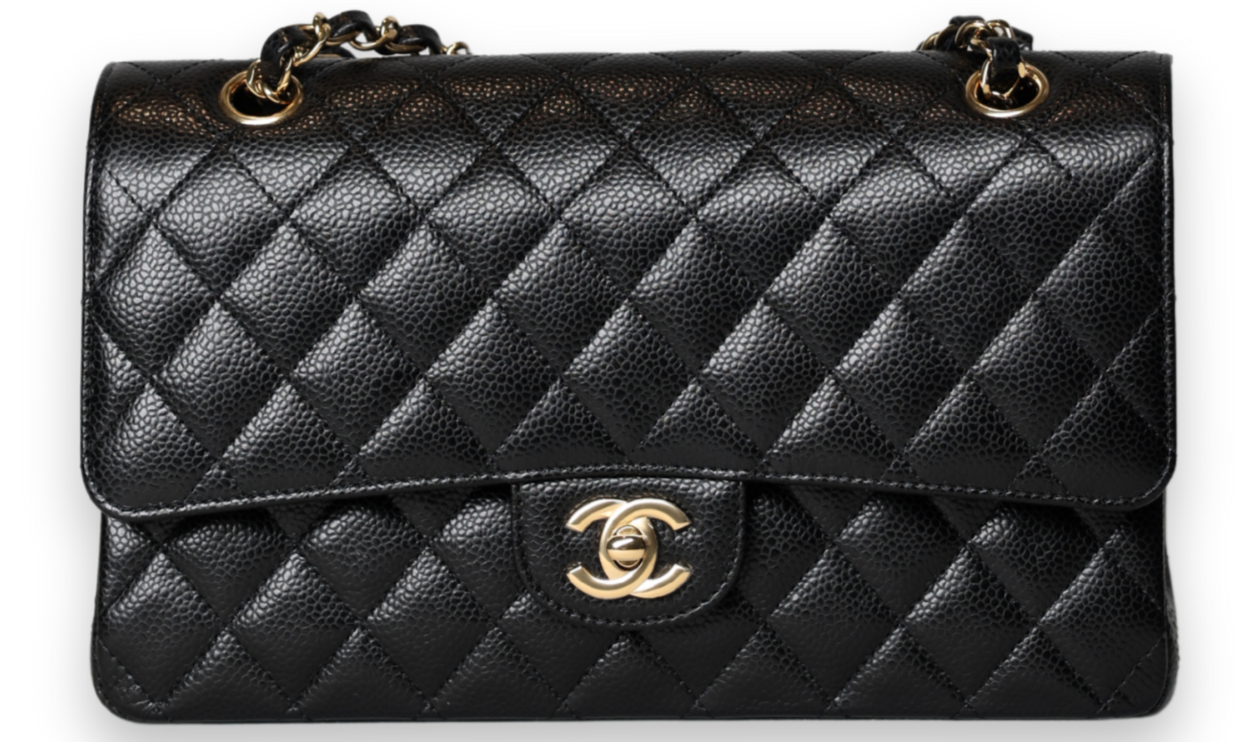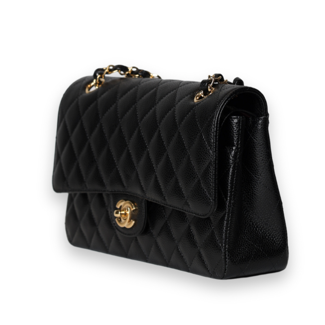 Arguably the most iconic handbag in the world, the Chanel Medium Double Flap Bag in Black Caviar Leather with Gold Hardware embodies timeless elegance and enduring value. Meticulously crafted from durable, pebbled caviar leather, this bag features the signature diamond quilting, interlocking CC turn-lock closure, and a gleaming gold-tone leather-woven chain strap. The dual flap construction offers added security and structure, while the burgundy leather interior nods to Coco Chanel’s original design inspiration. Elegant, versatile, and investment-worthy—this is the quintessential Chanel classic.