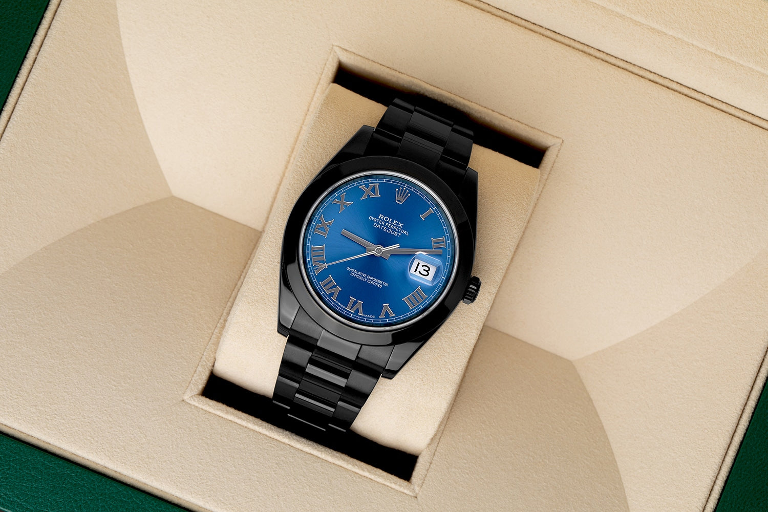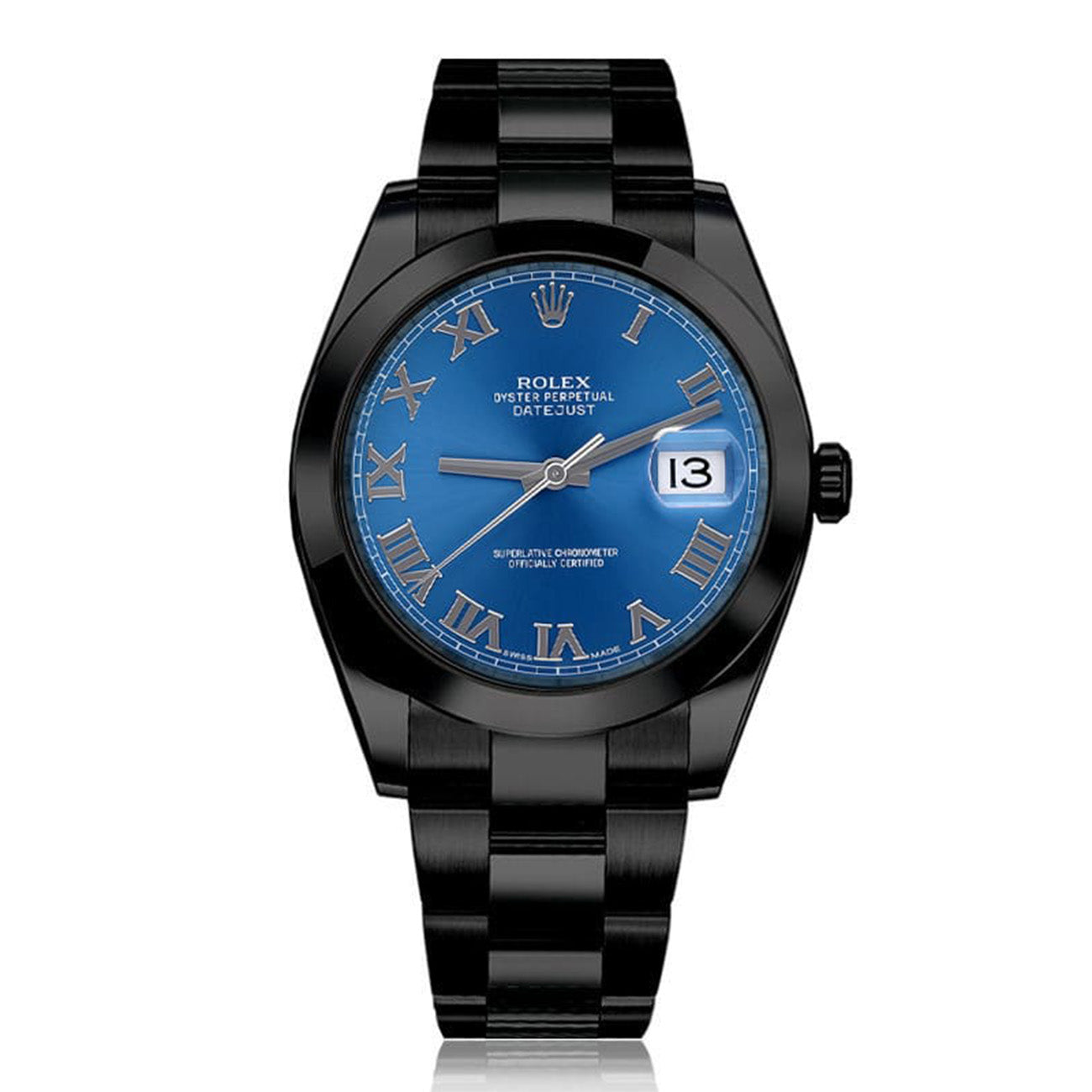 Rolex 41mm Datejust Black PVD/DLC Watch Oyster Band Blue Dial