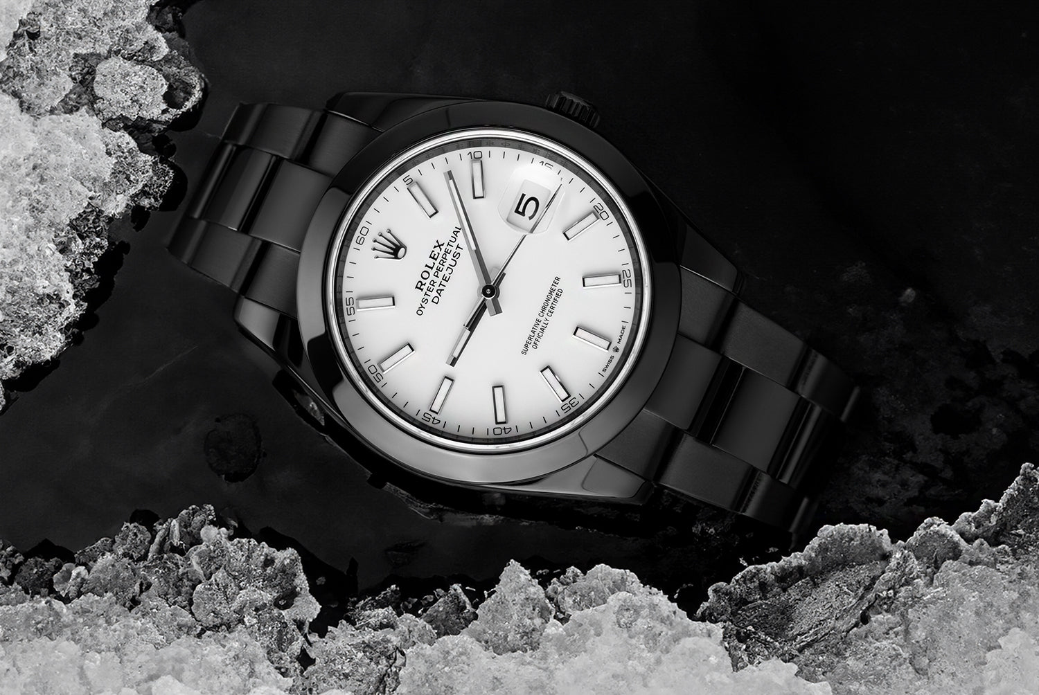 Rolex 41mm Datejust Black PVD/DLC Watch Oyster Band White Dial