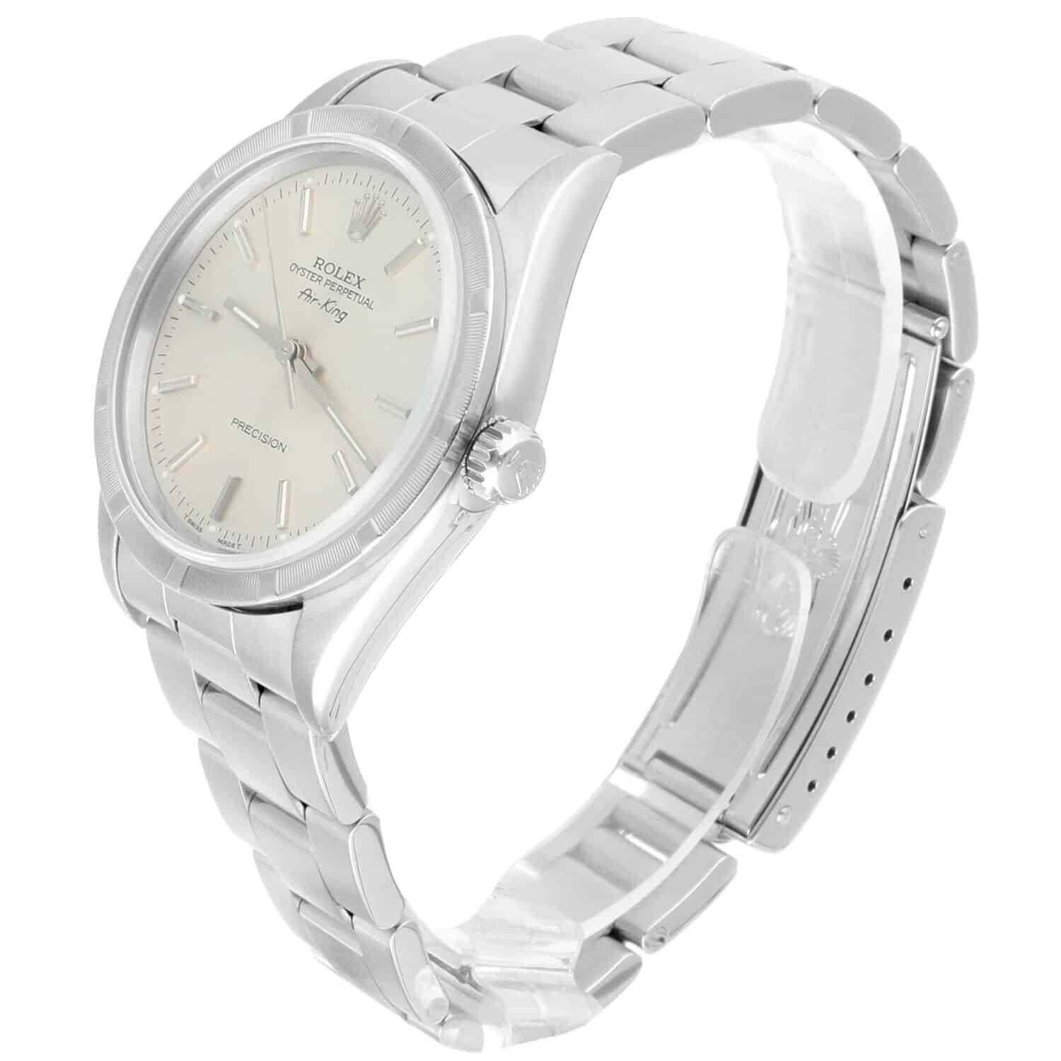 Rolex Air King 34mm 14010 Silver Dial Engine Turned Bezel Steel Mens Watch