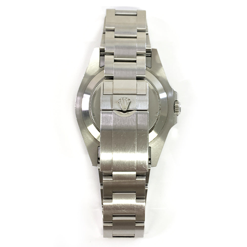 42mm Oystersteel case, screw-down back, screw-down crown with twinlock double waterproofness system, fixed bezel with 24-hour graduations, scratch-resistant sapphire crystal with cyclops lens over the date, black dial, hour markers set with blue Chromalight, Rolex calibre 3285 self-winding movement with second time-zone hour hand and instantaneous date, approximately 70 hours of power reserve, Oyster bracelet with flat three-piece links, folding Oysterlock buckle with Easylink 5mm comfort extension link. Waterproof to 100 meters.