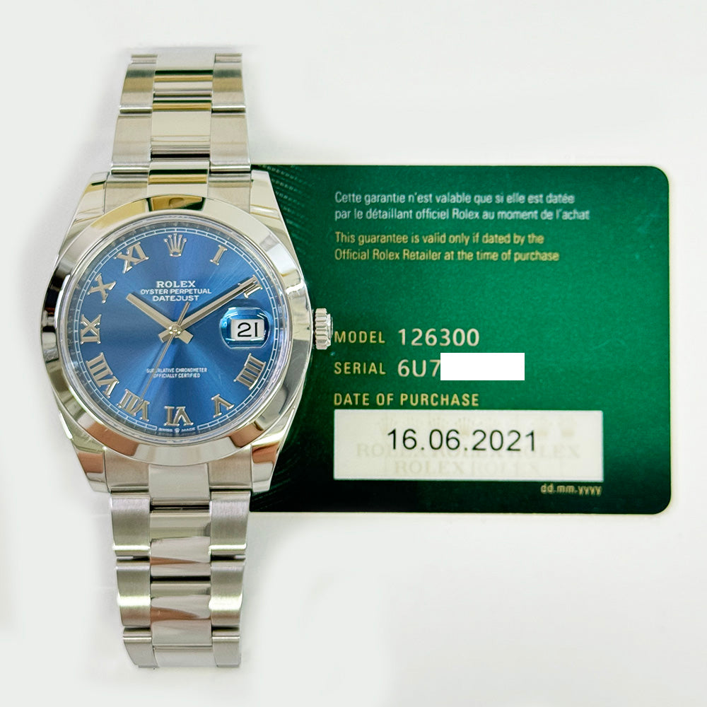 Rolex Blue Roman Dial Datejust 41mm 126300 Stainless Steel Oyster Watch MINT 2021