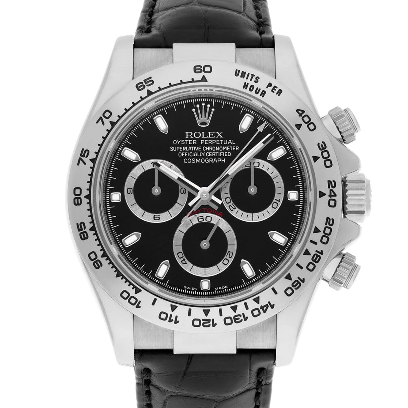 Rolex Cosmograph Daytona 116519 18k White Gold Mens Watch Strap Box Papers