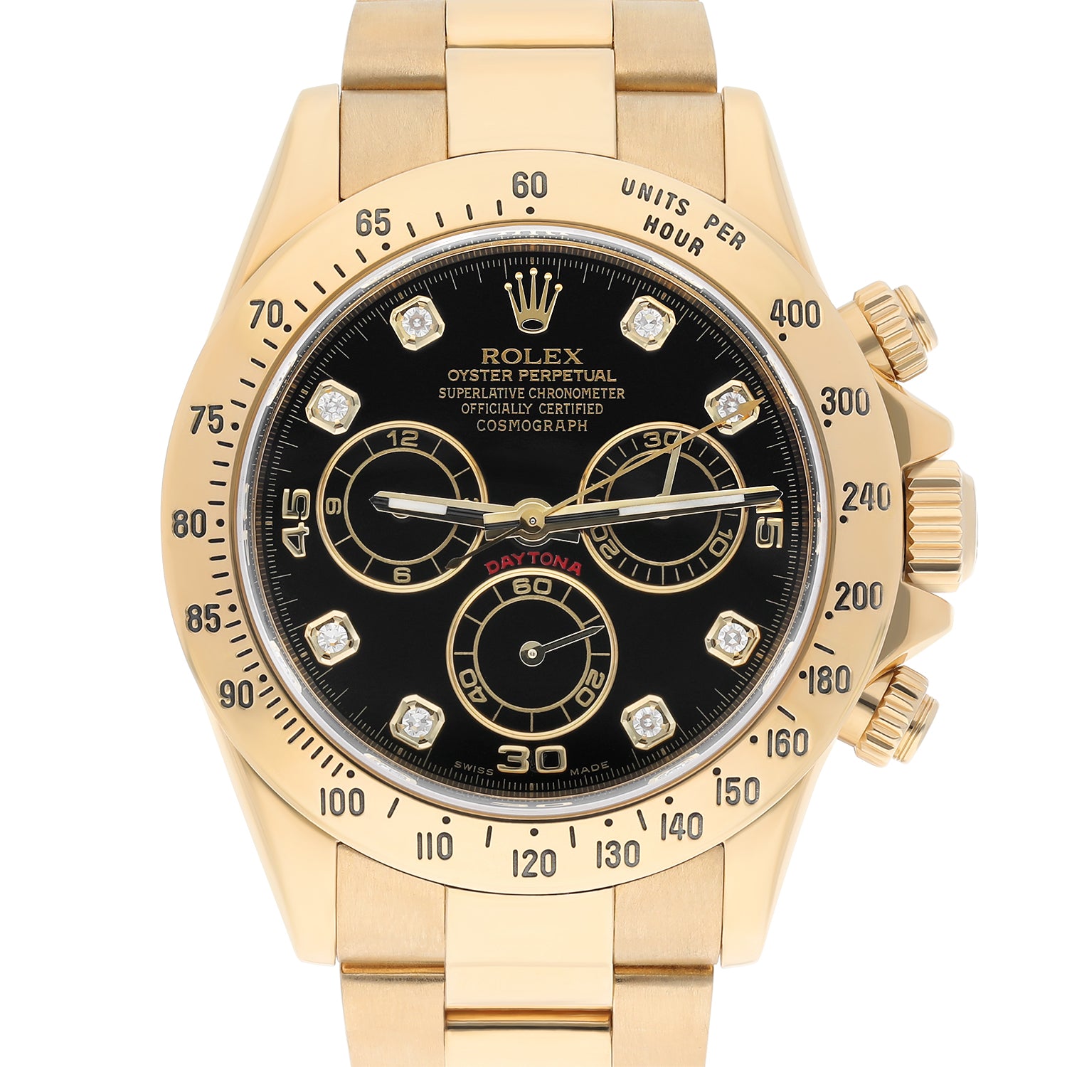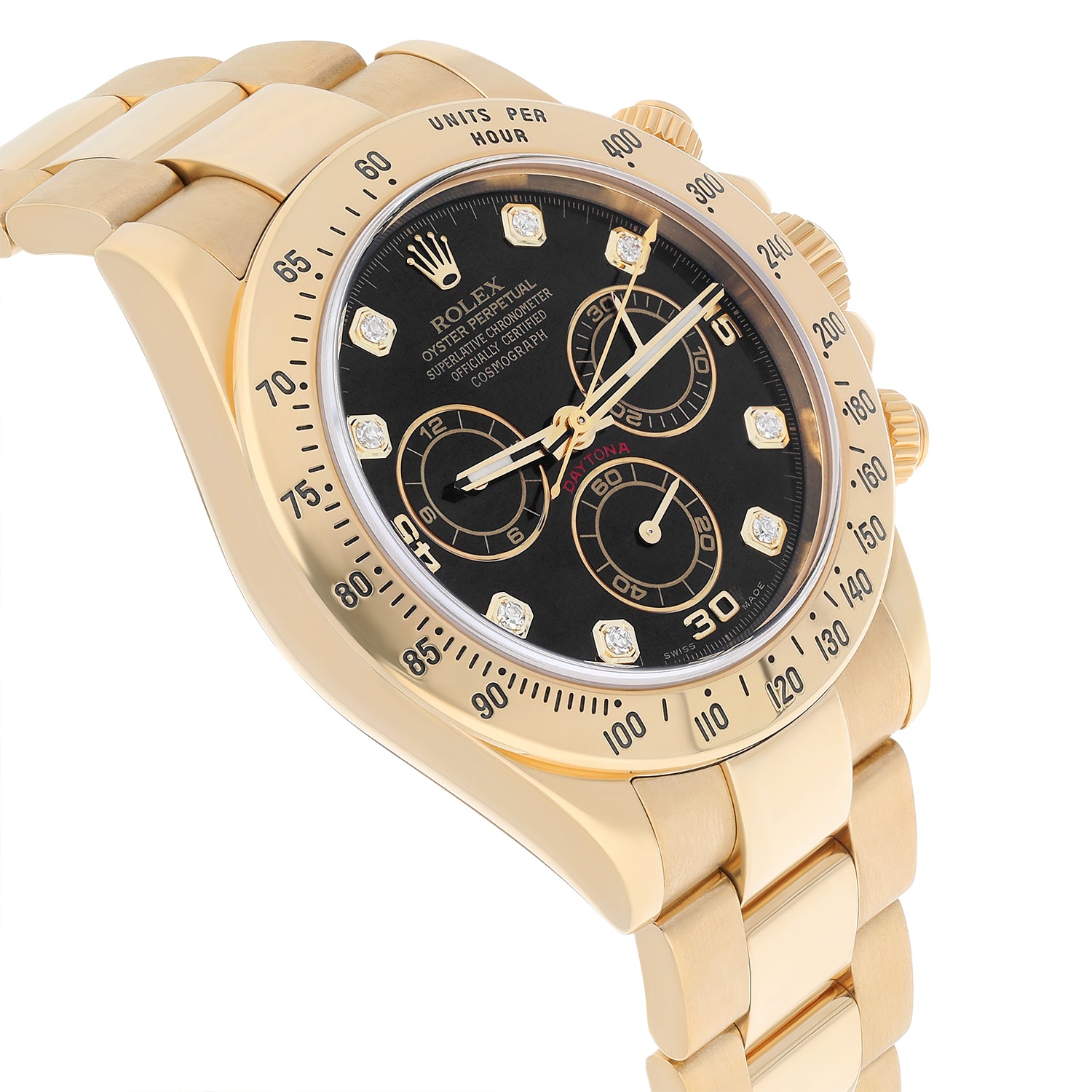 Rolex Cosmograph Daytona 126508-0003 Fixed Bezel Black Diamond Dial Oyster Bracelet Yellow Gold Watch