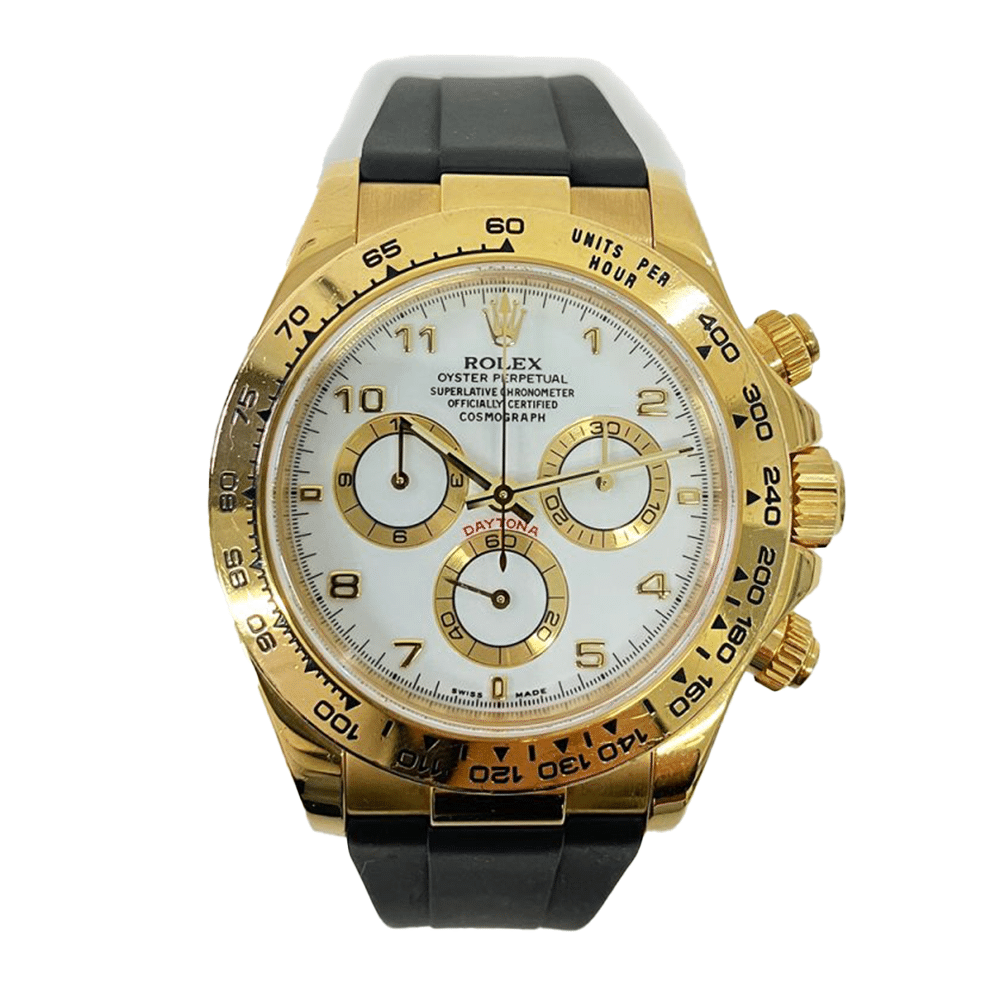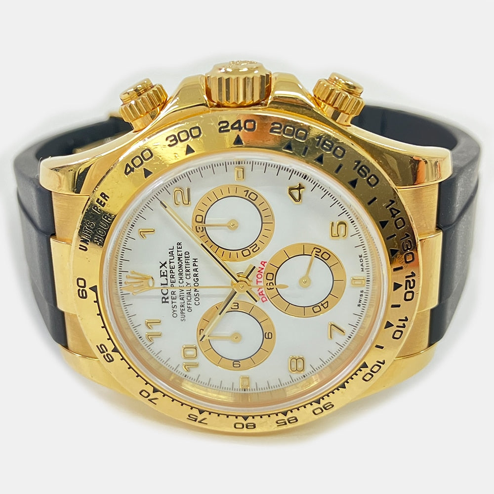 Rolex Cosmograph Daytona 40mm 116518 Yellow Gold with Black Rubber Watch White Arabic Dial 2004