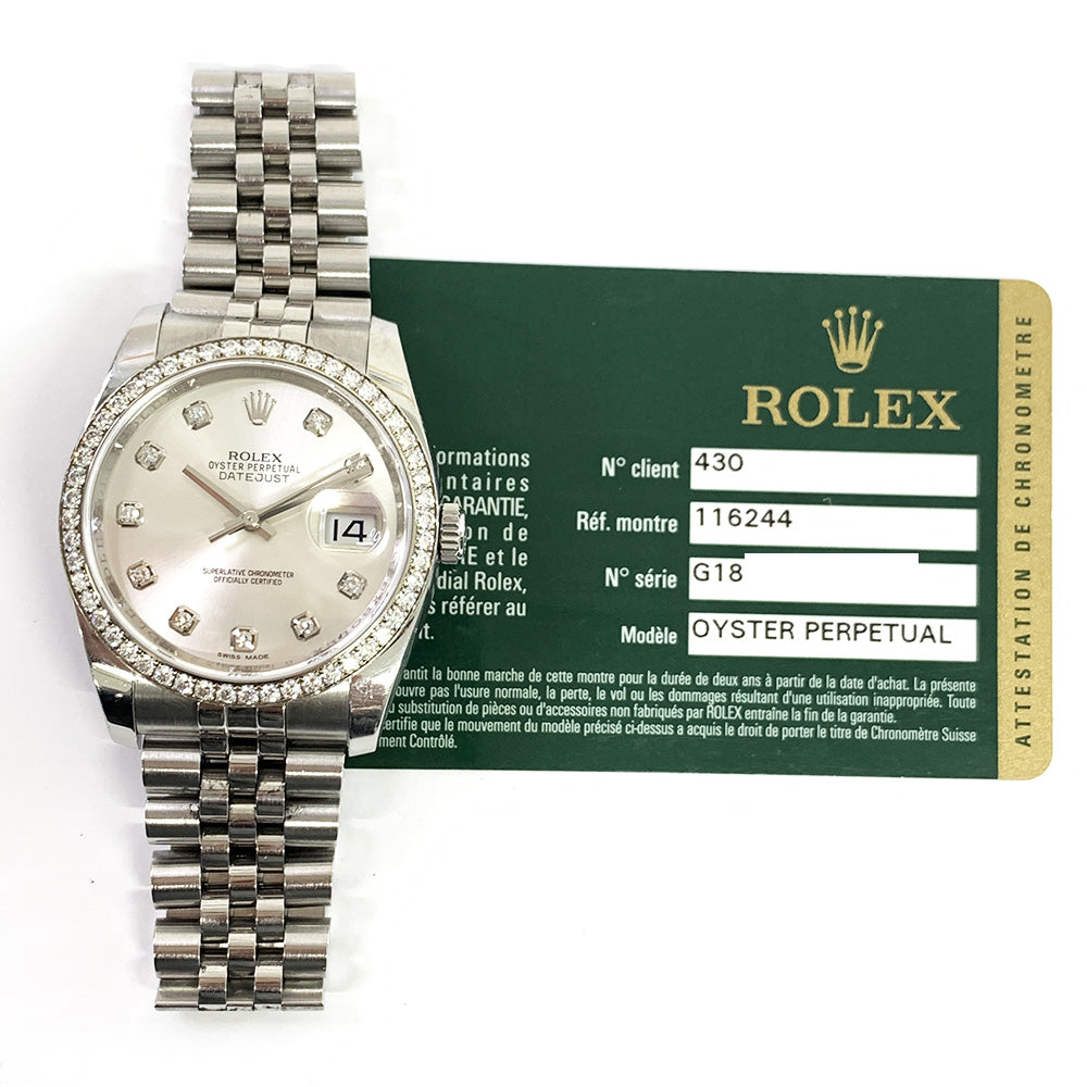 Rolex Datejust 116244 36mm Stainless Steel with Silver Dial Watch 2012