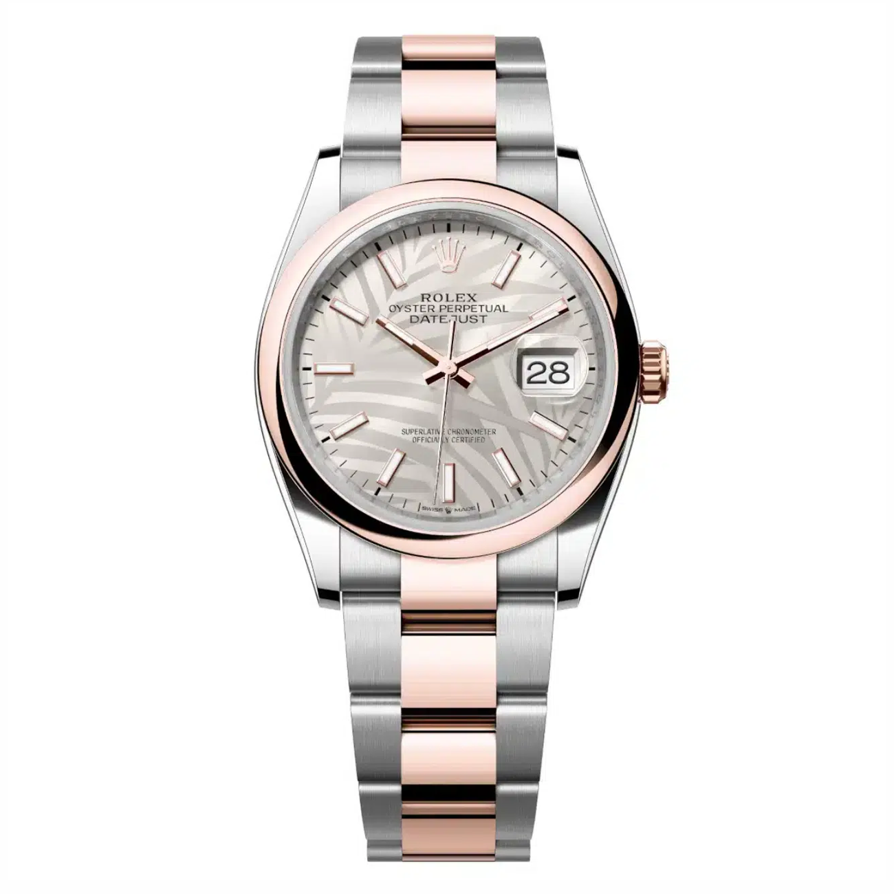Rolex Datejust 126201-0032 36mm Oyster Stainless Steel & Rose Gold Watch Silver Palm Index Dial 2024