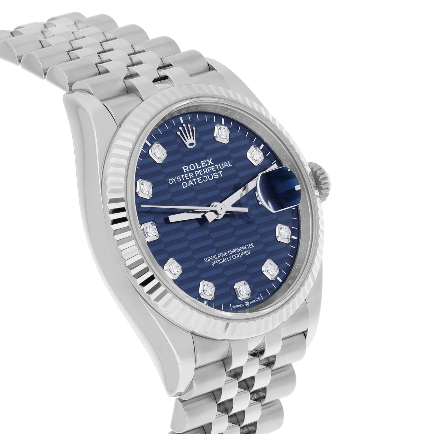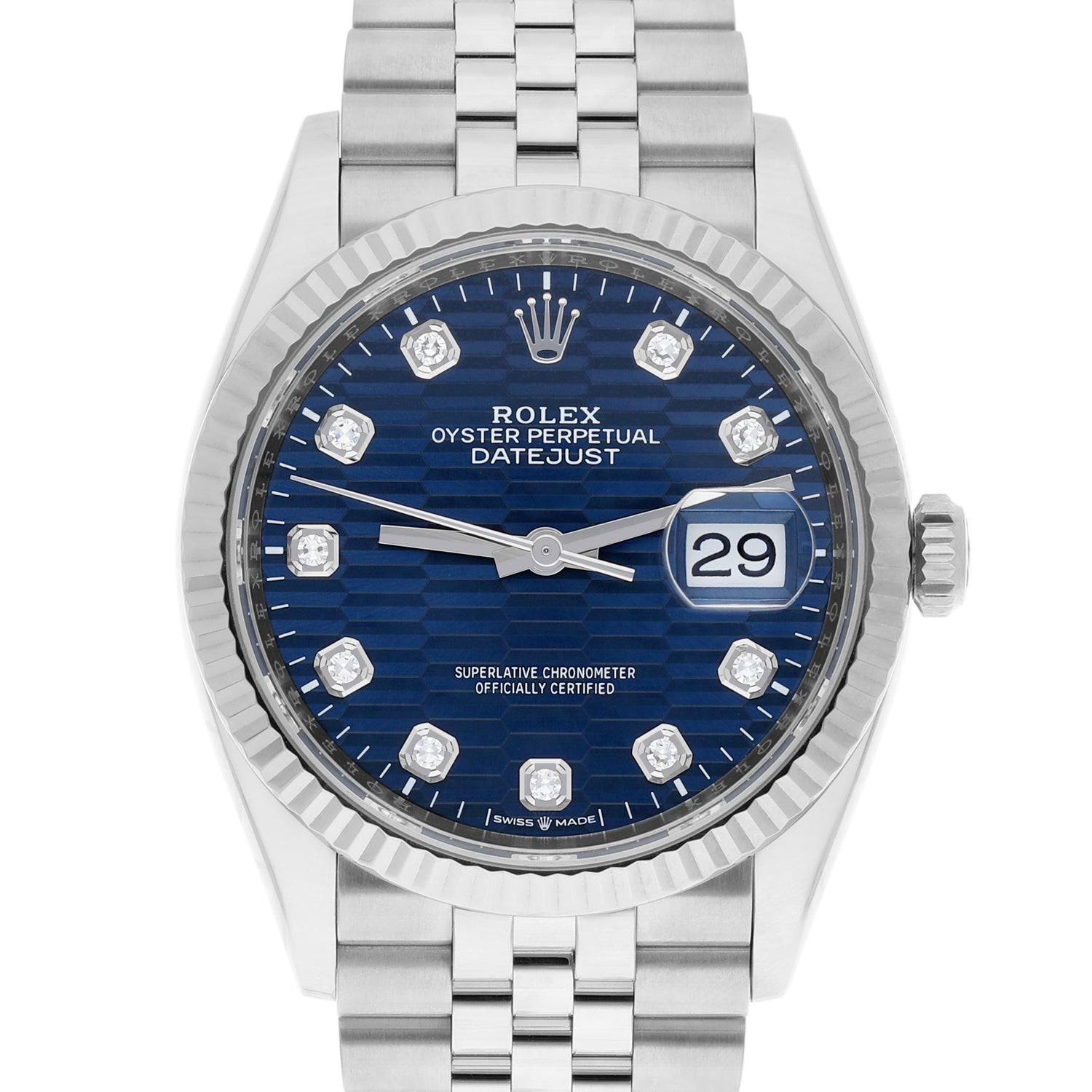 Rolex Datejust 126234 36mm Bright Blue Motif Diamond Dial, Fluted Bezel, Jubilee Bracelet 2023