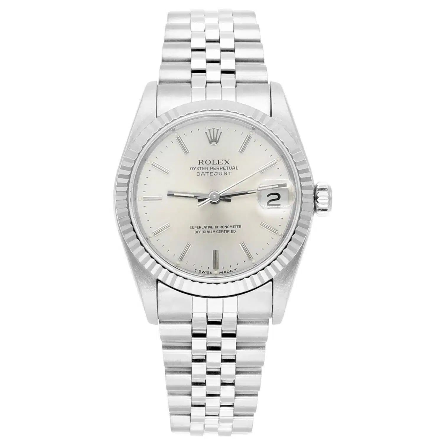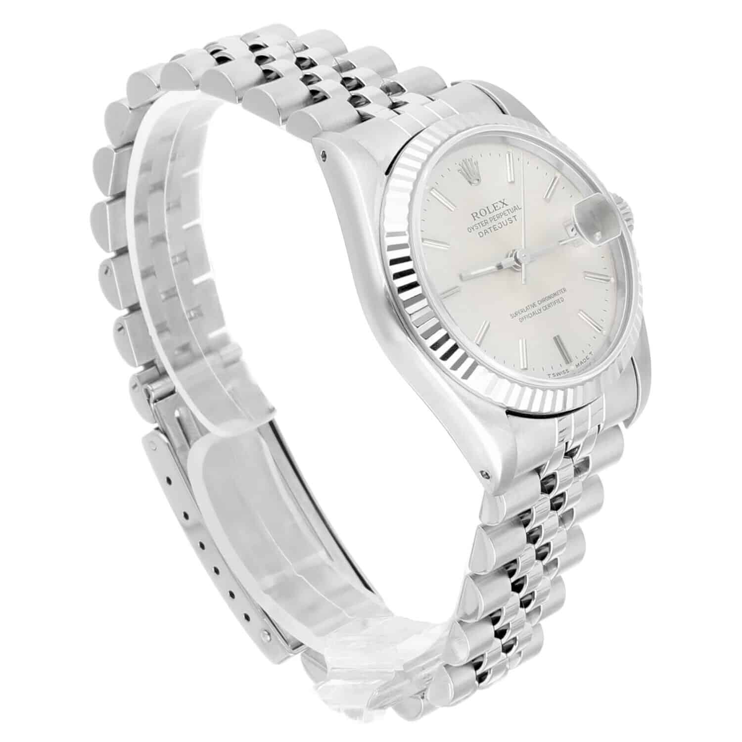 Rolex Datejust 31 68274 Silver Index Dial Stainless Steel Watch White Gold Bezel