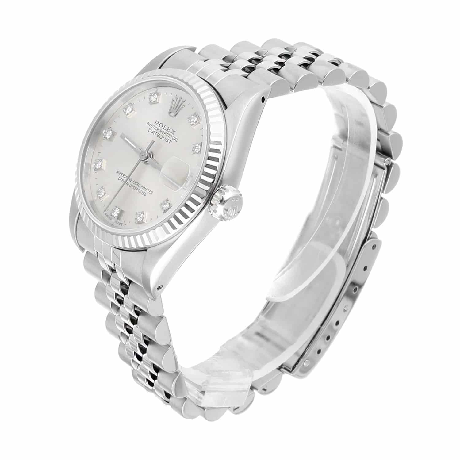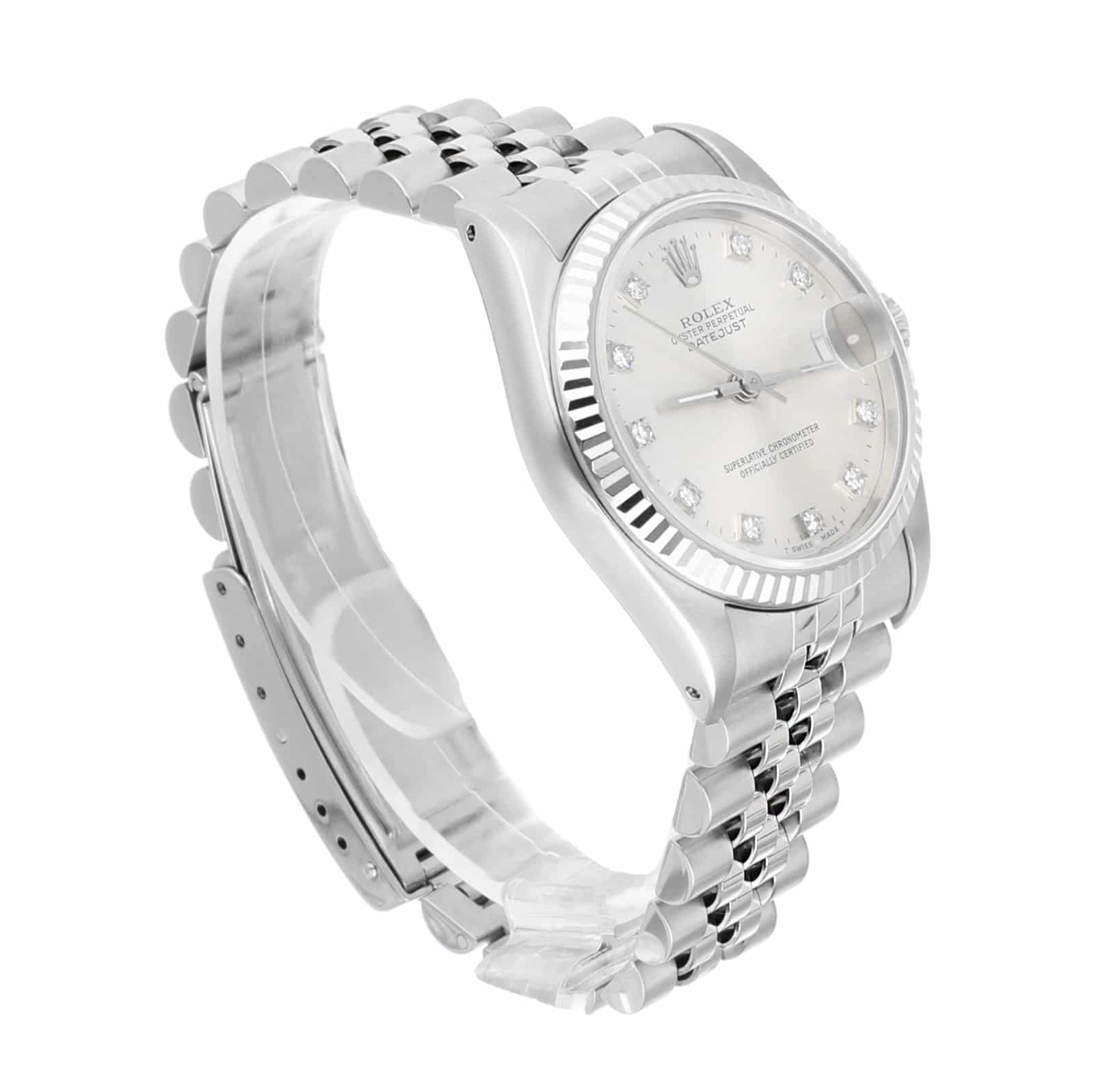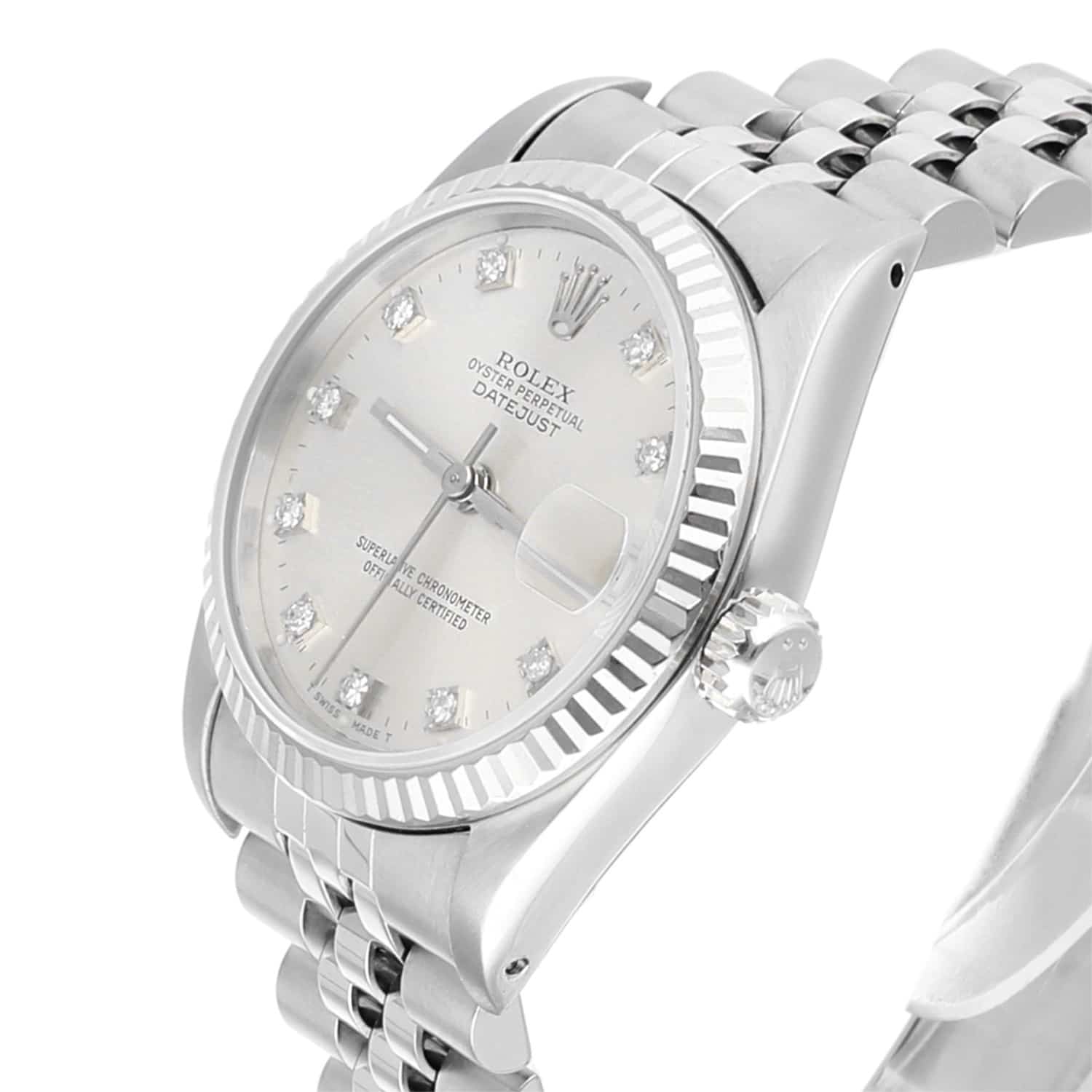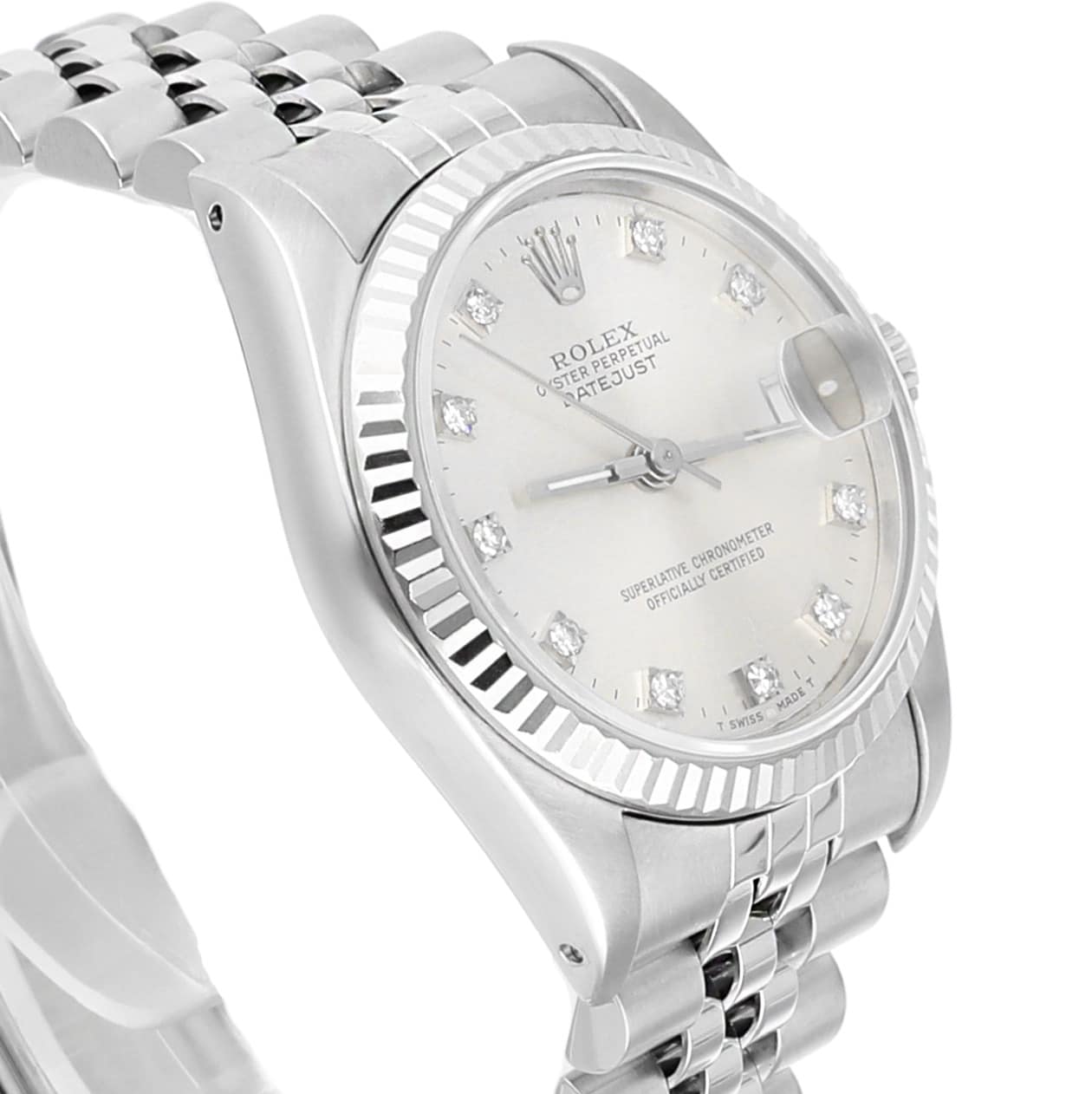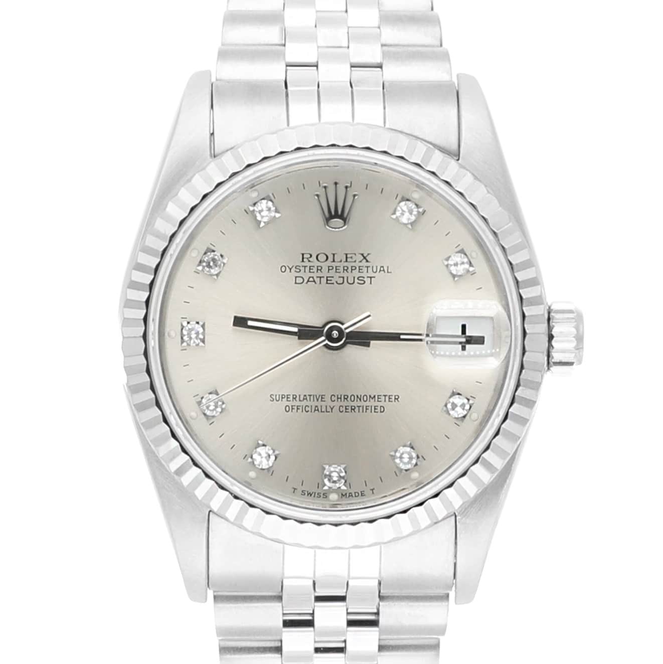 Rolex Datejust 31 Silver Diamond Dial Stainless Steel Watch White Gold Bezel 68274