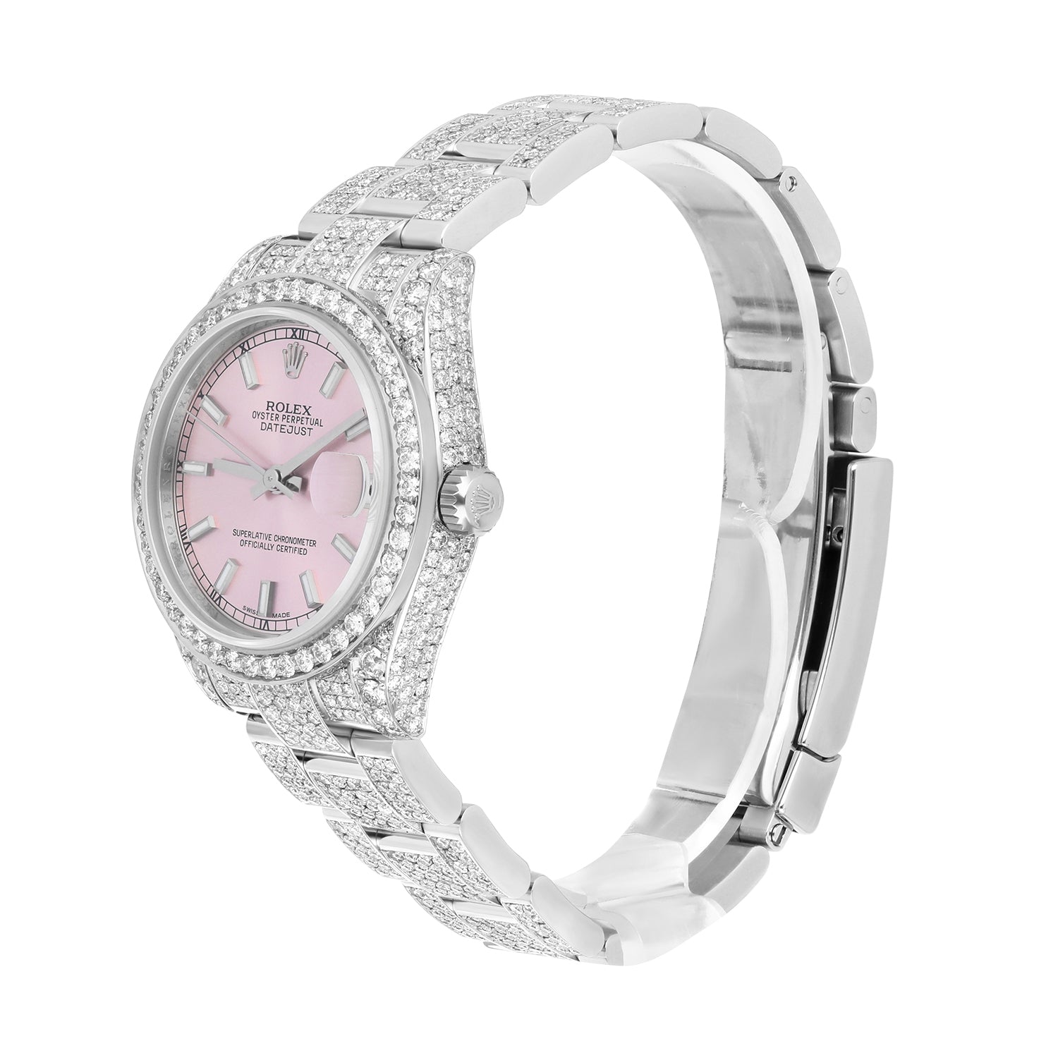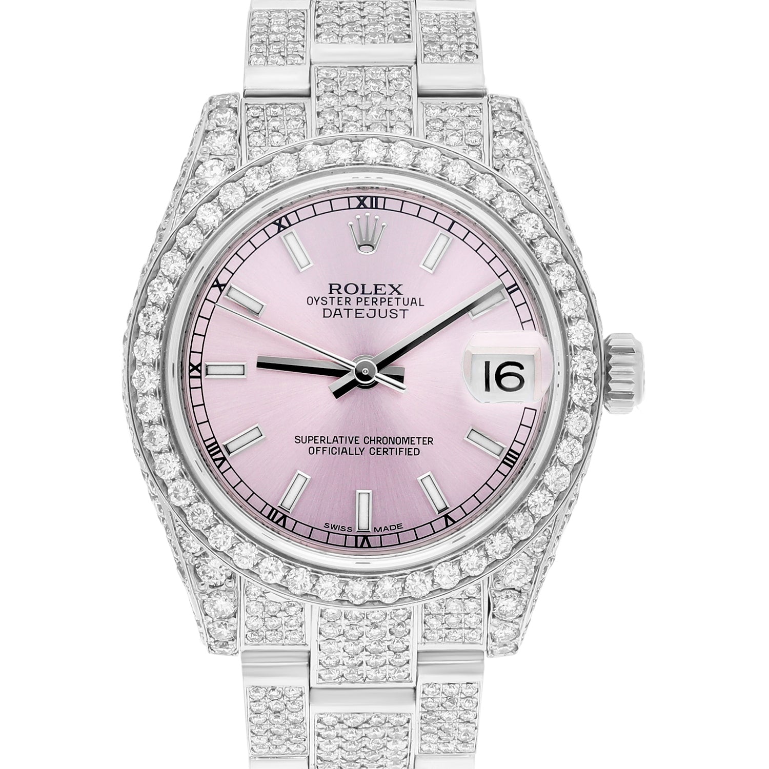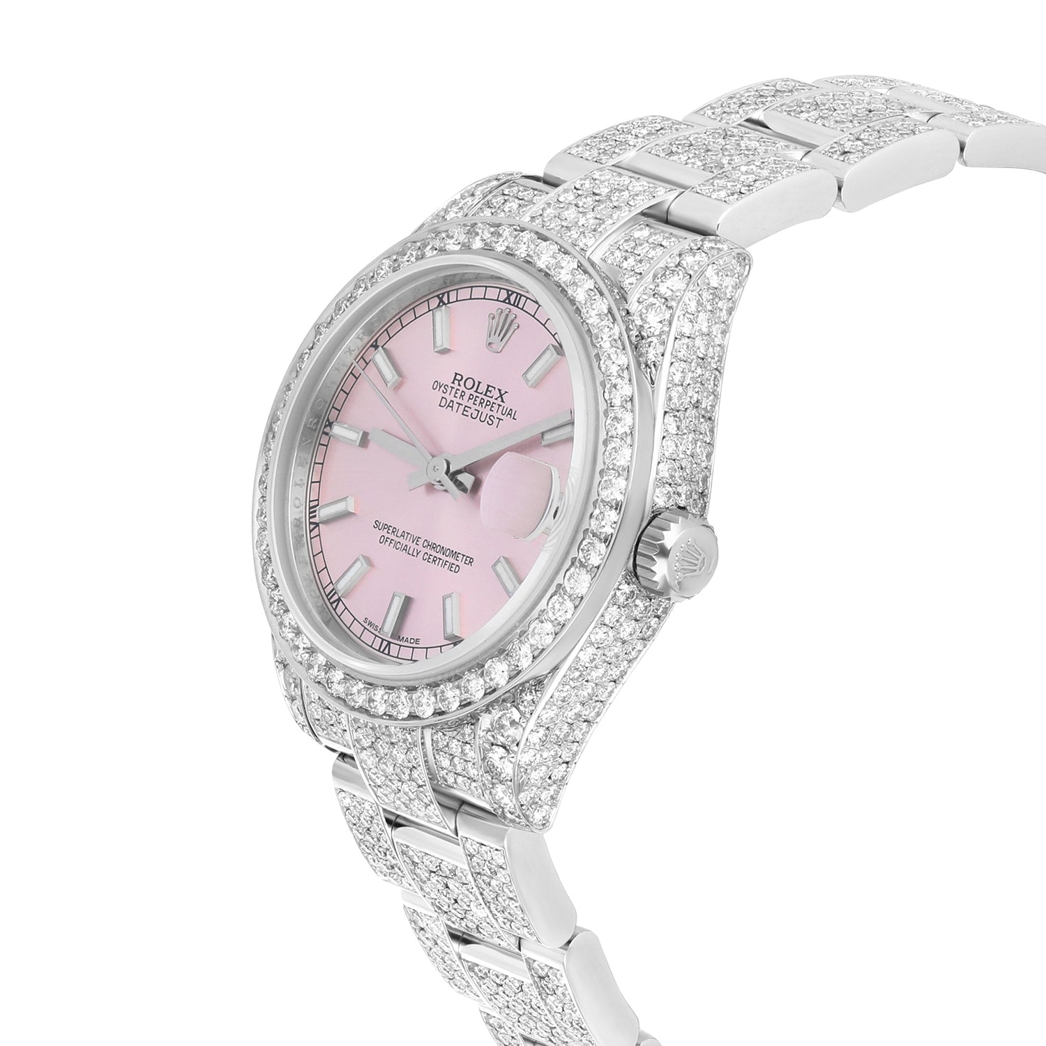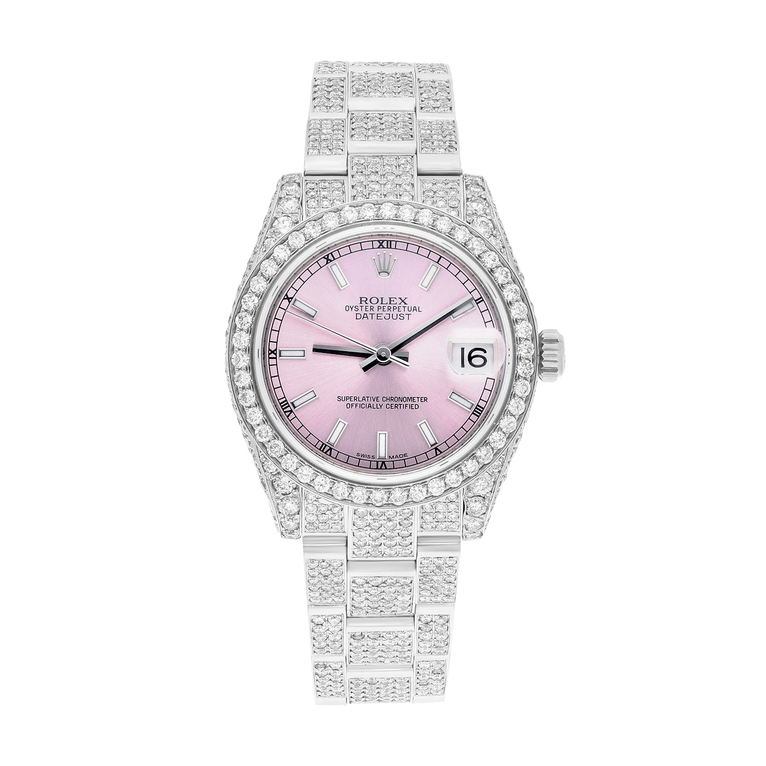 Rolex Datejust 31mm - 178240 Stainless Steel Pink Dial Fully Iced Out