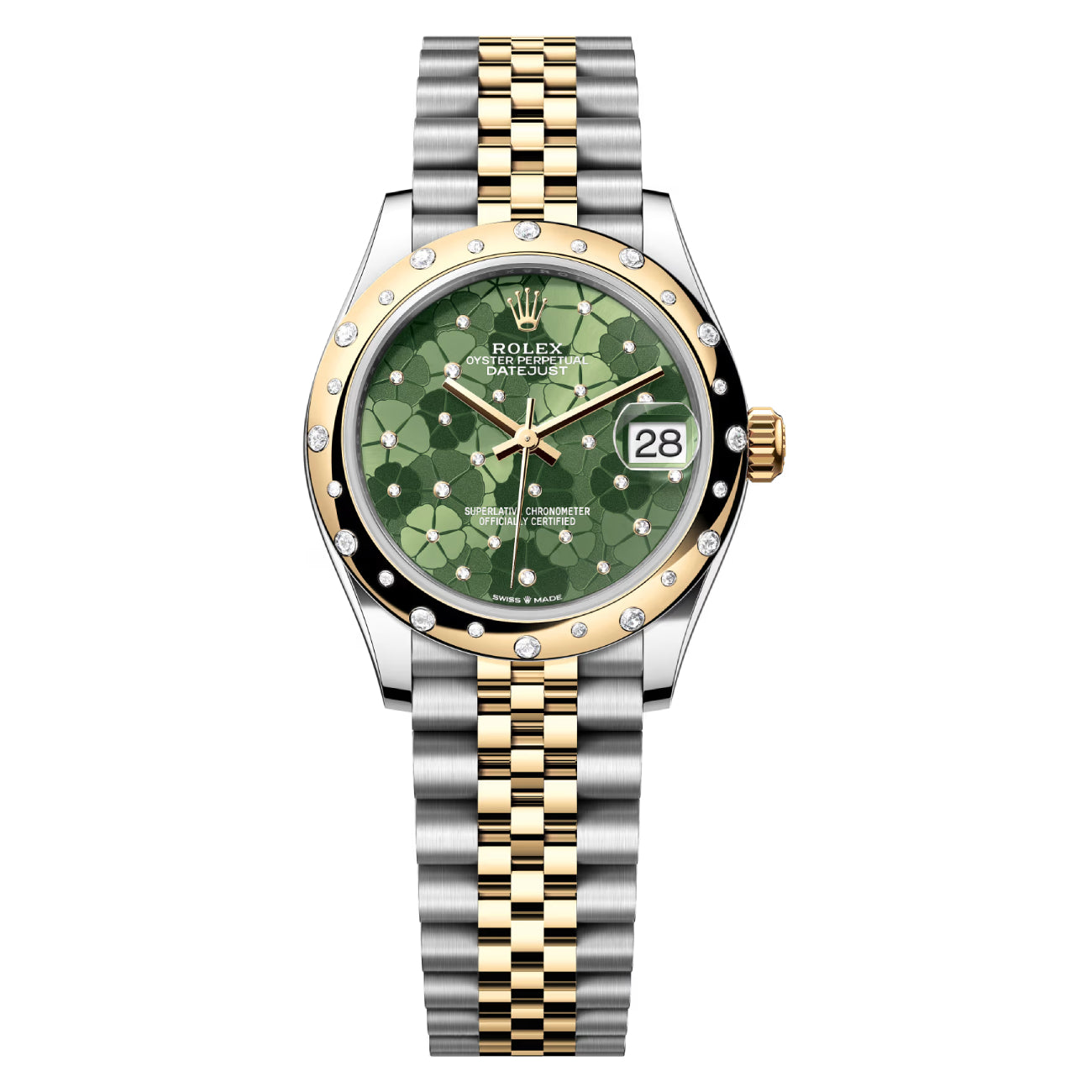 Rolex Datejust 31mm 278343rbr-0032 Scattered Diamond Bezel Jubilee Steel and Yellow Gold Watch Green Floral Dial 2024