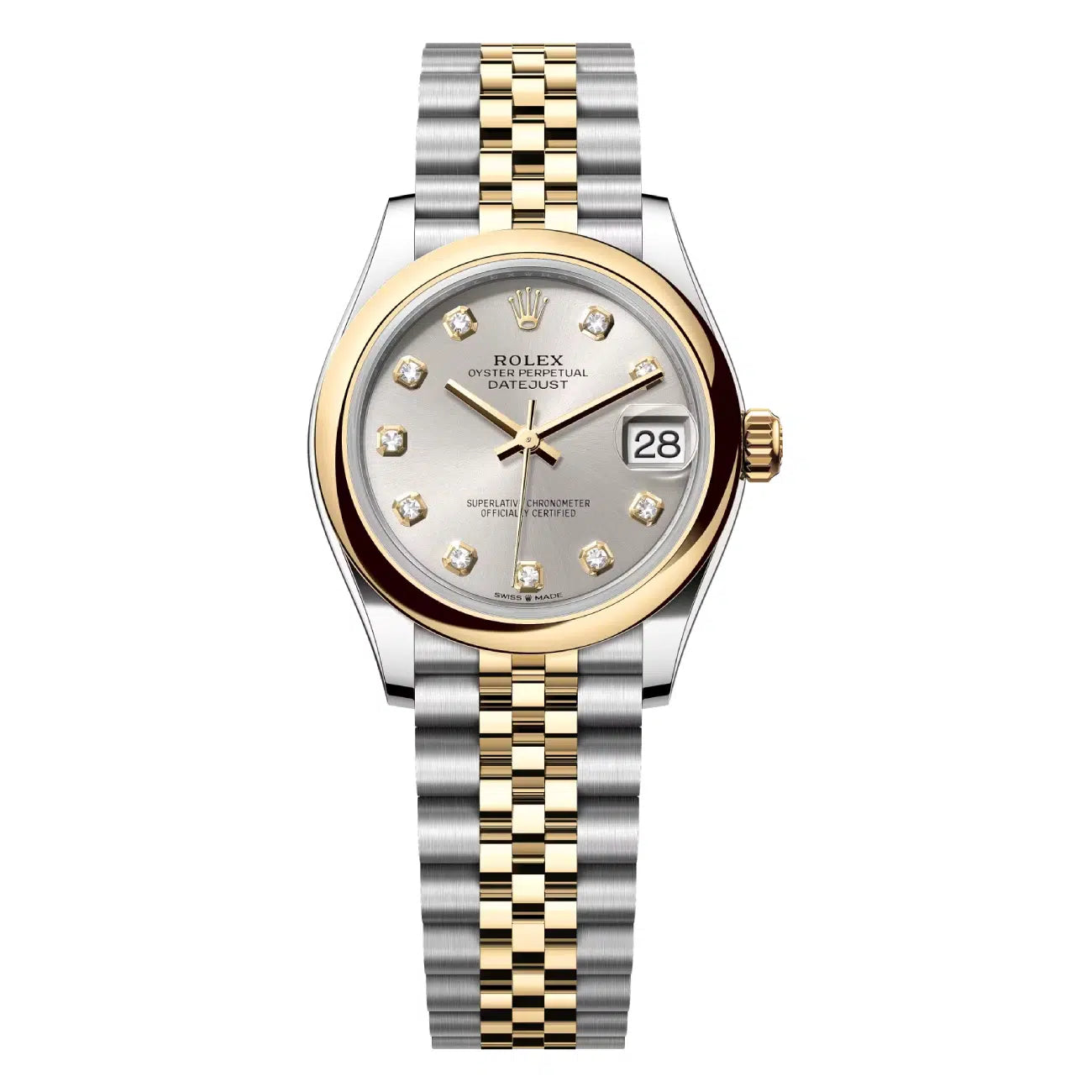 Rolex Datejust 31mm Stainless Steel and Yellow Gold 278243-0020 Watch Domed Bezel Silver Diamond Dial Jubilee Bracelet 2024