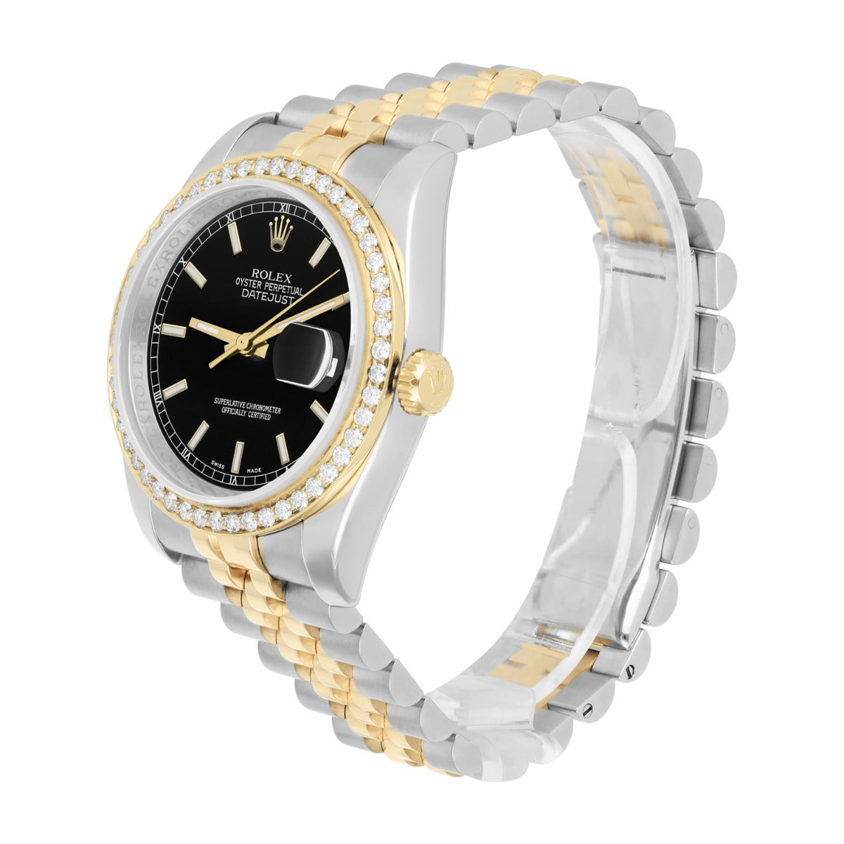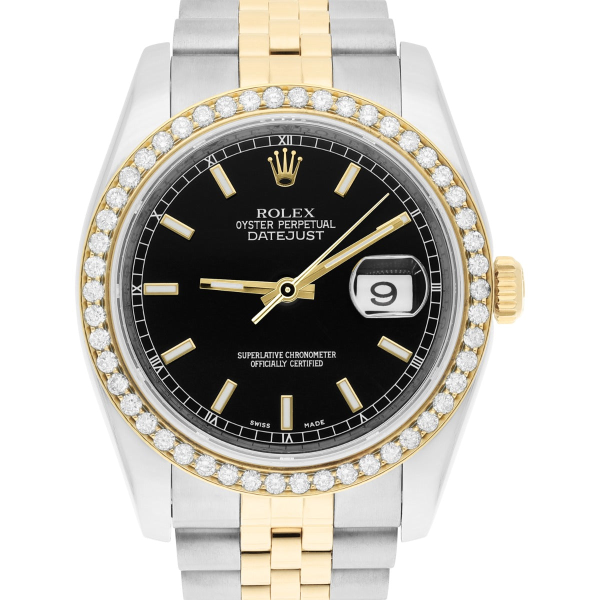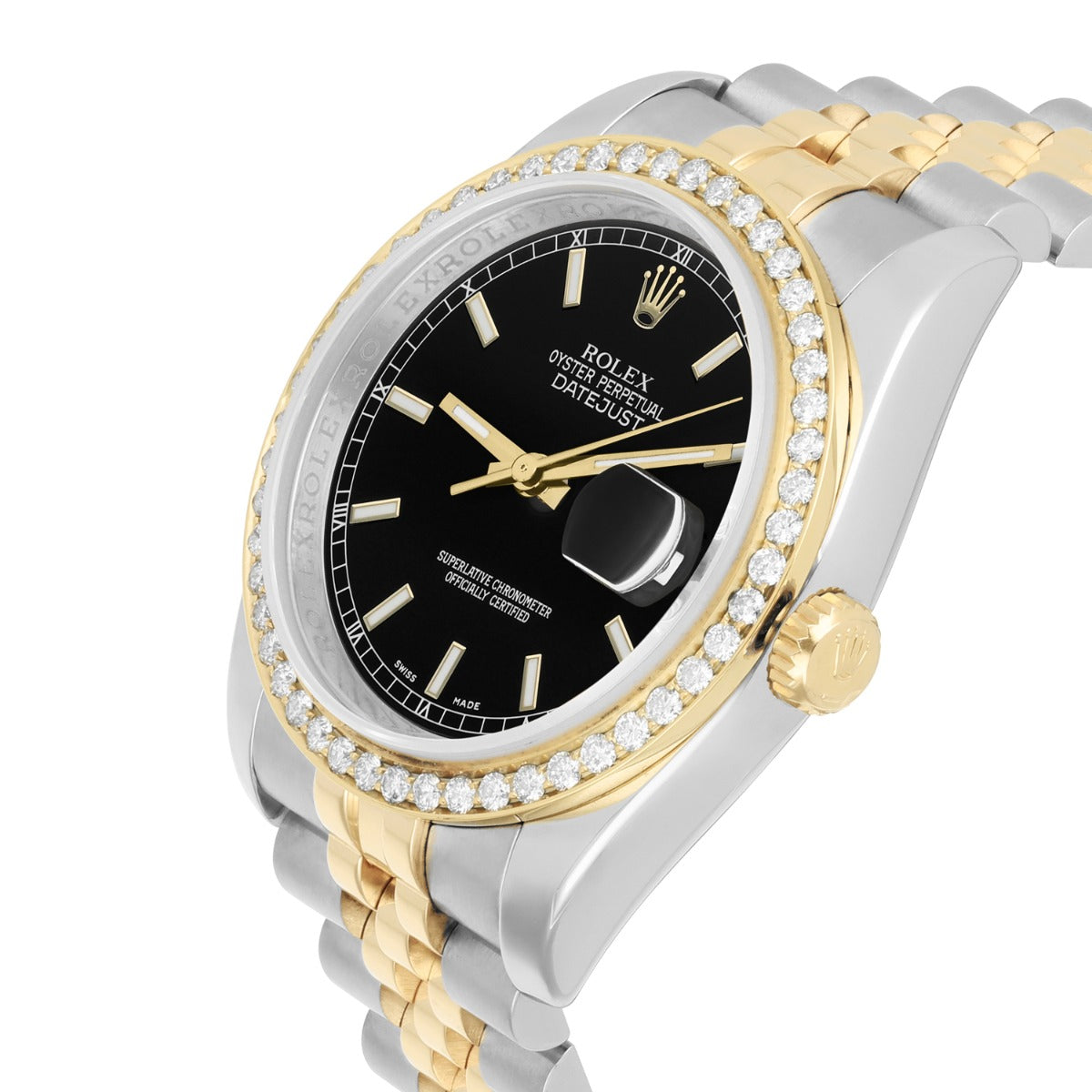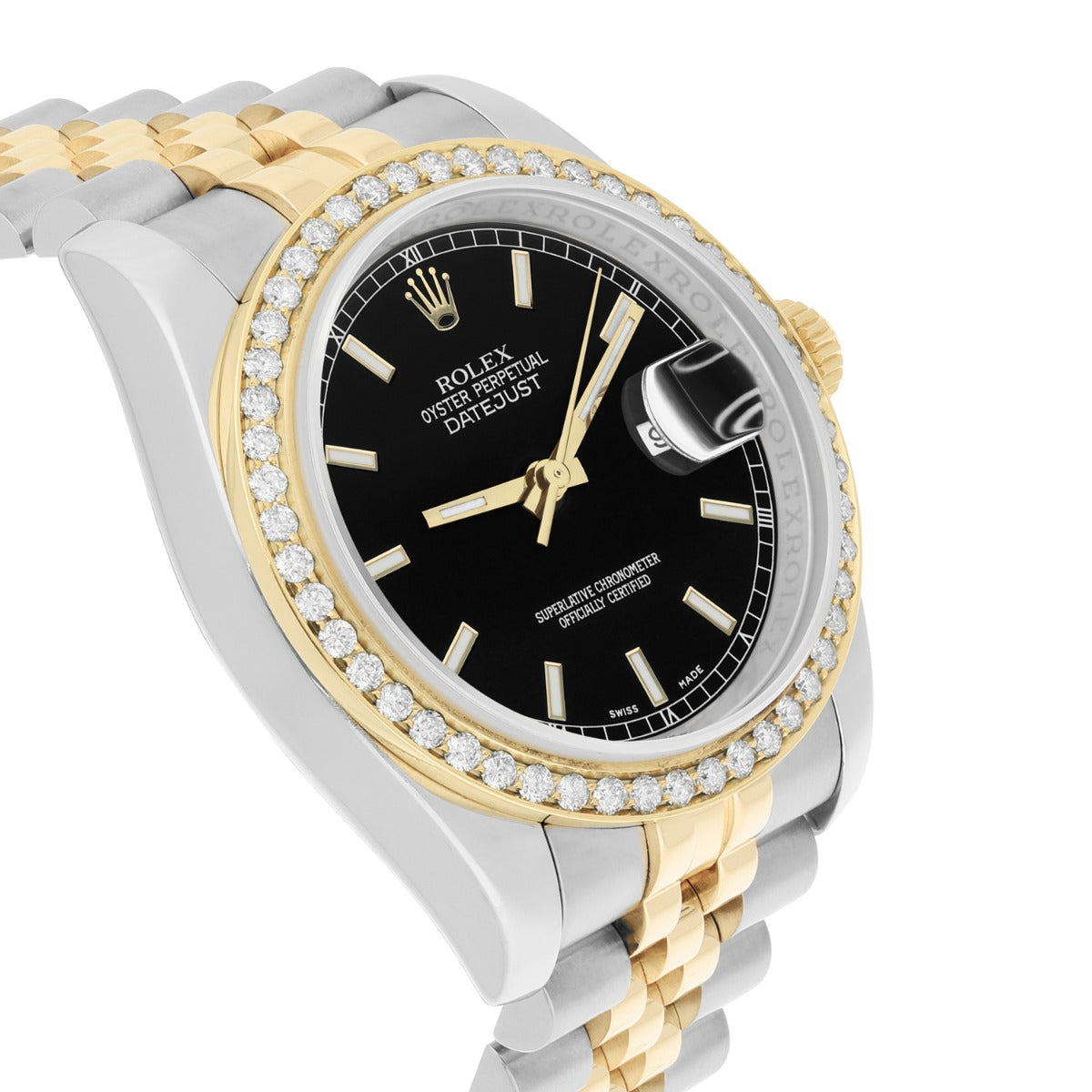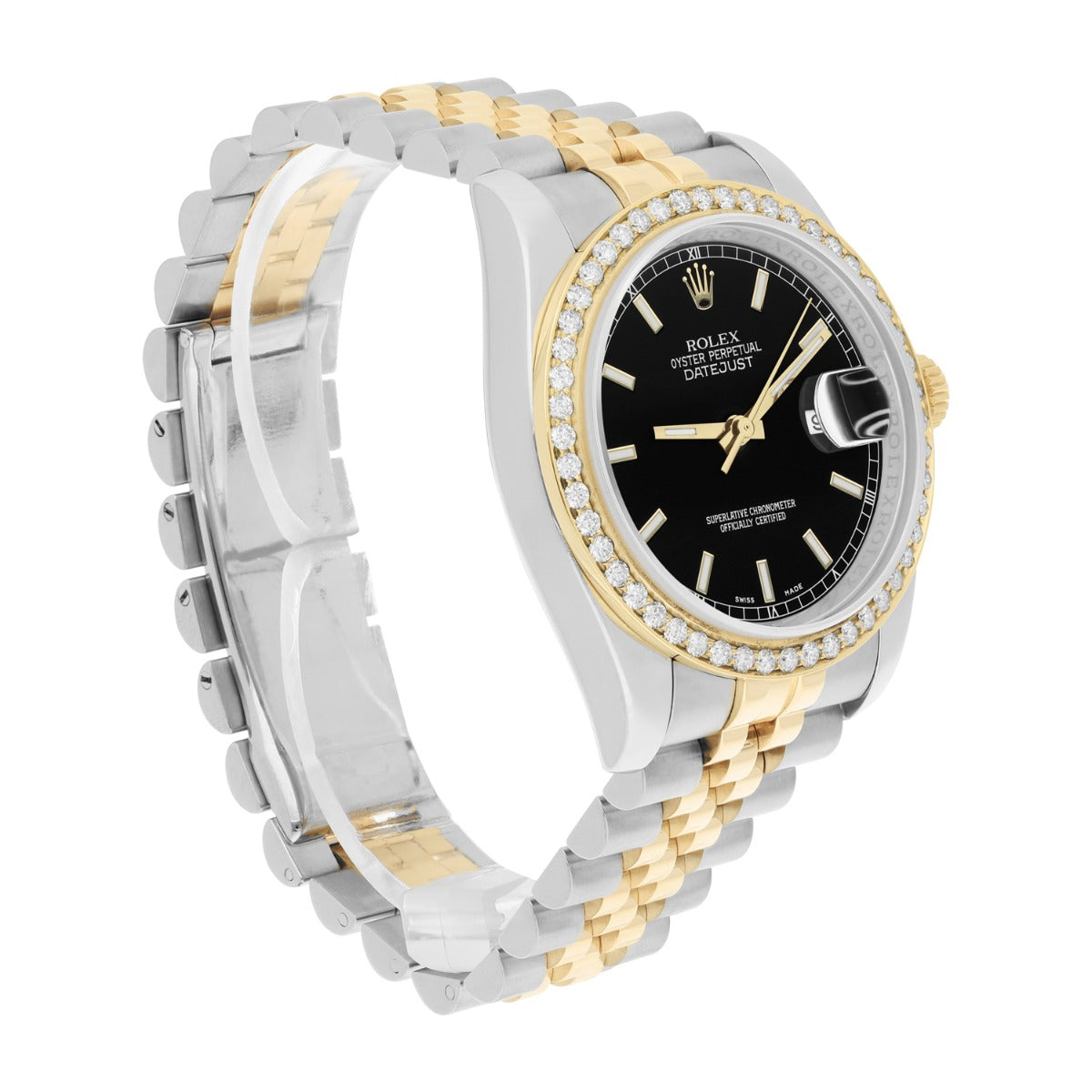 Rolex Datejust 36 2 Tone 116233 Diamond Bezel Black Index Dial Jubilee Band
