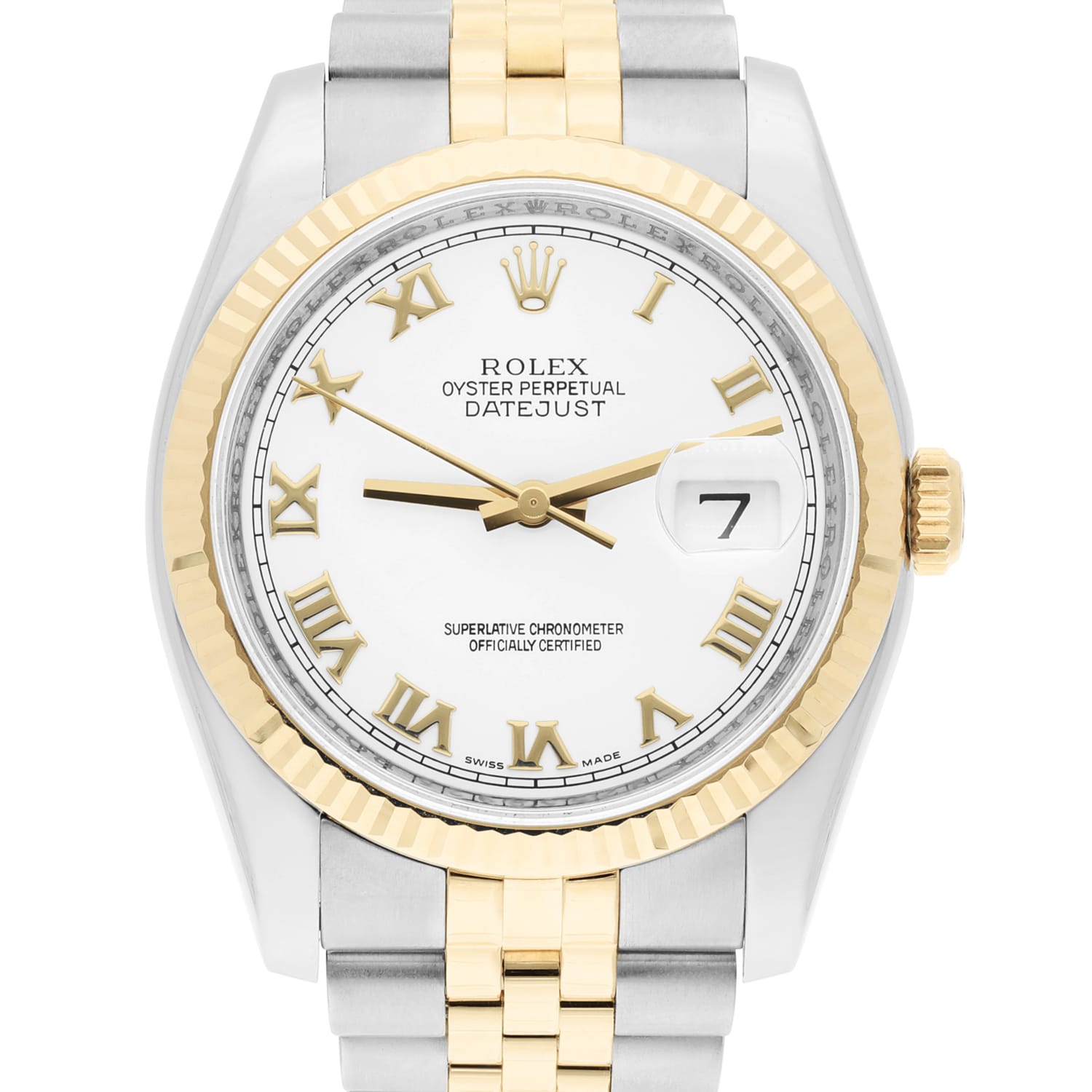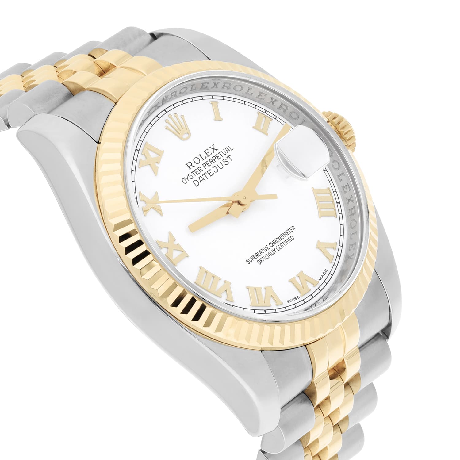 Rolex Datejust 36 Gold & Steel 116233-0149 Watch White Roman Dial Jubilee Watch