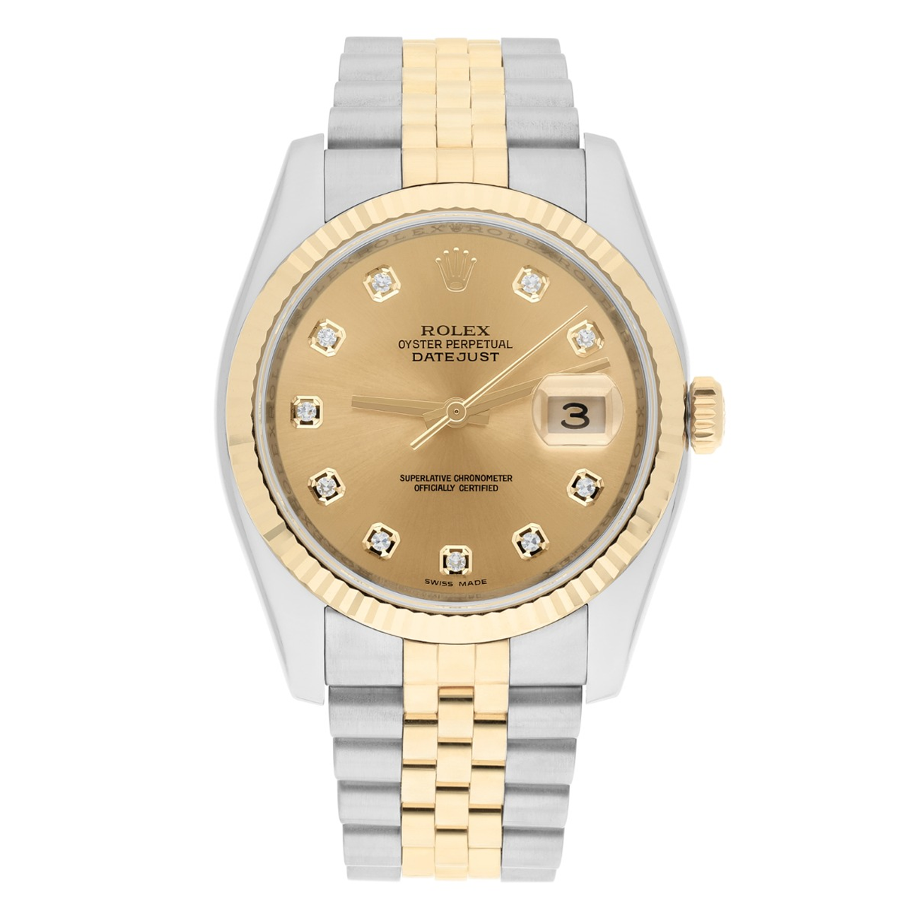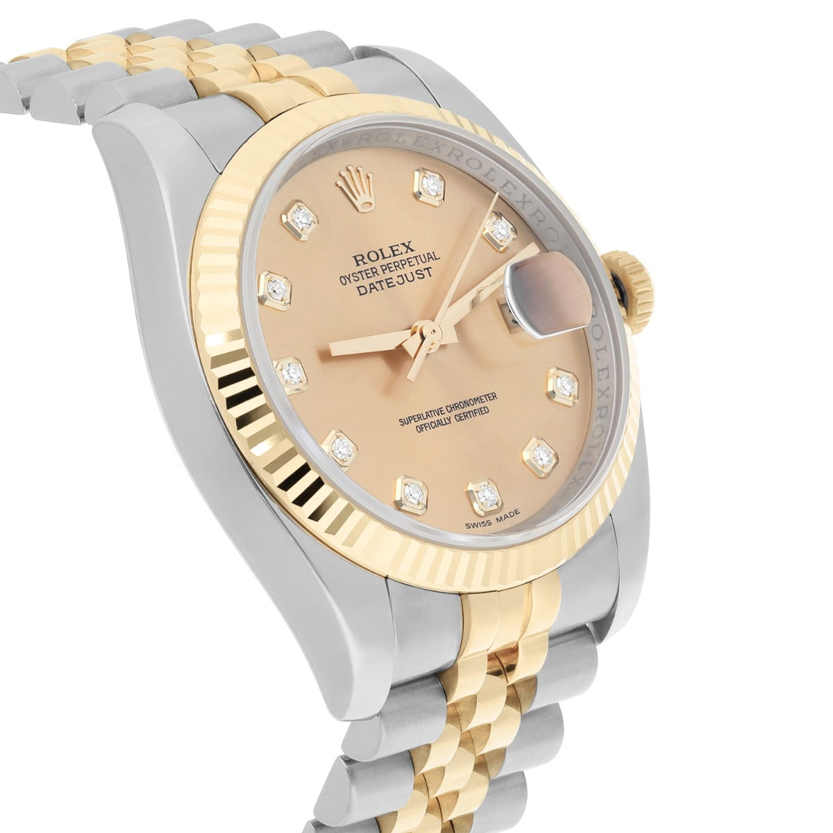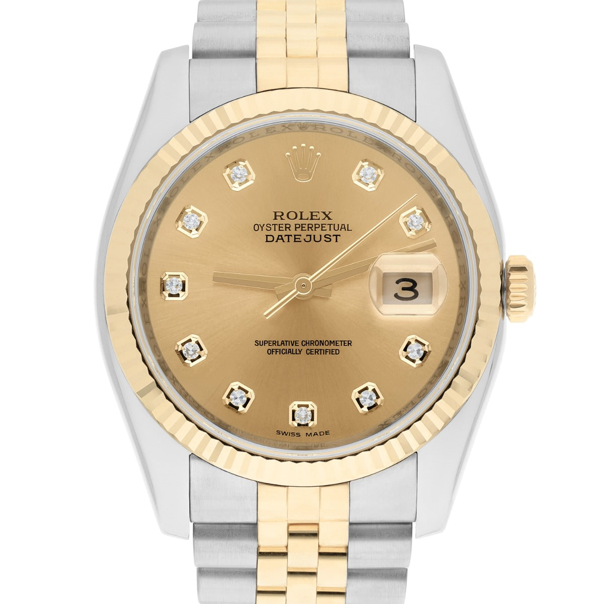 Rolex Datejust 36 Gold & Steel 116233 Champagne Diamond Dial Jubilee Watch B/P
