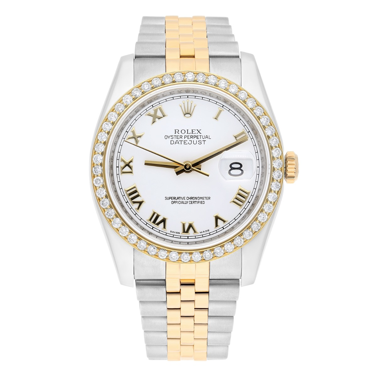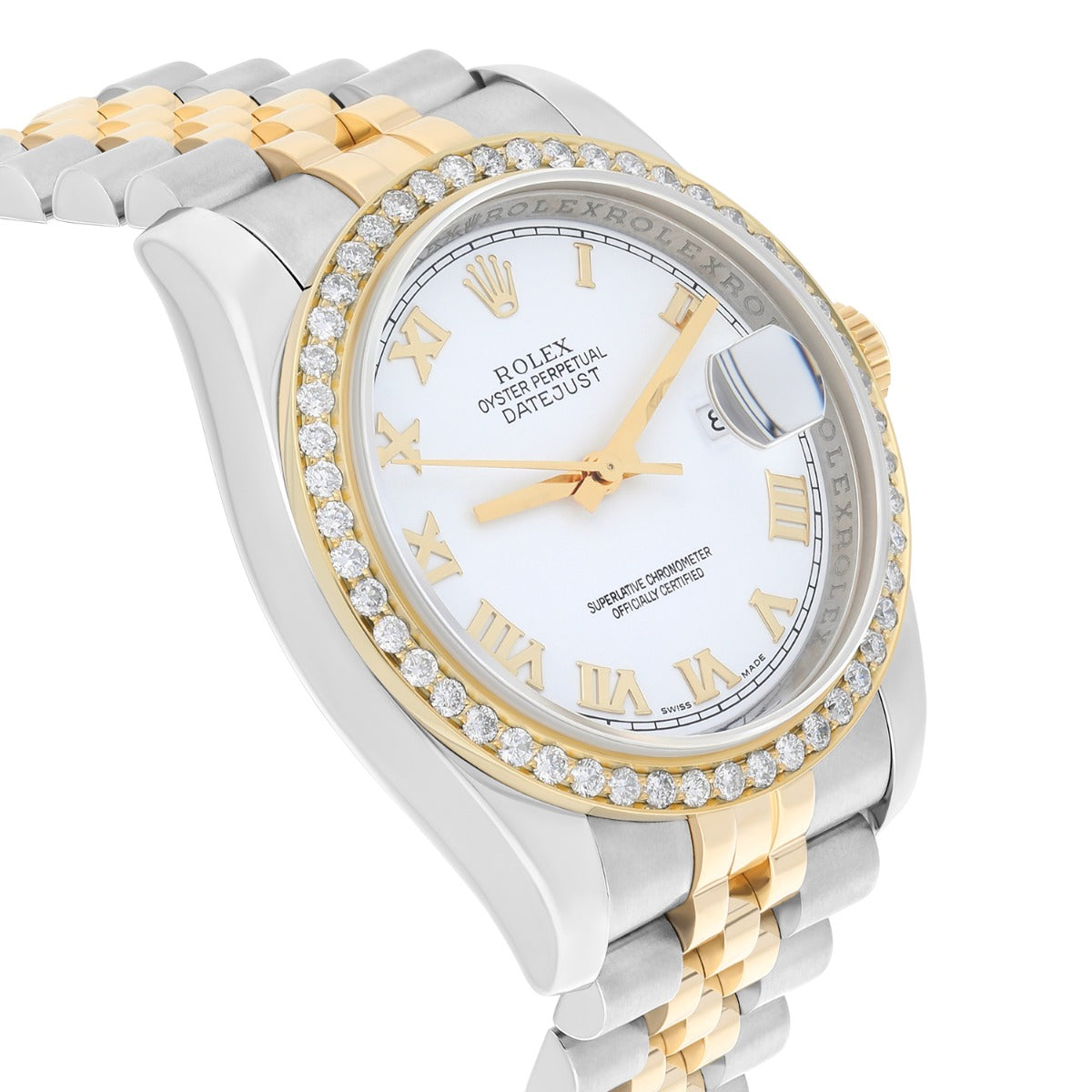 Rolex Datejust 36 Gold/Steel 116233 Diamond Bezel White Roman Dial Jubilee Band Watch