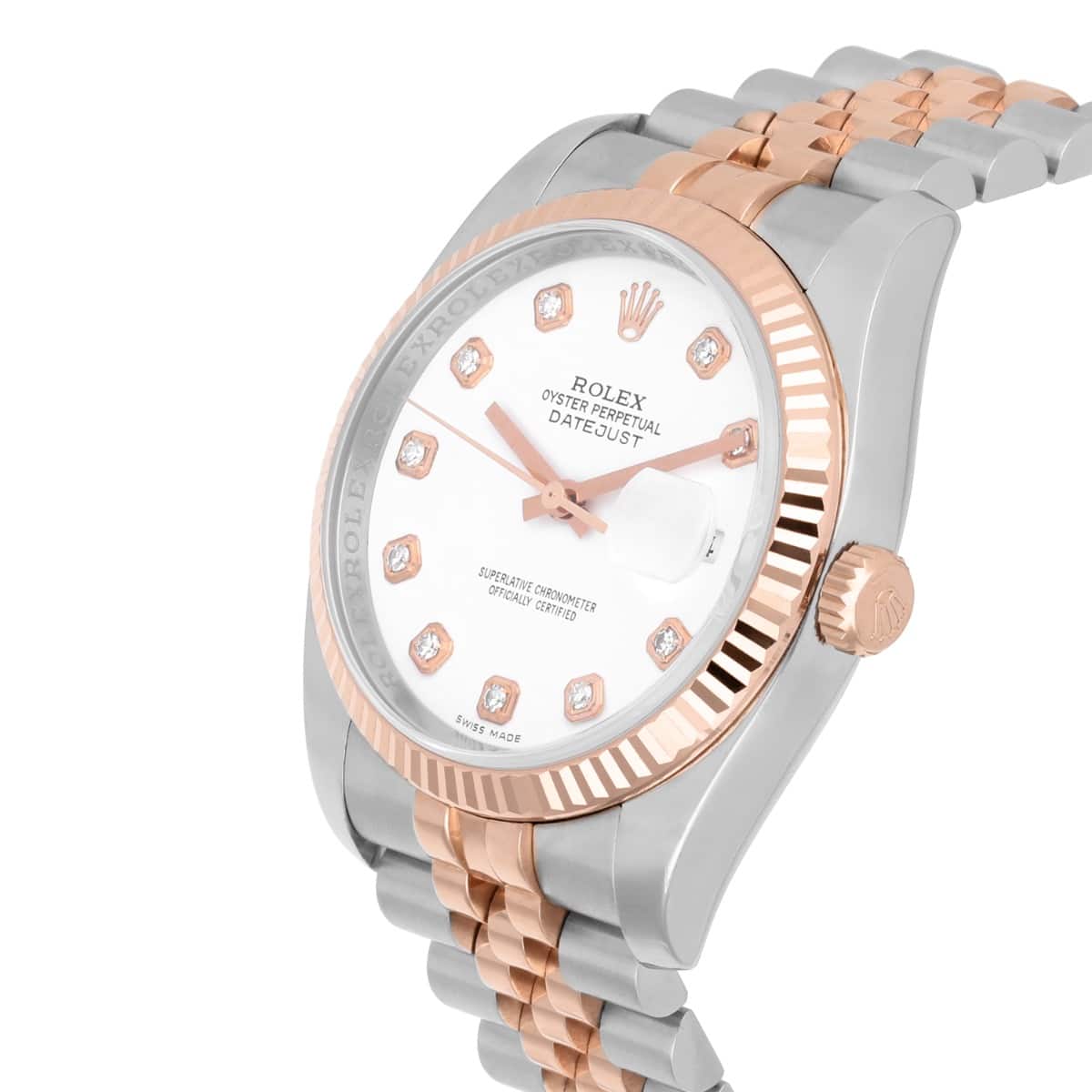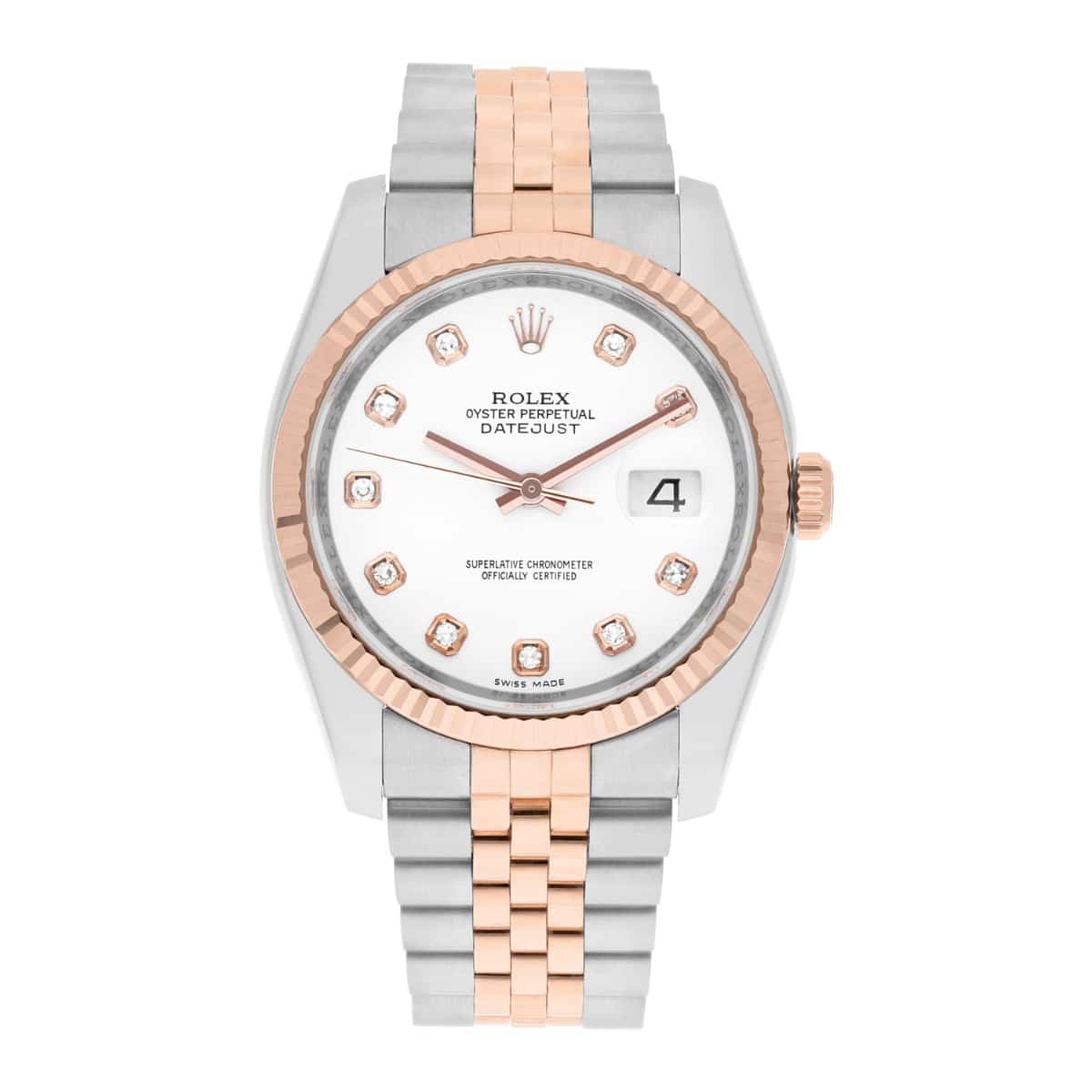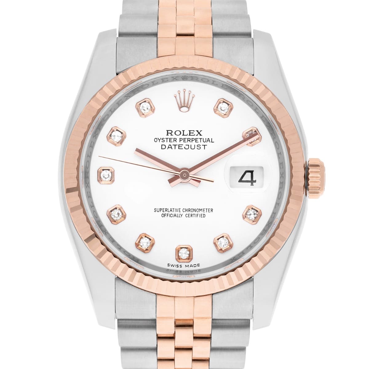 Rolex Datejust 36mm 116231-0060 White Diamond Dial Rose Gold & Stainless Steel Watch