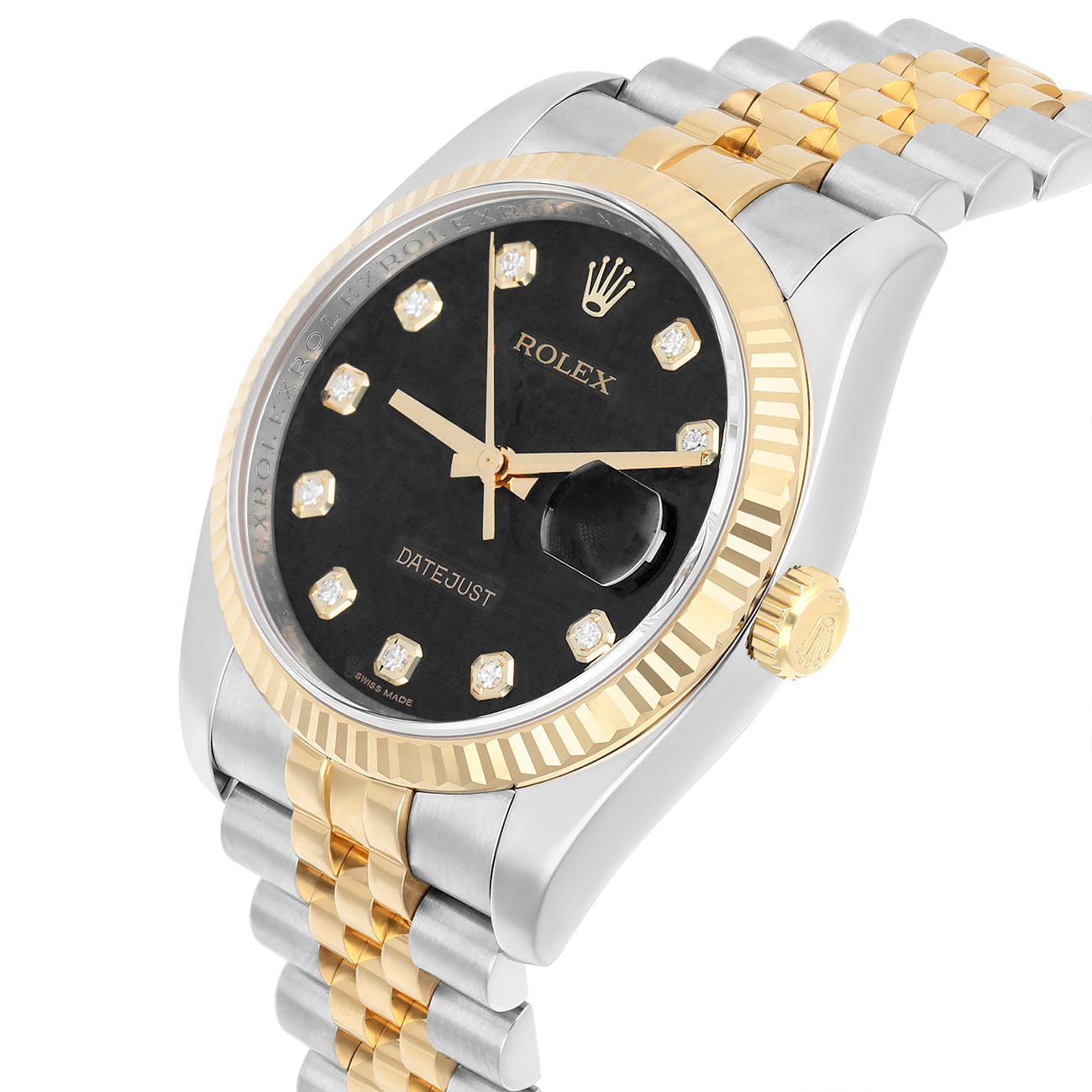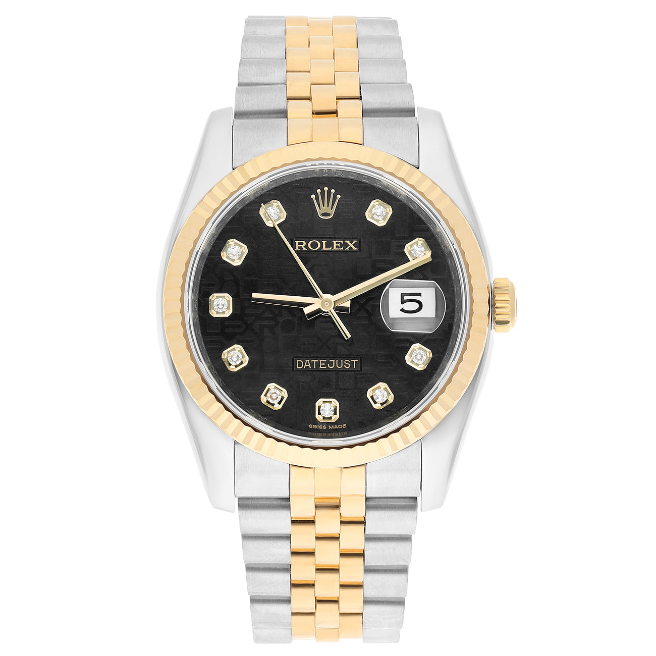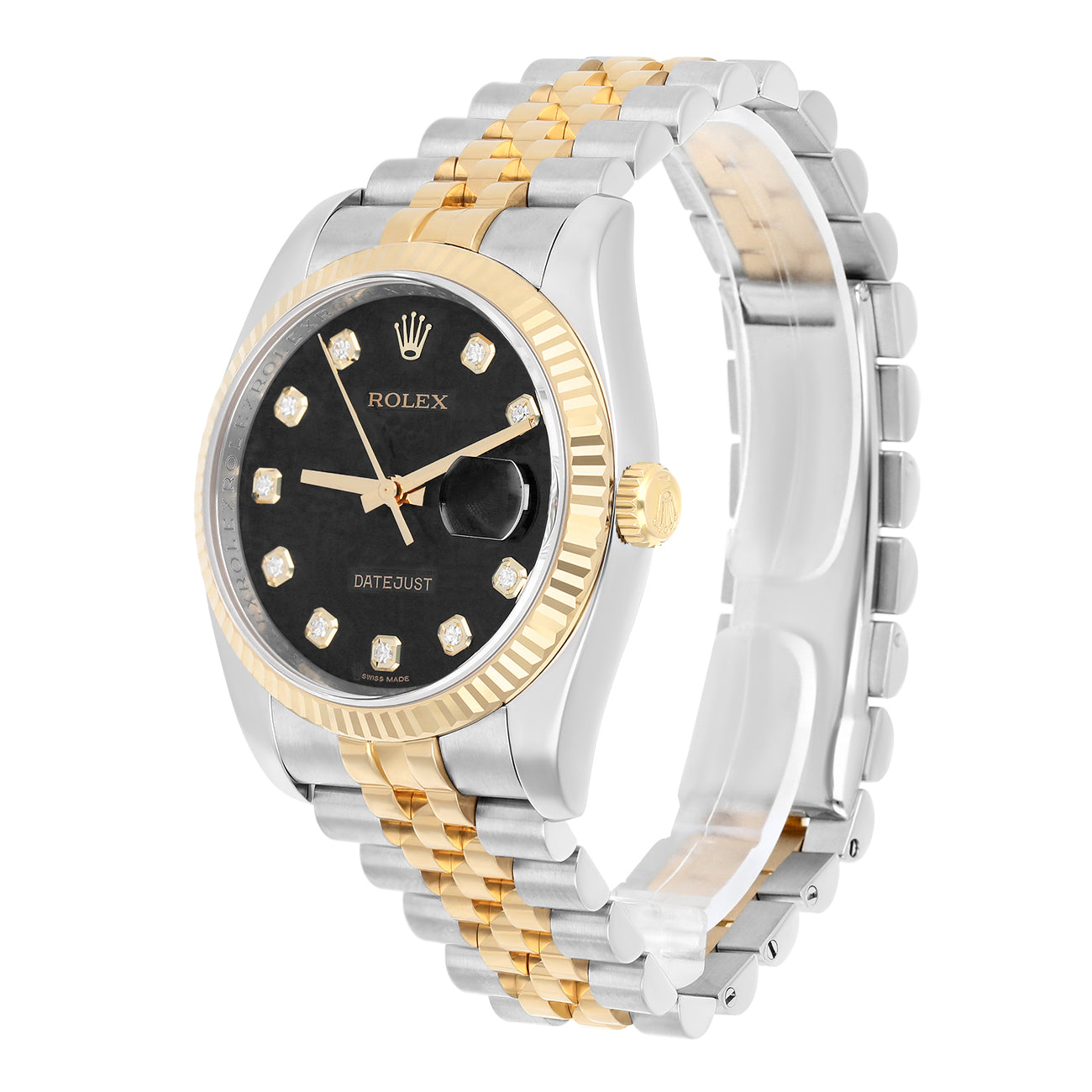 Rolex Datejust 36mm 116233 Fluted Bezel Black Computer Diamond Dial Two Tone Watch