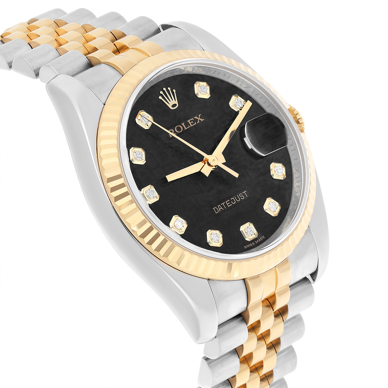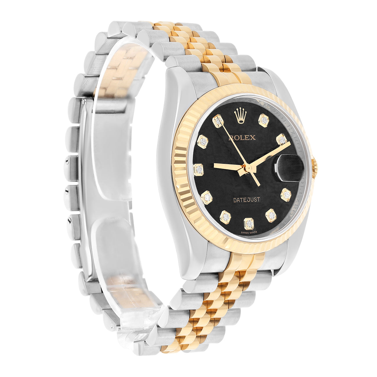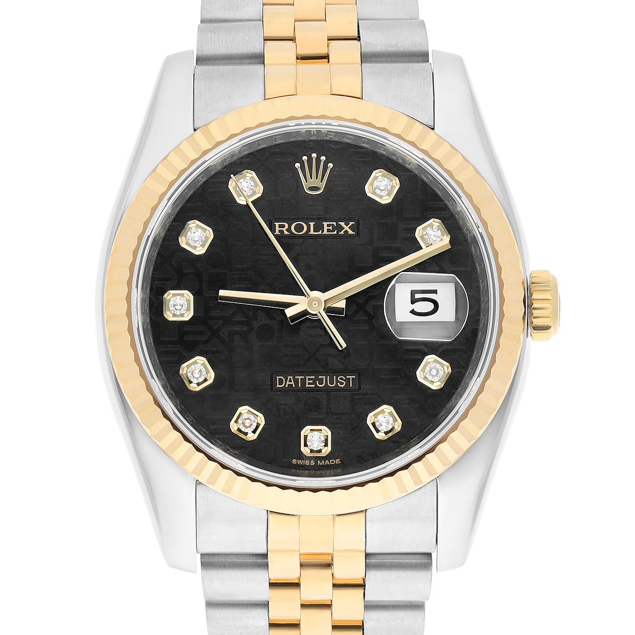 Rolex Datejust 36mm 116233 Fluted Bezel Black Computer Diamond Dial Two Tone Watch