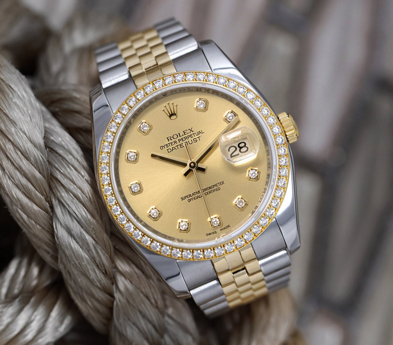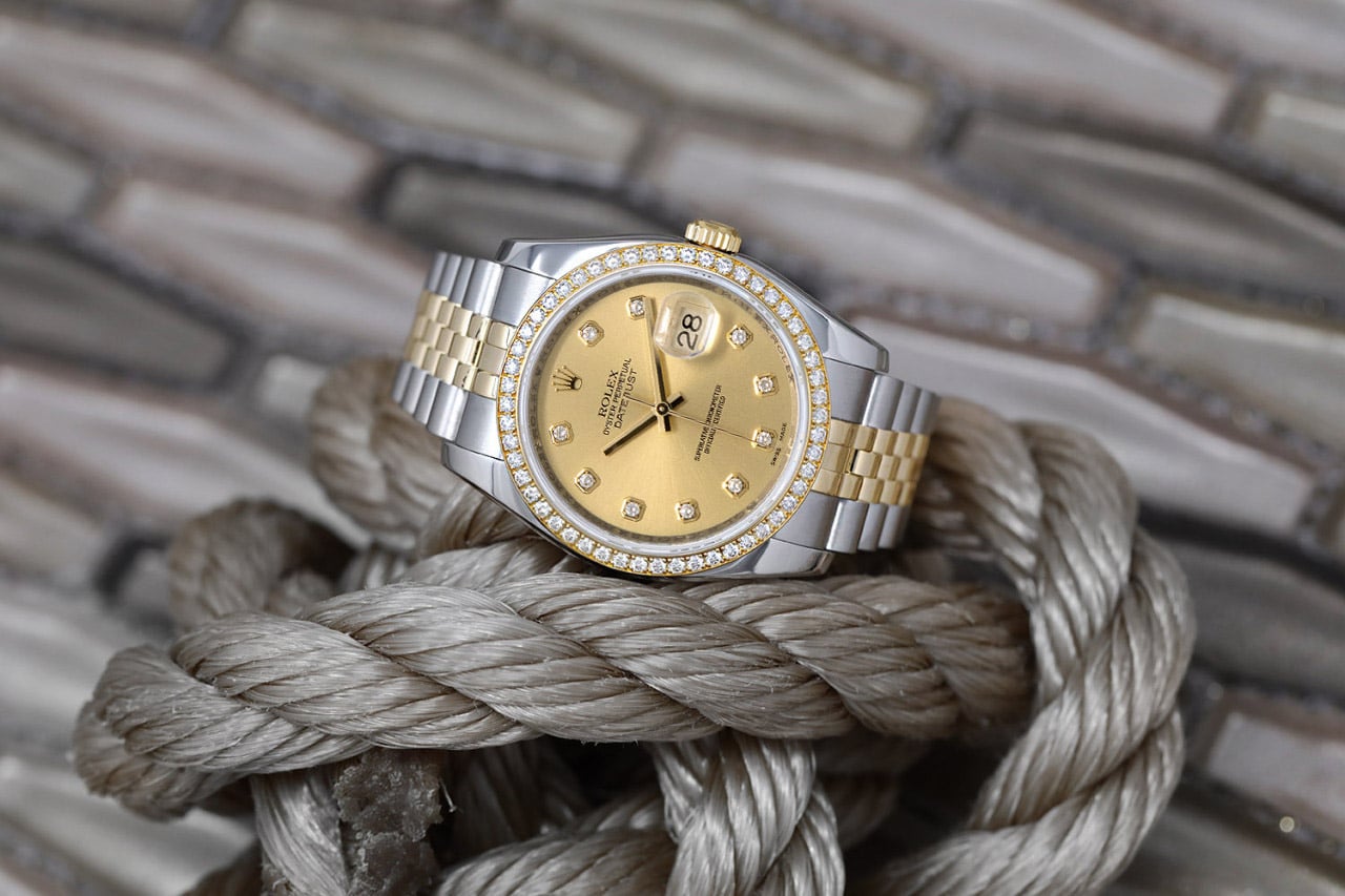 Rolex Datejust 36mm 116243 Stainless Steel and Yellow Gold Factory Diamond Bezel Champagne Diamond Dial