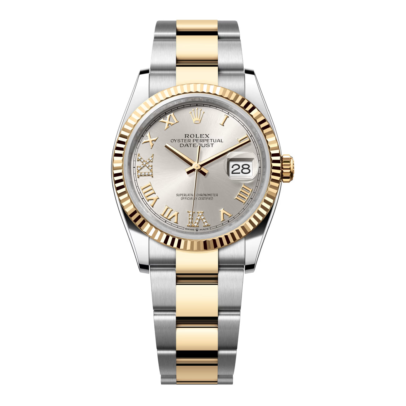 Rolex Datejust 36mm 126233-0032 Oyster Yellow Gold/Stainless Steel with Silver VI & IX Diamond Dial Watch 2024