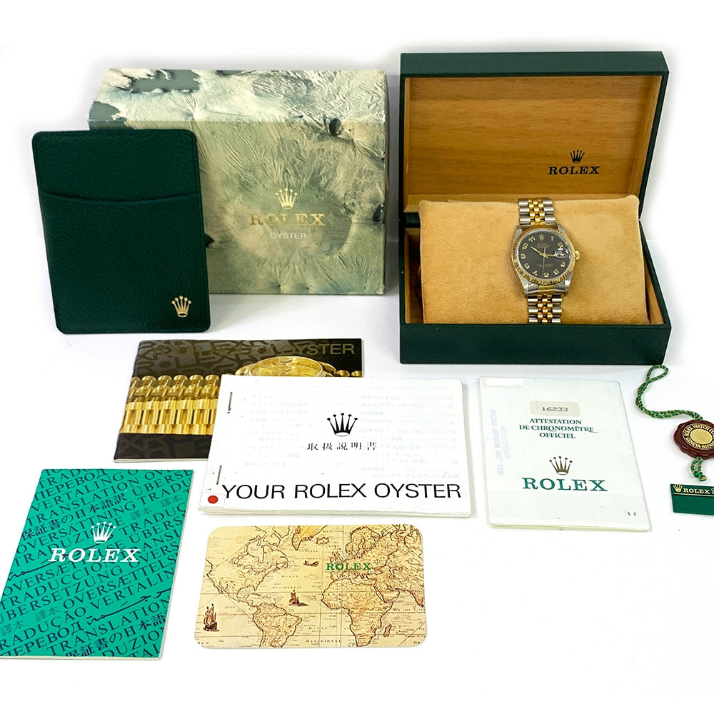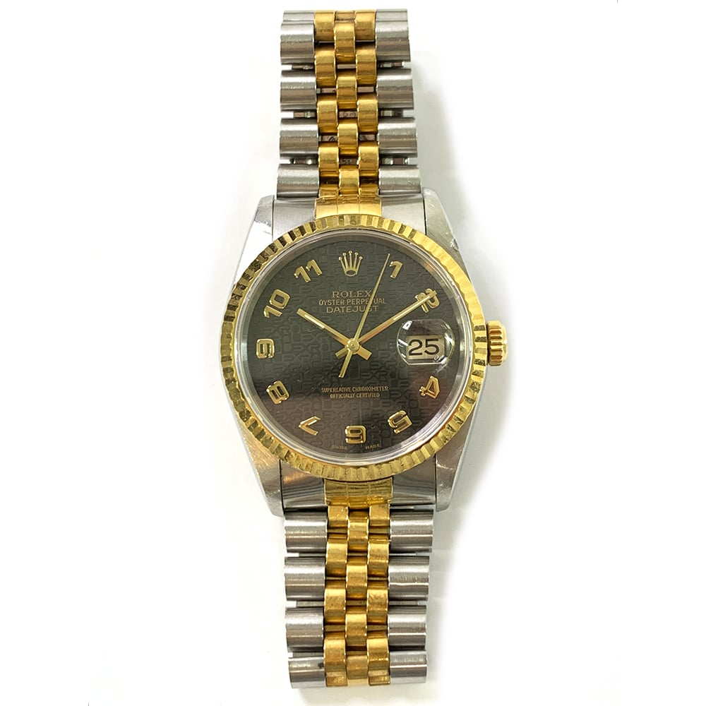 Rolex Datejust 36mm 16233 Jubilee Stainless Steel & Yellow Gold Watch Black Arabic Dial 1992
