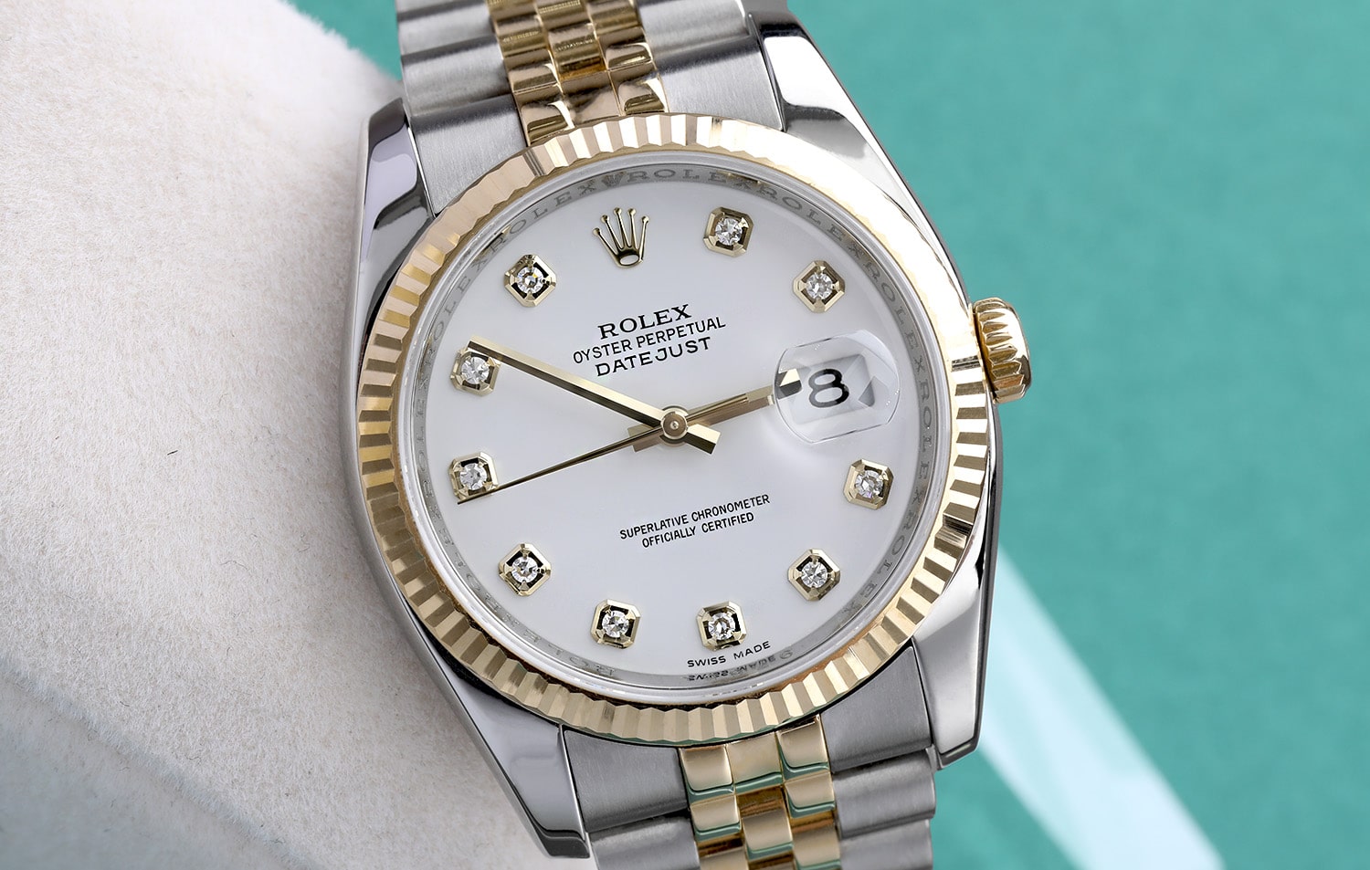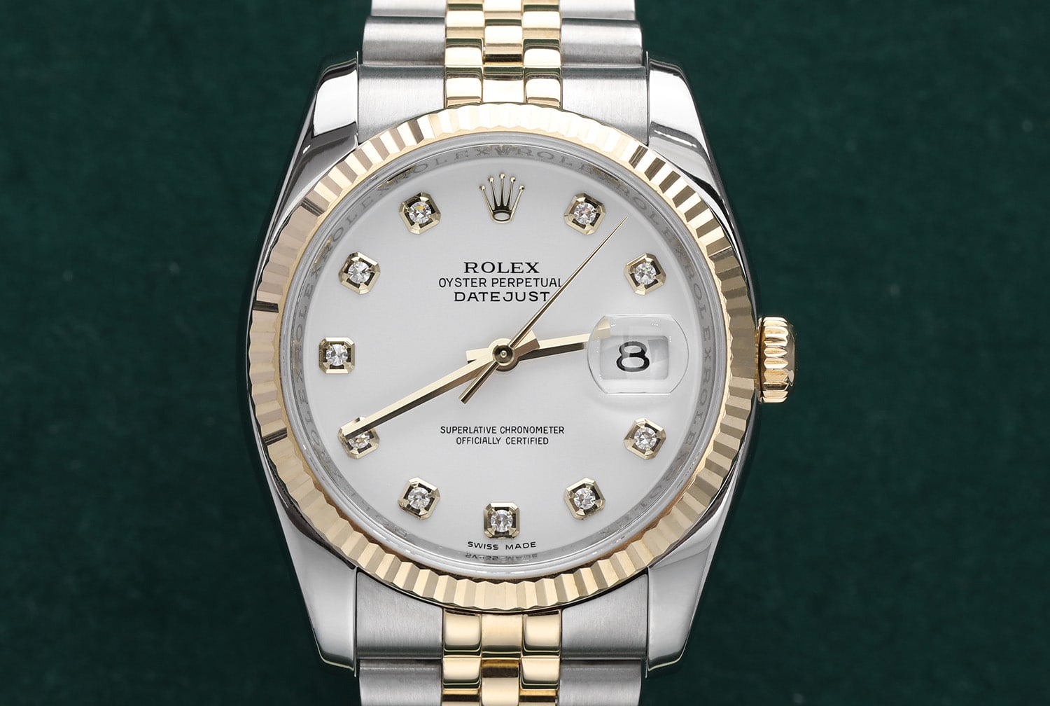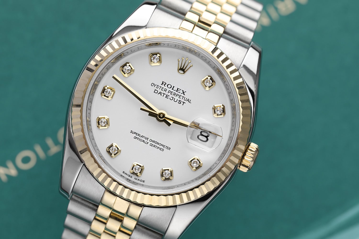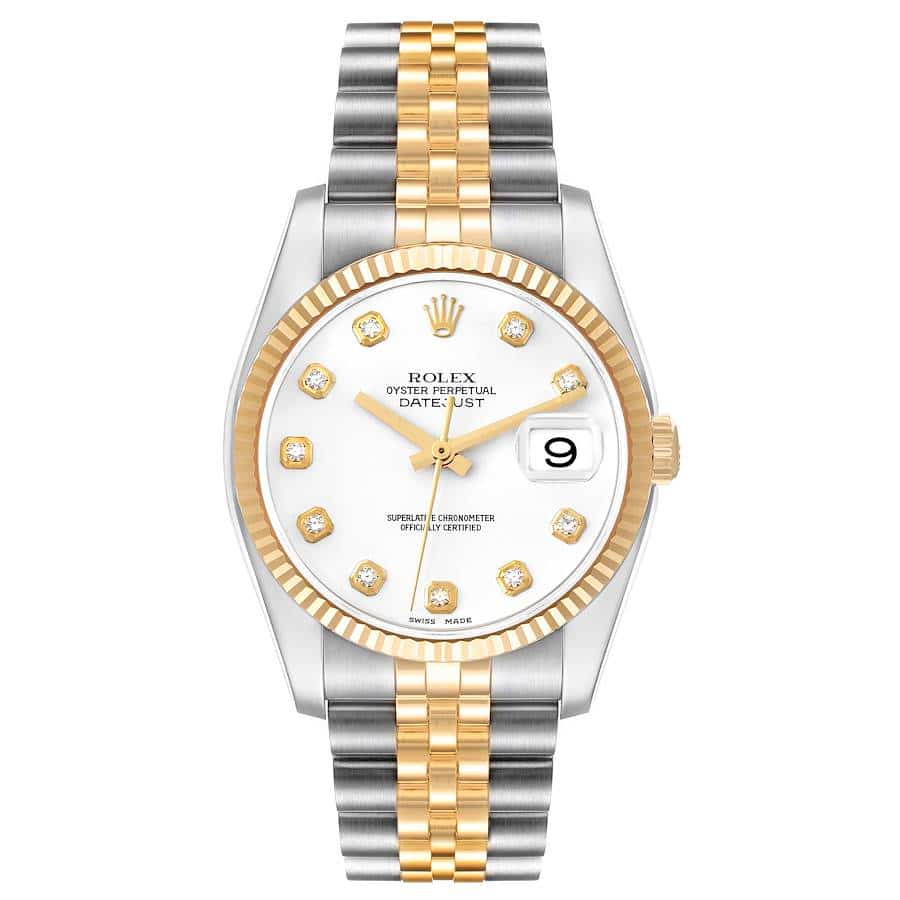 Rolex Datejust 36mm Jubilee 116233-0154 Stainless Steel & Yellow Gold Watch White Diamond Dial