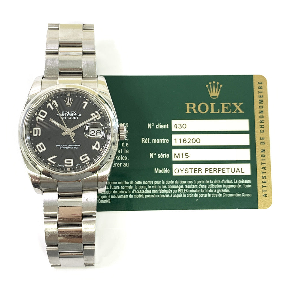 Rolex Datejust 36mm Oyster 116200 Stainless Steel Watch Black Arabic Dial 2009