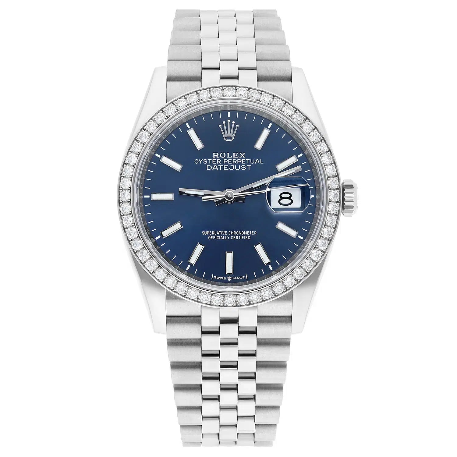 Rolex Datejust 36mm Steel Jubilee Blue Index Dial Diamond Bezel 126284RBR