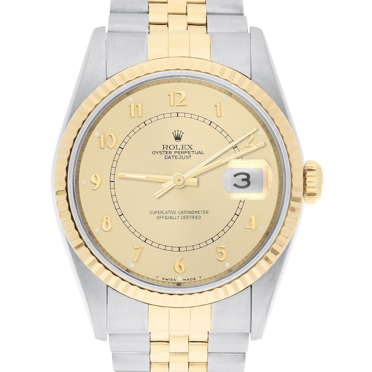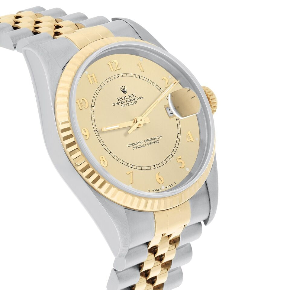 Rolex Datejust 36mm Two Tone Champagne Arabic Dial Jubilee 16233 Circa 2002 B/P