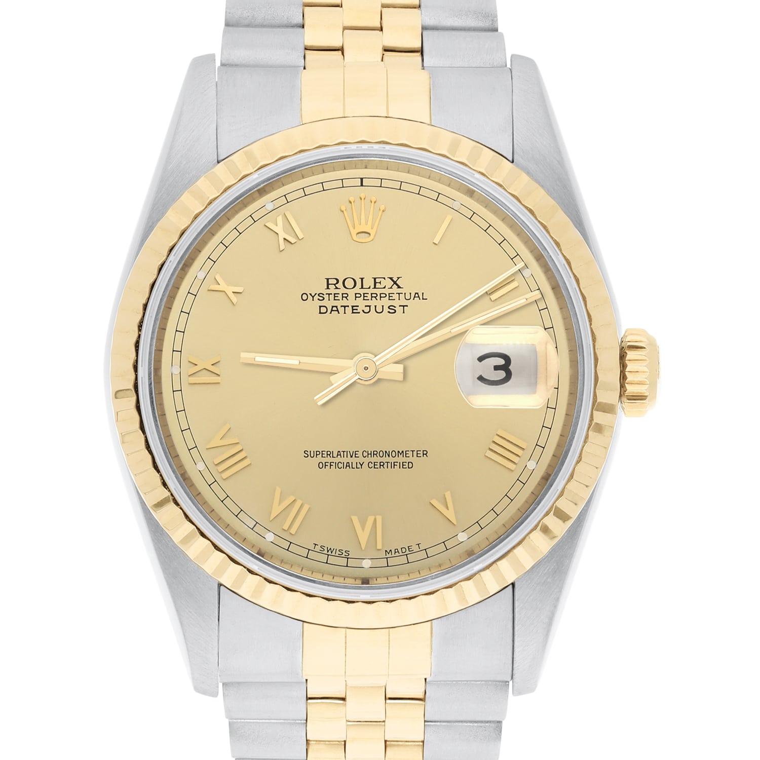 Rolex Datejust 36mm Two Tone Champagne Roman Dial Jubilee 16233 Circa - 1995