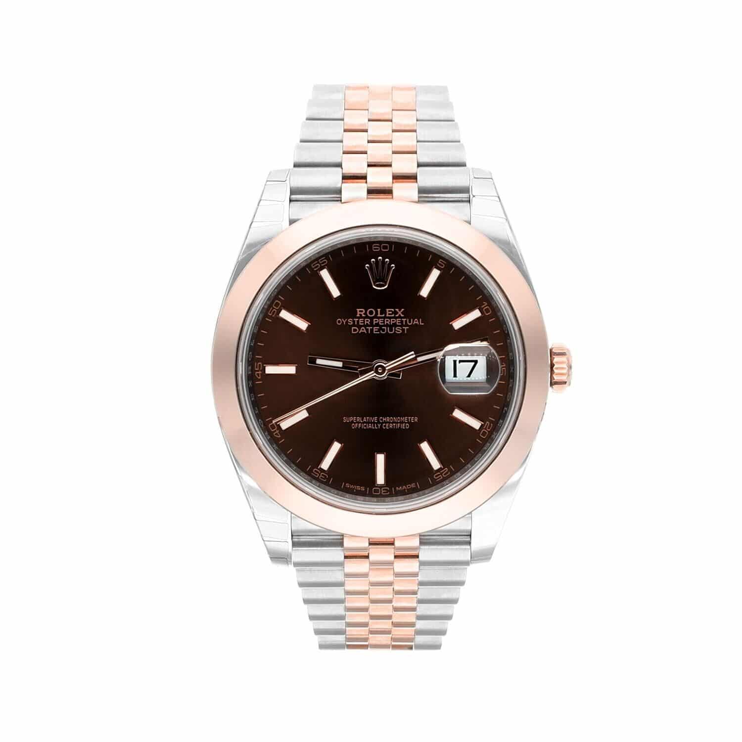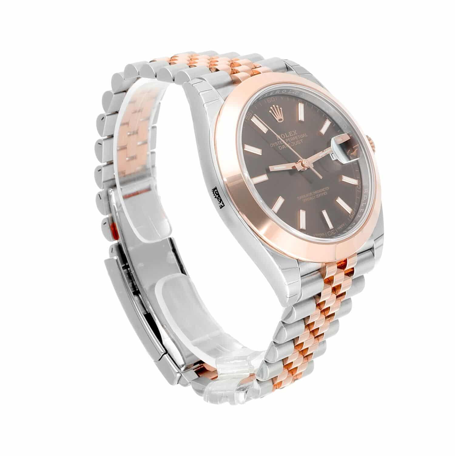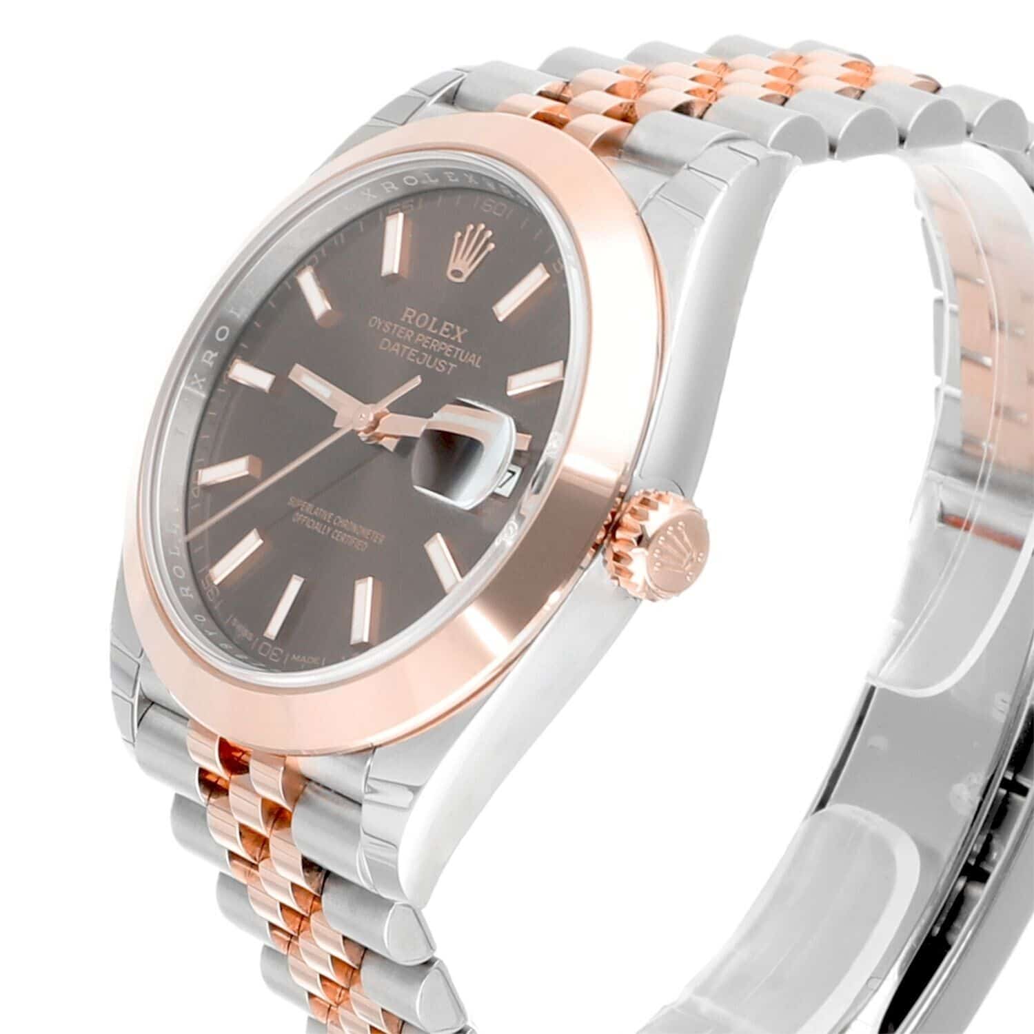 Rolex Datejust 41mm Stainless Steel/Rose Gold Jubilee Mens Watch 126301 Complete, with Factory Stickers. New Old Stock. Has never been worn. Comes complete and is covered by our 2 year in house warranty. Stainless steel case with a stainless steel Rolex jubilee bracelet with 18kt everose gold center links. Fixed 18kt everose gold bezel. Chocolate dial with rose gold-tone hands and index hour markers.
